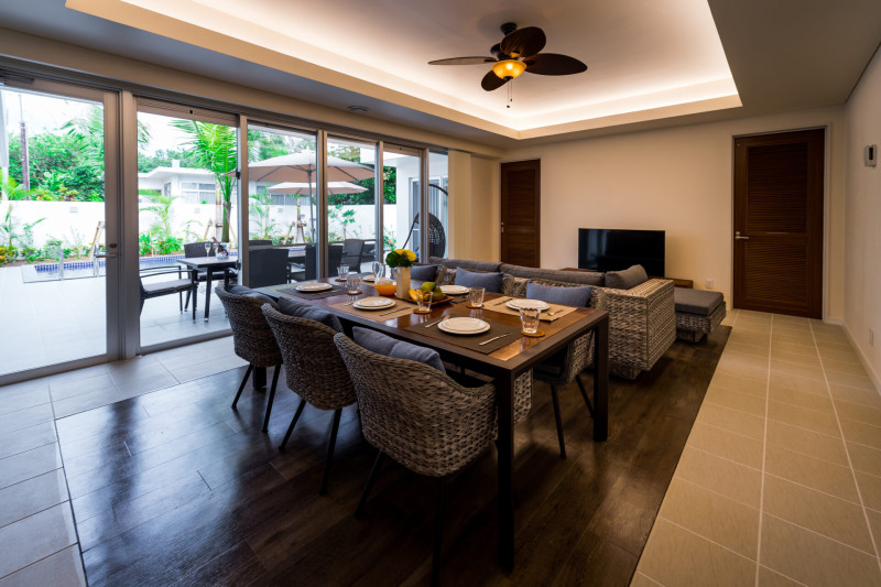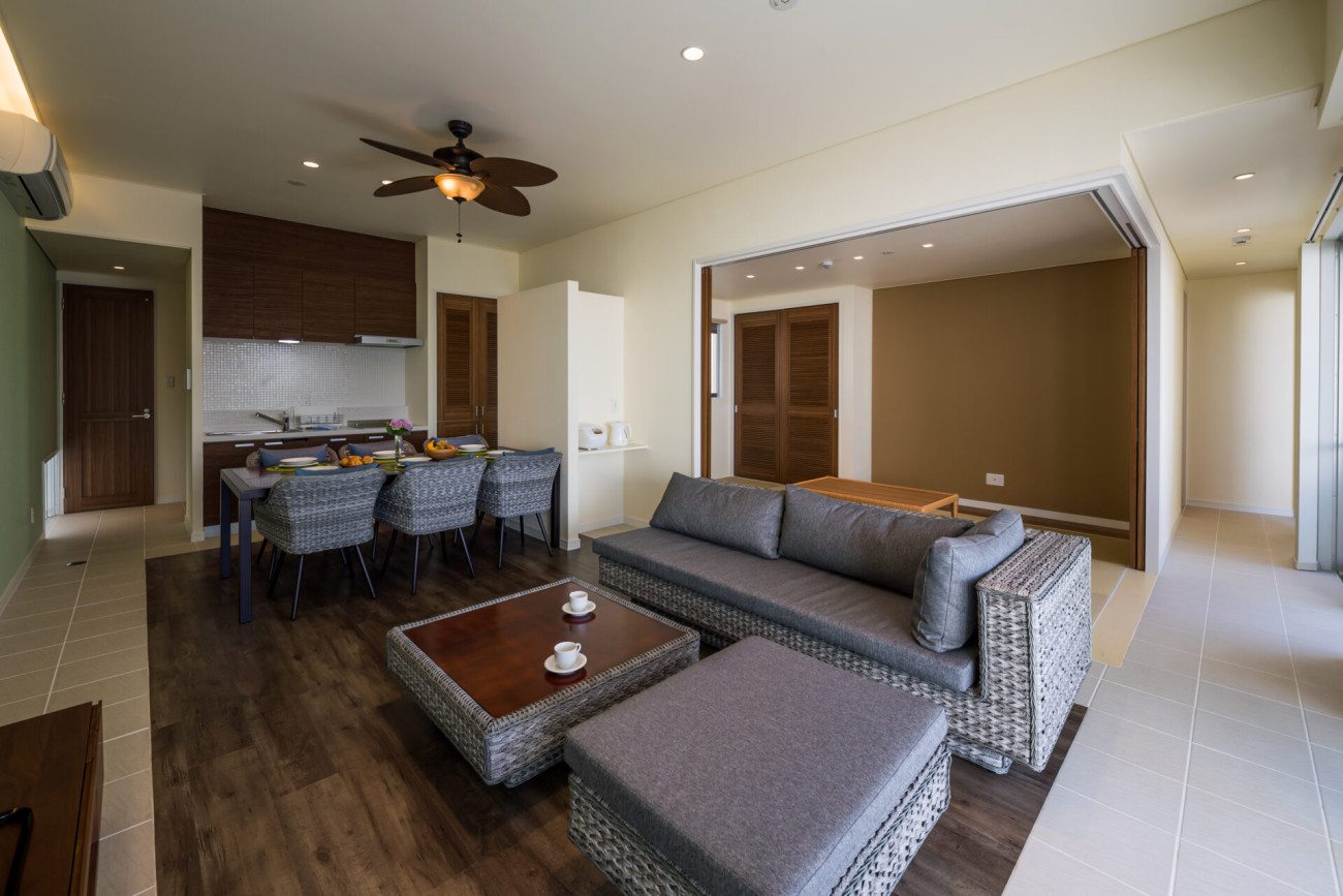 当ヴィラは全15棟の1棟貸しスタイルで、キッチンやリビング、和室を備えた広々とした空間が魅力。