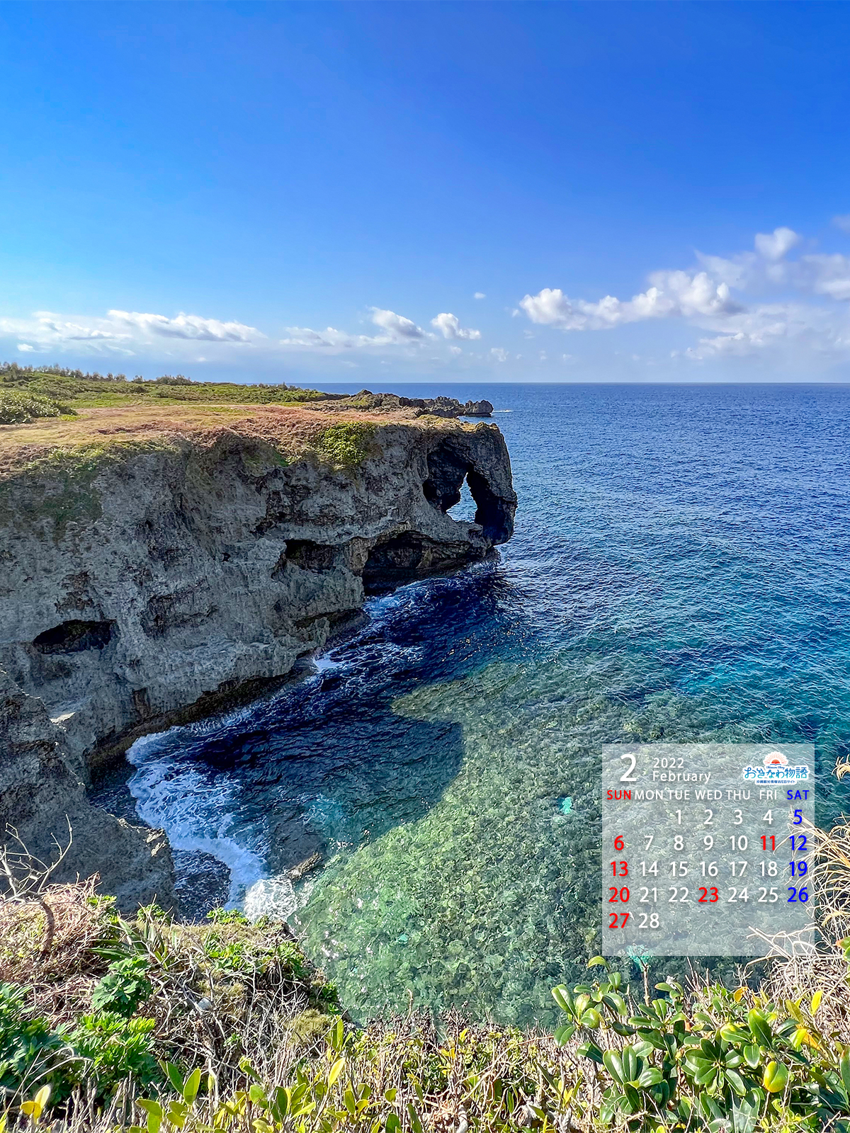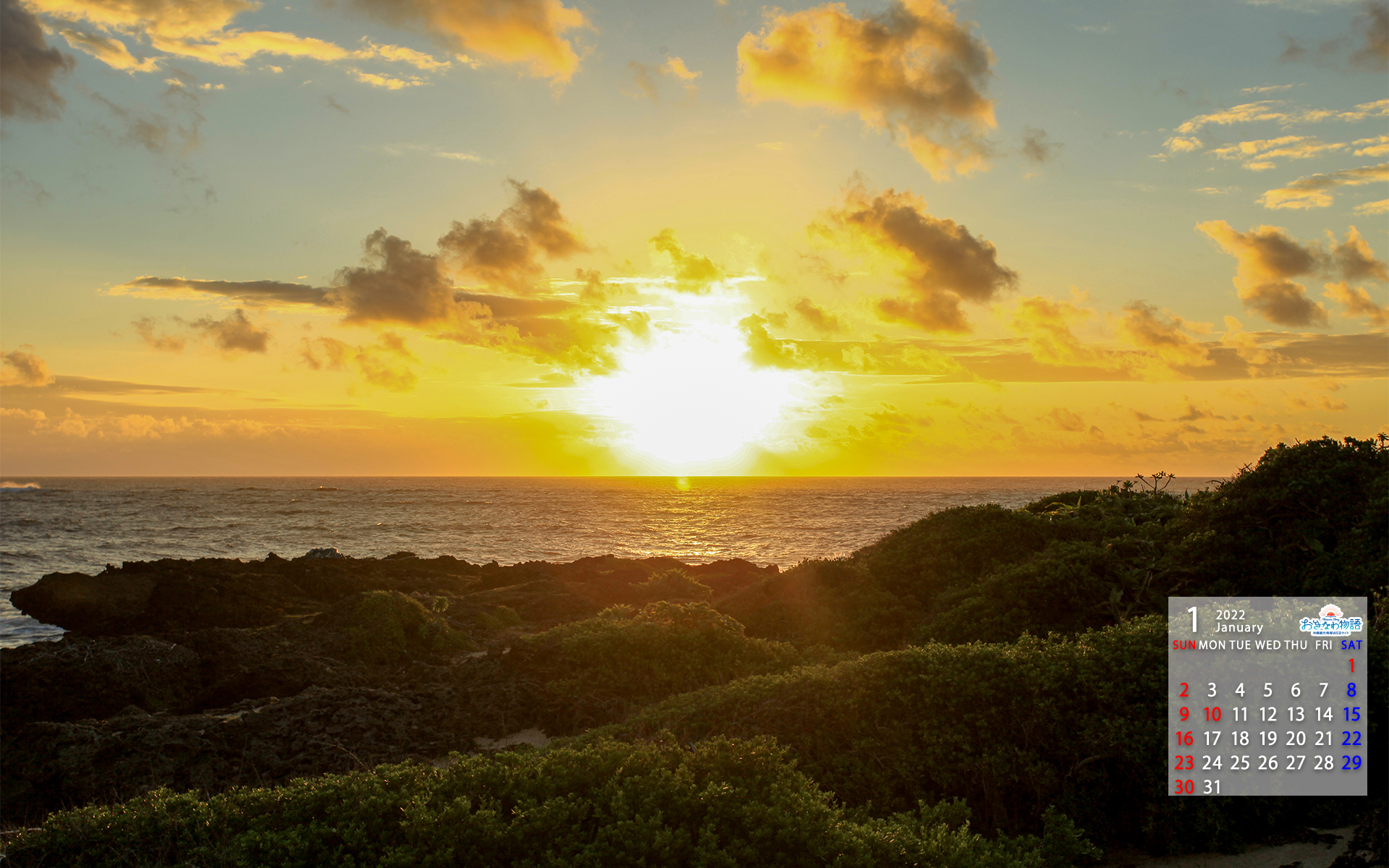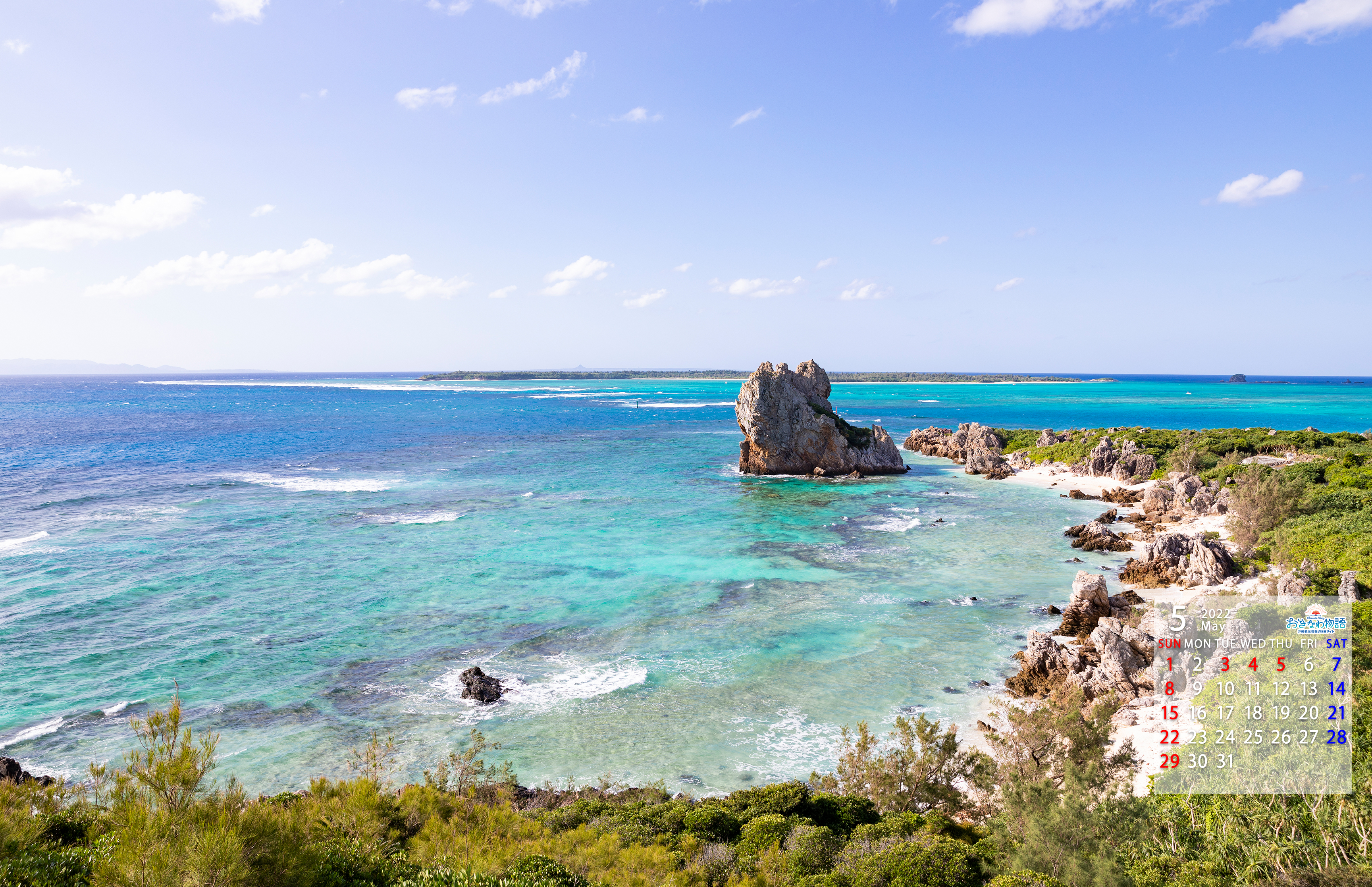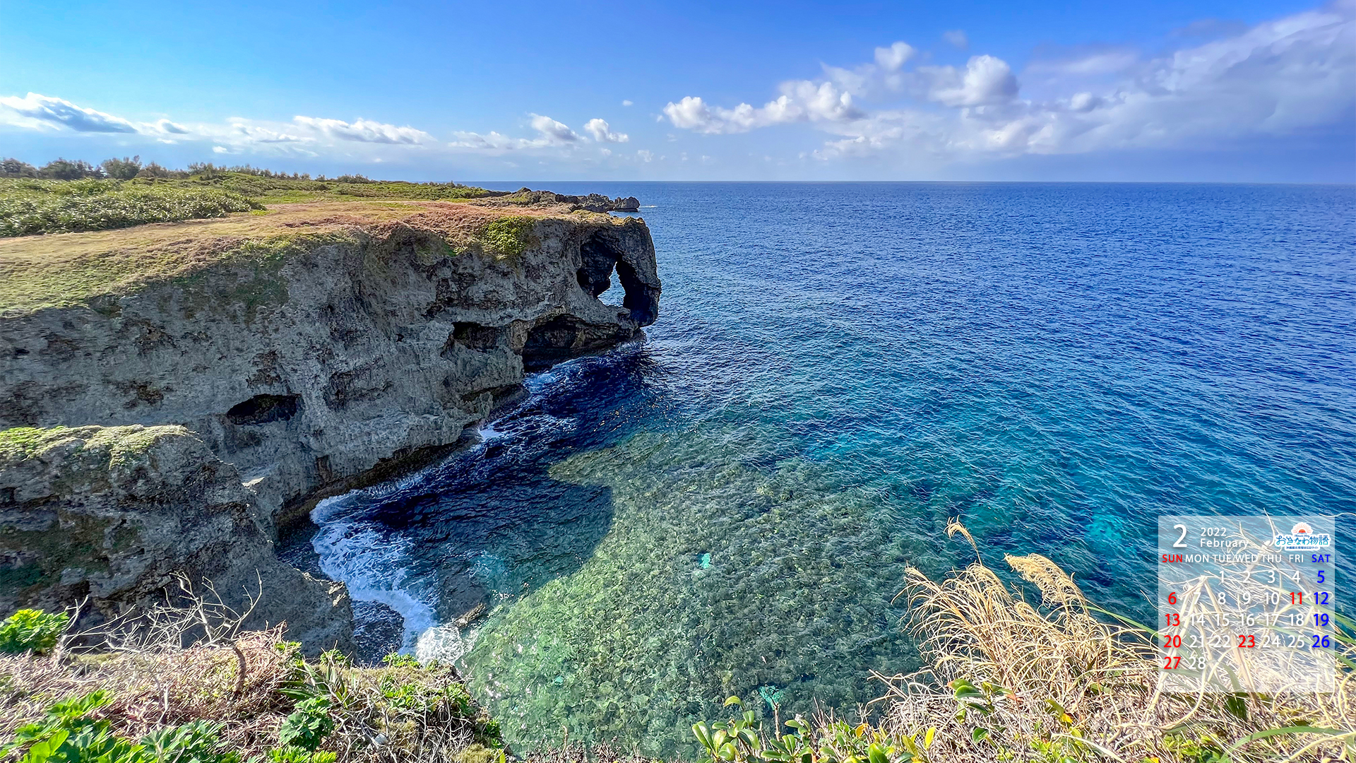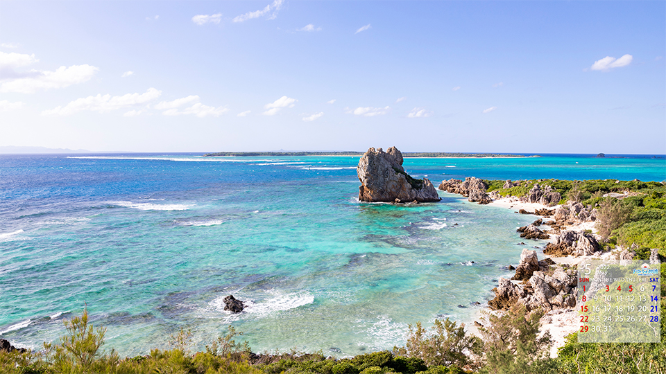 沖縄の風景にカレンダーをプラスしたデスクトップ壁紙を配布しています。