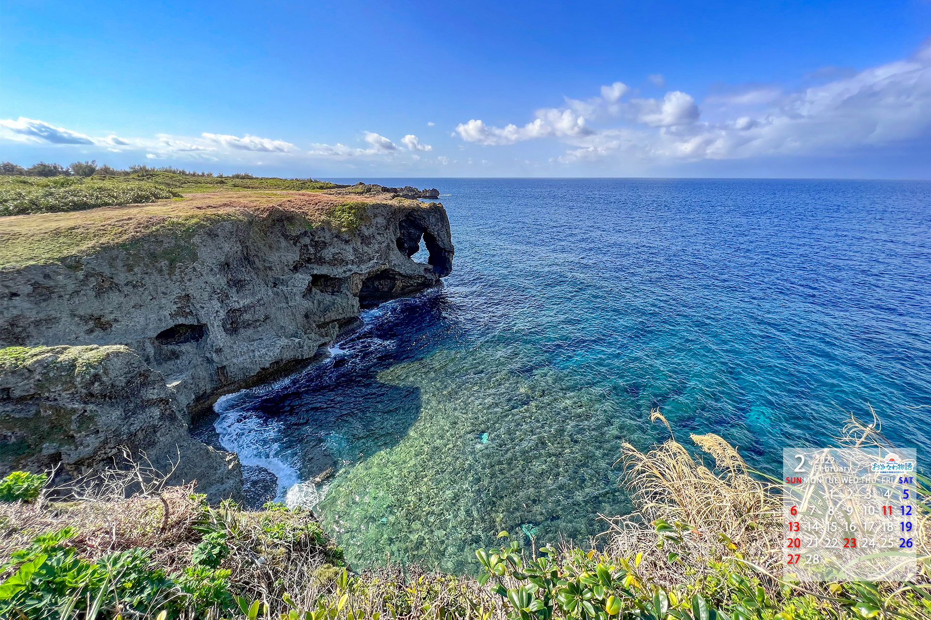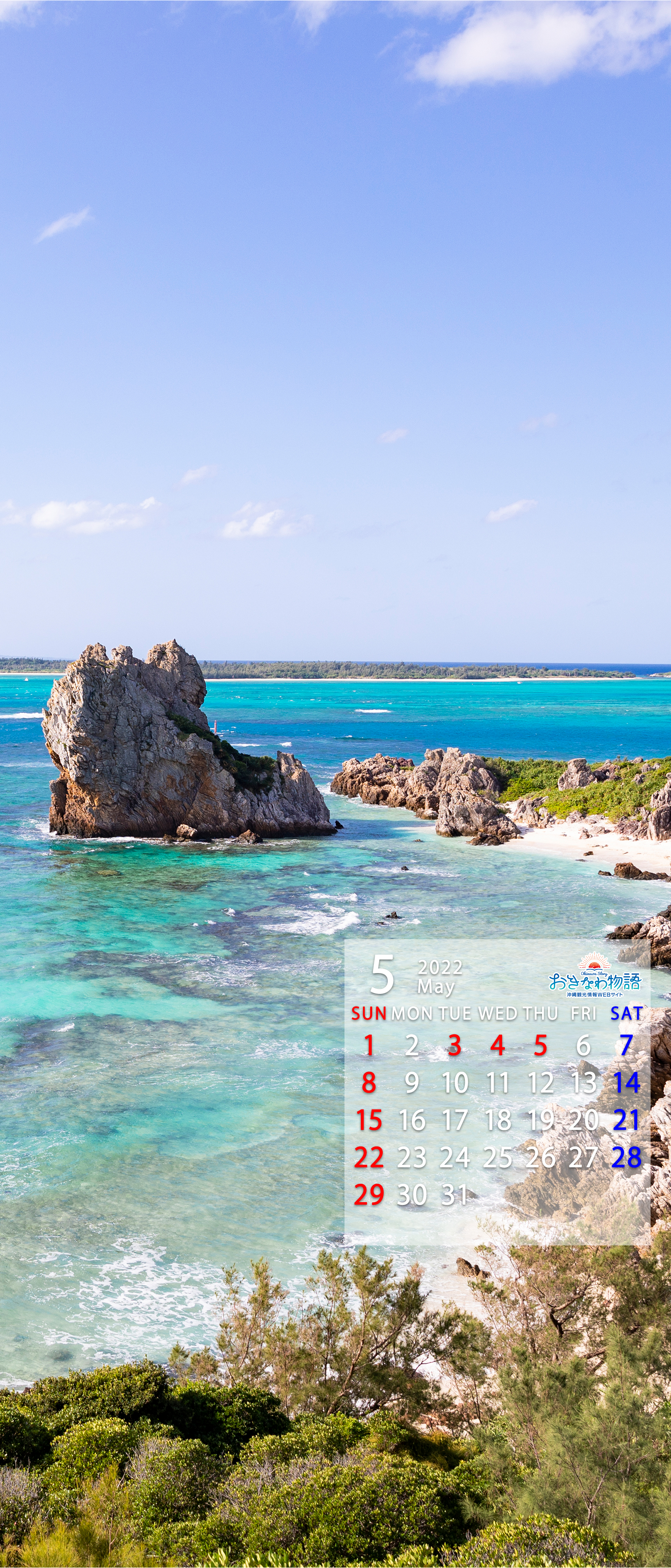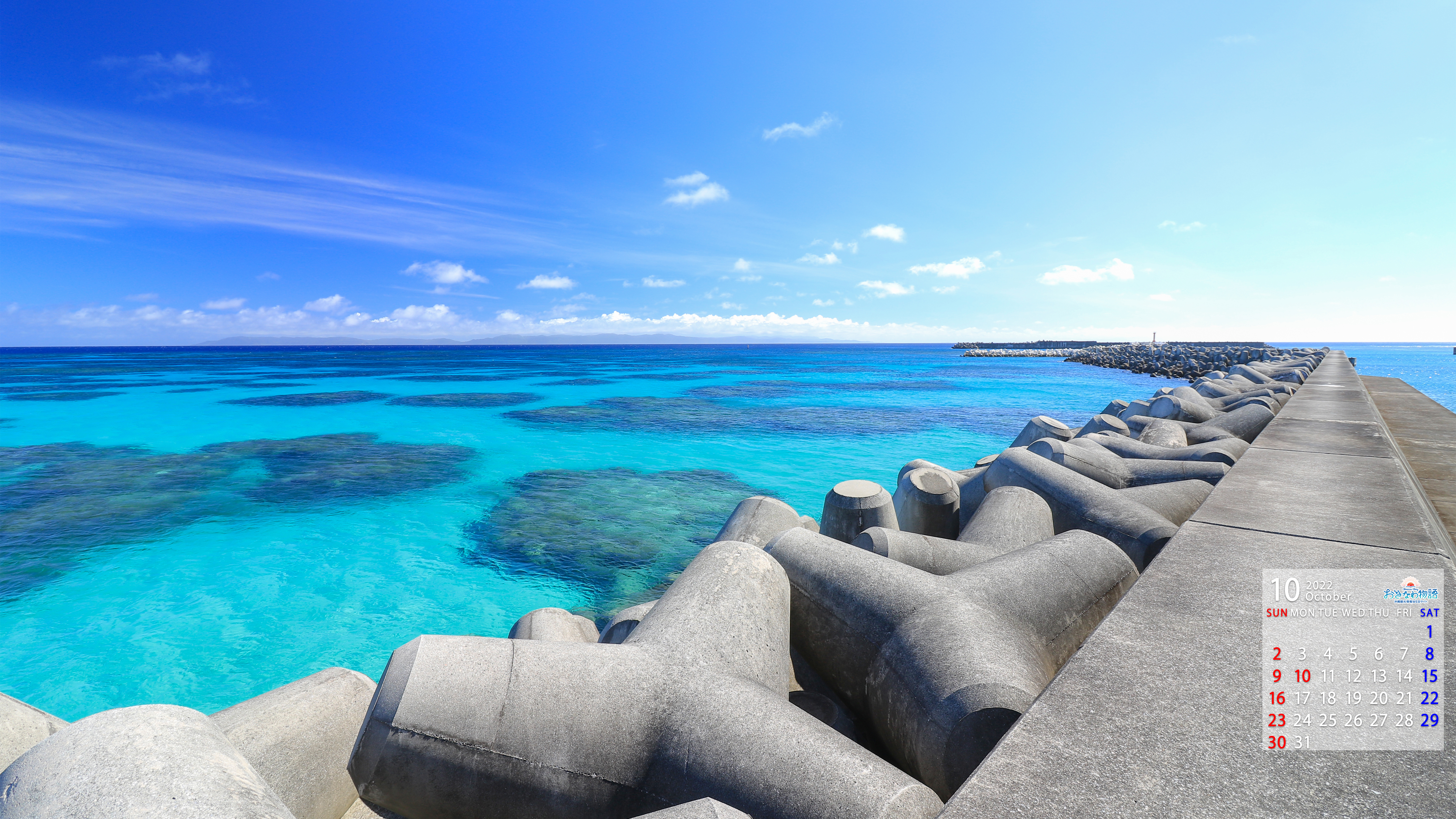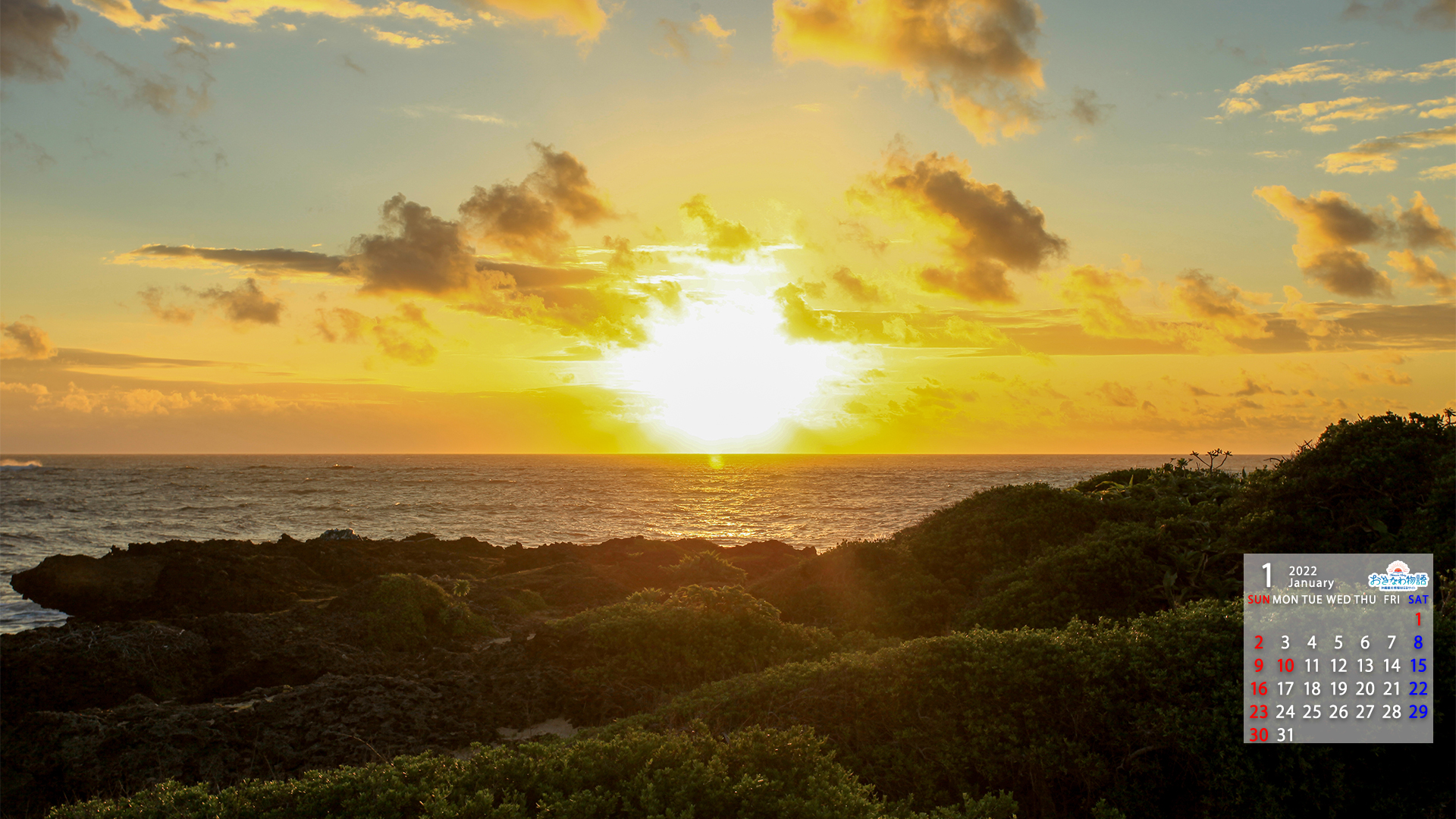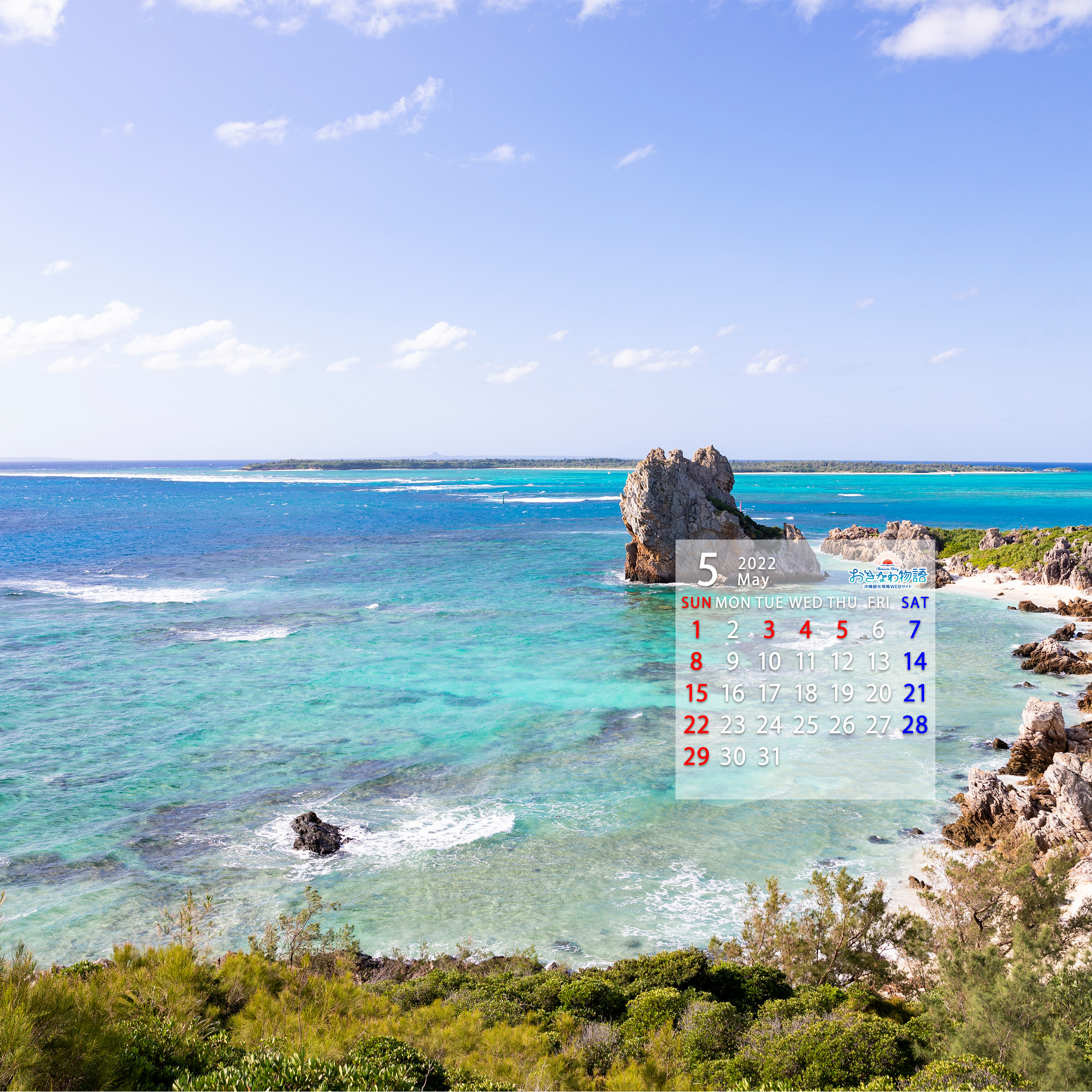 沖縄の風景にカレンダーをプラスしたデスクトップ壁紙を配布しています。