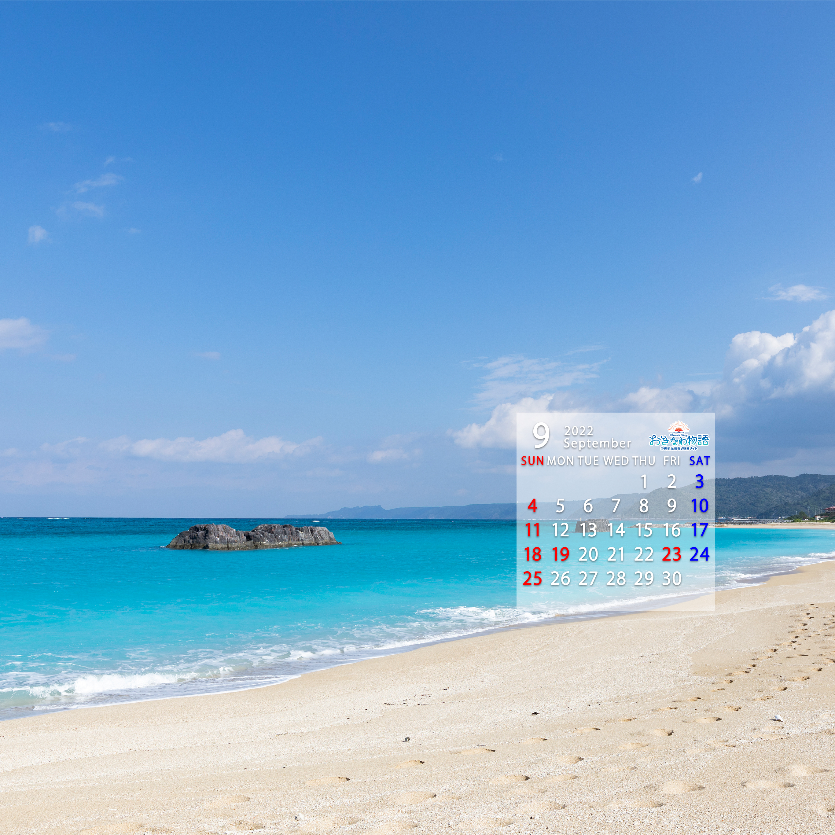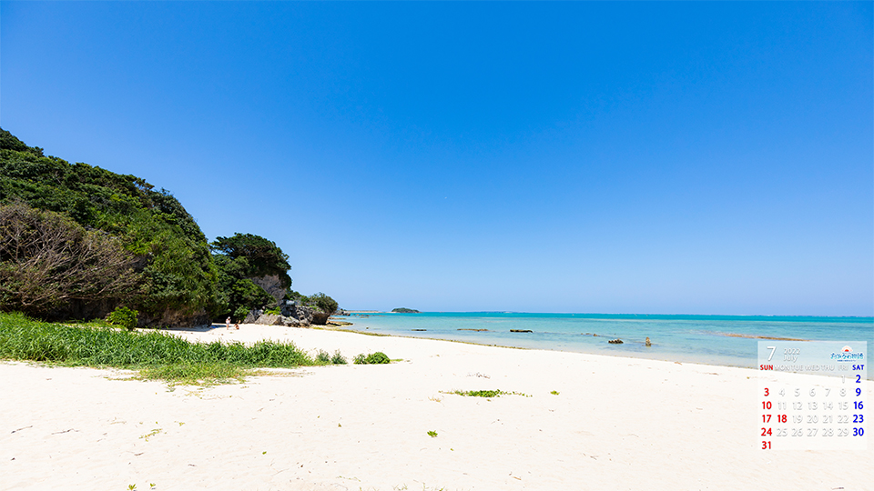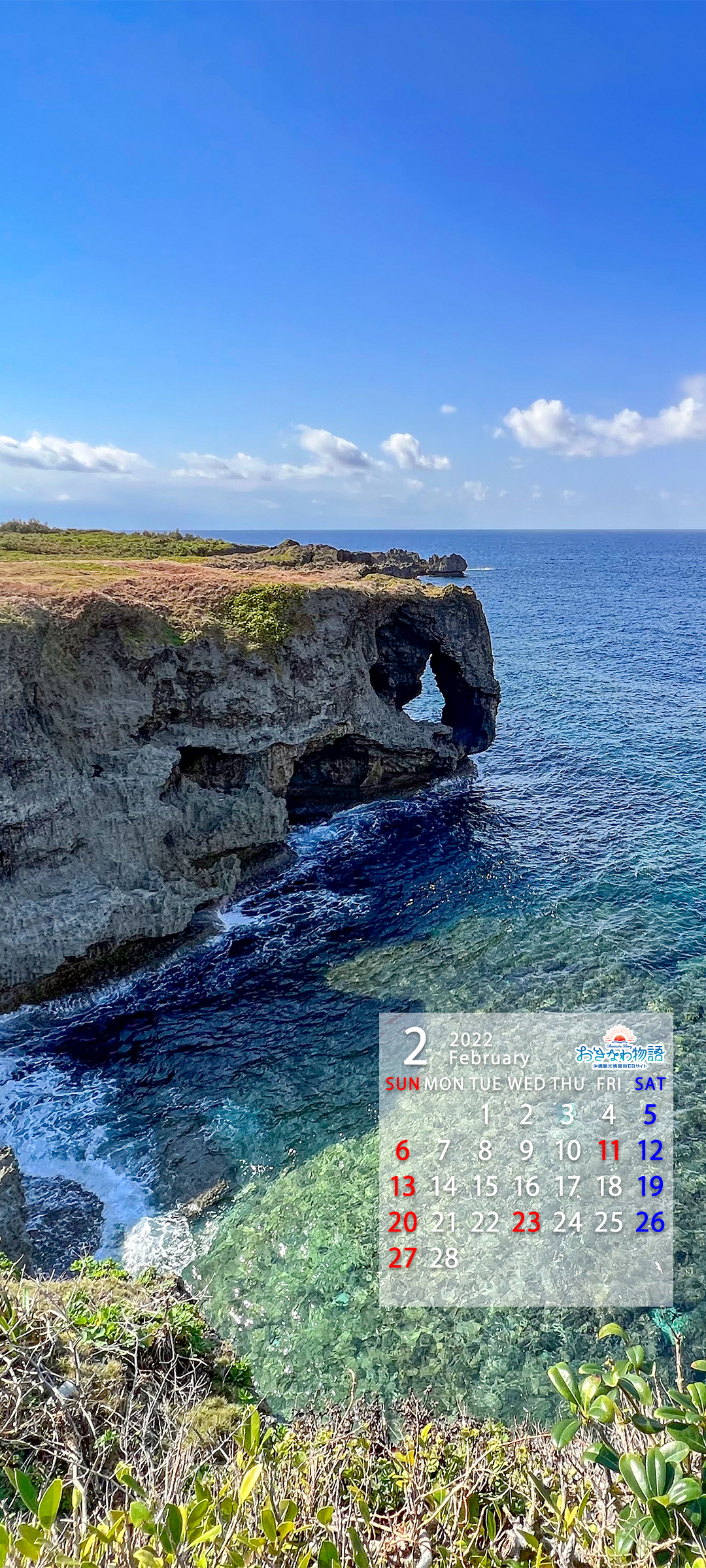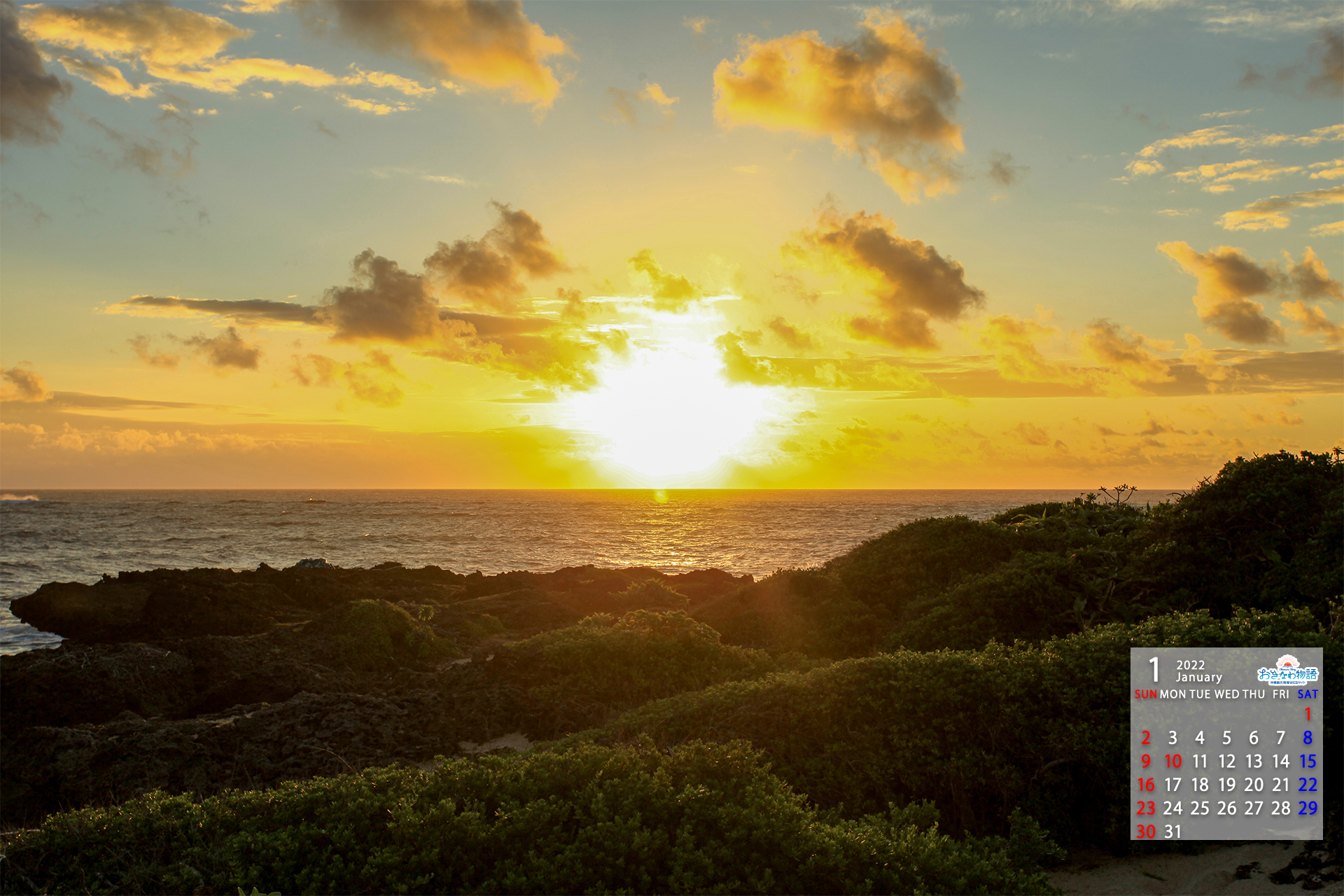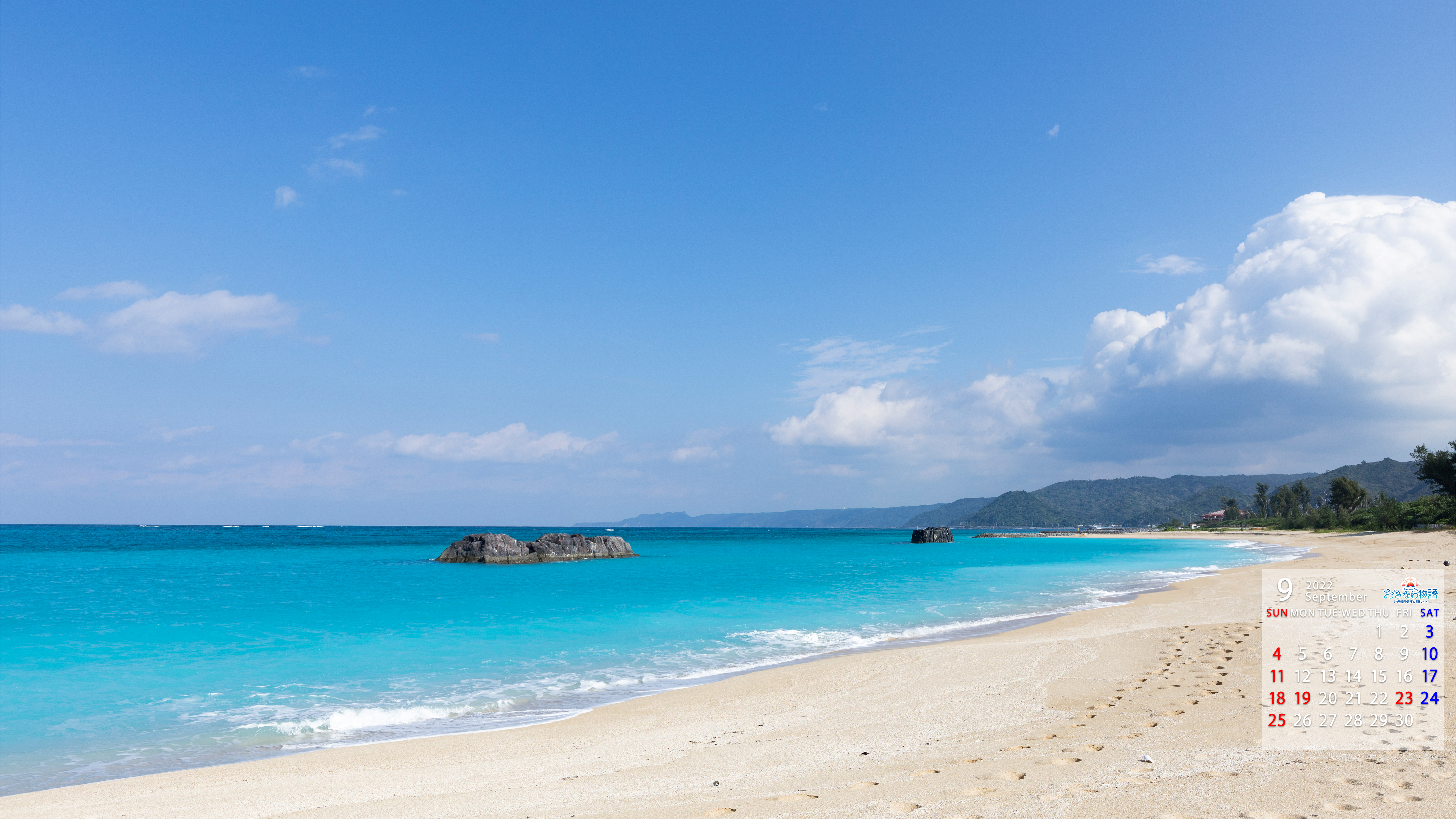 沖縄の風景にカレンダーをプラスしたデスクトップ壁紙を配布しています。
