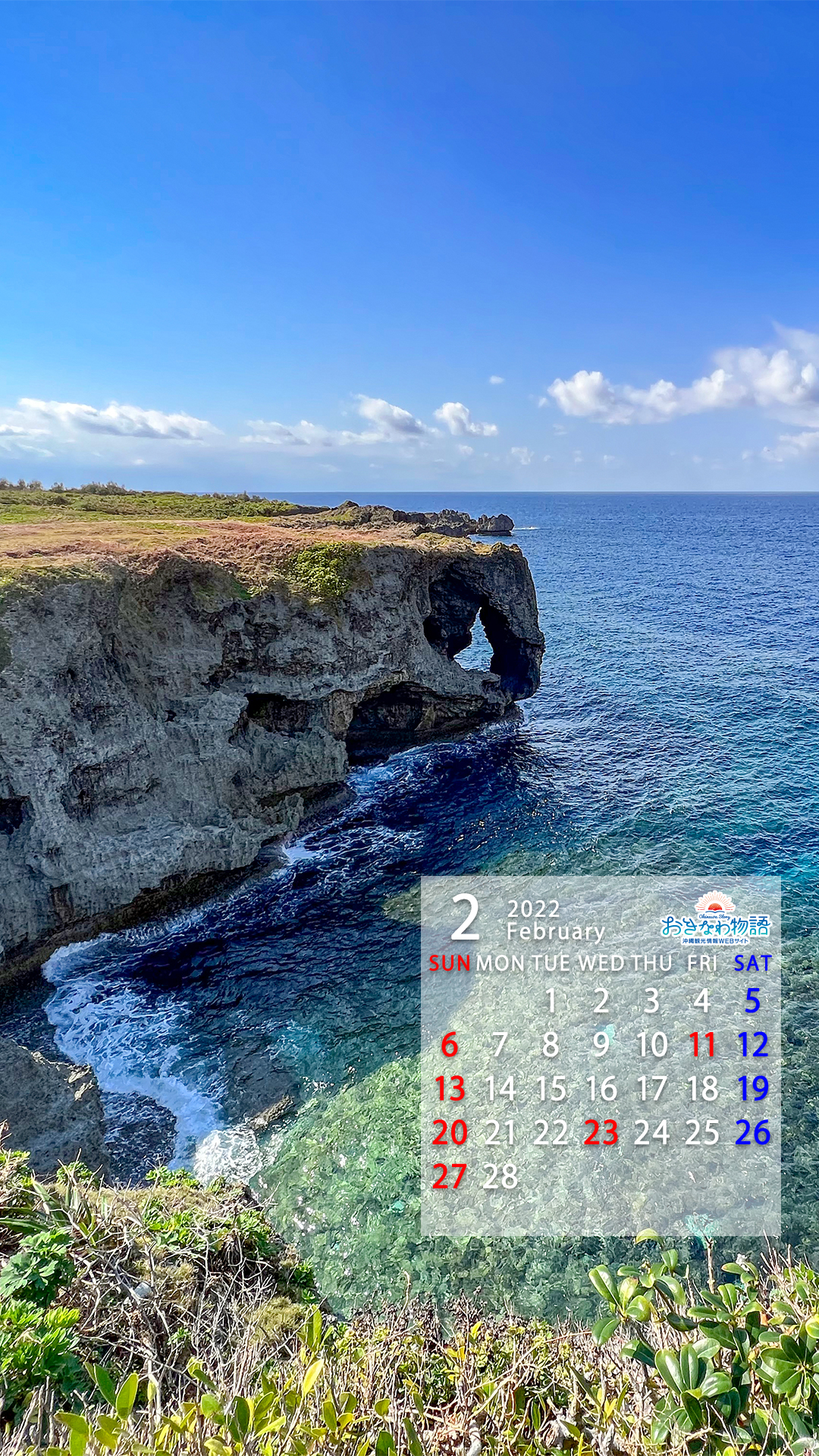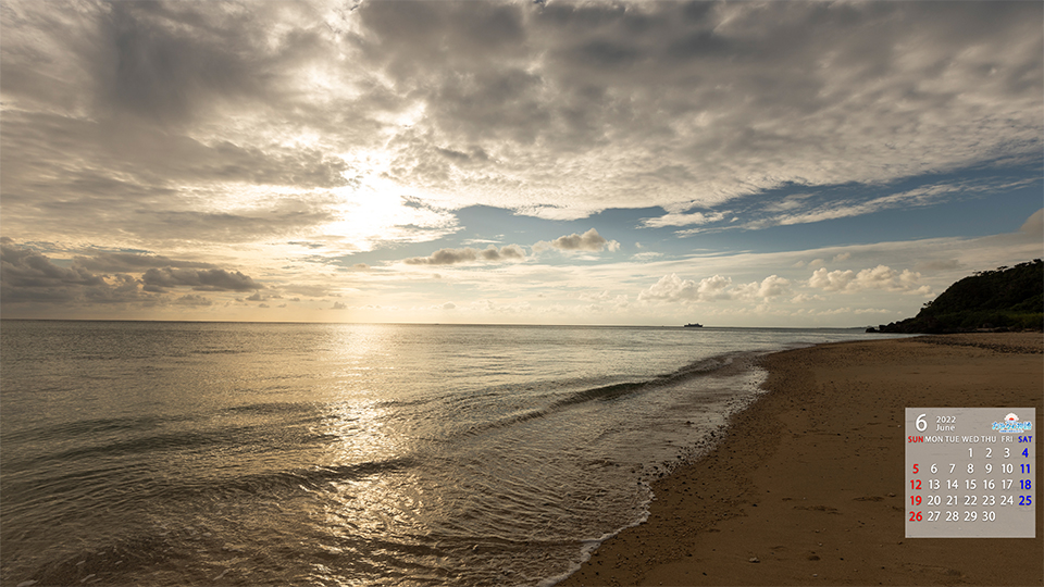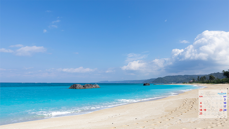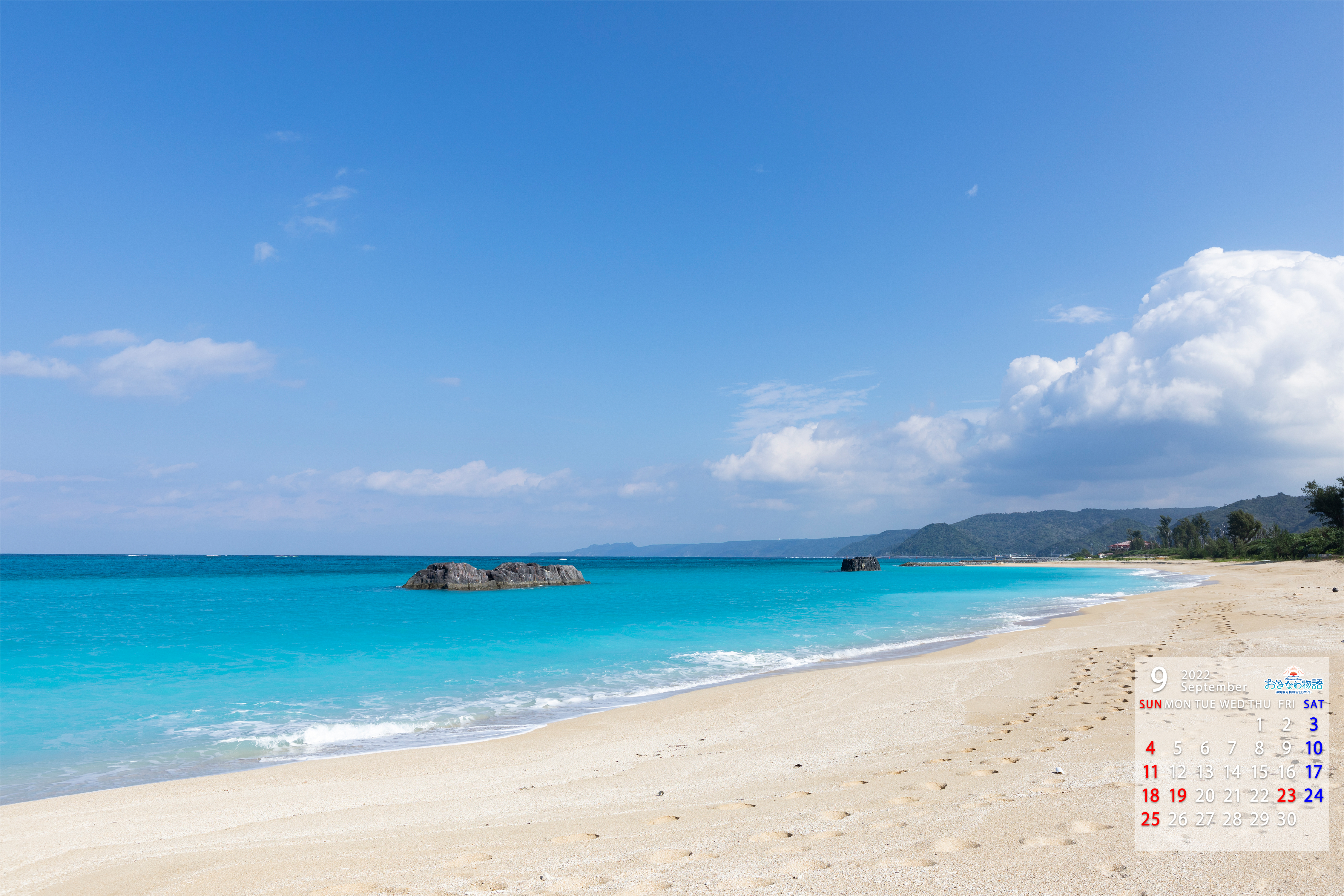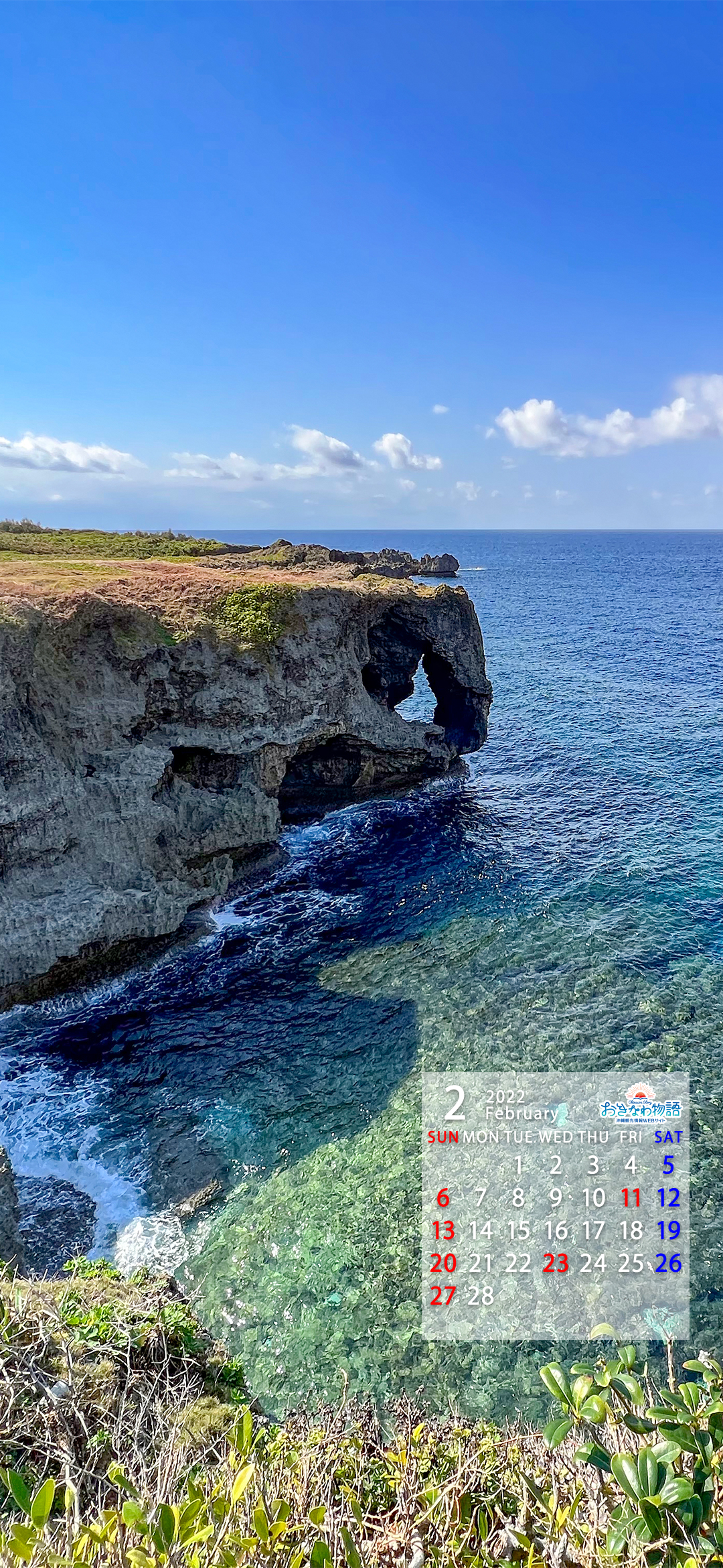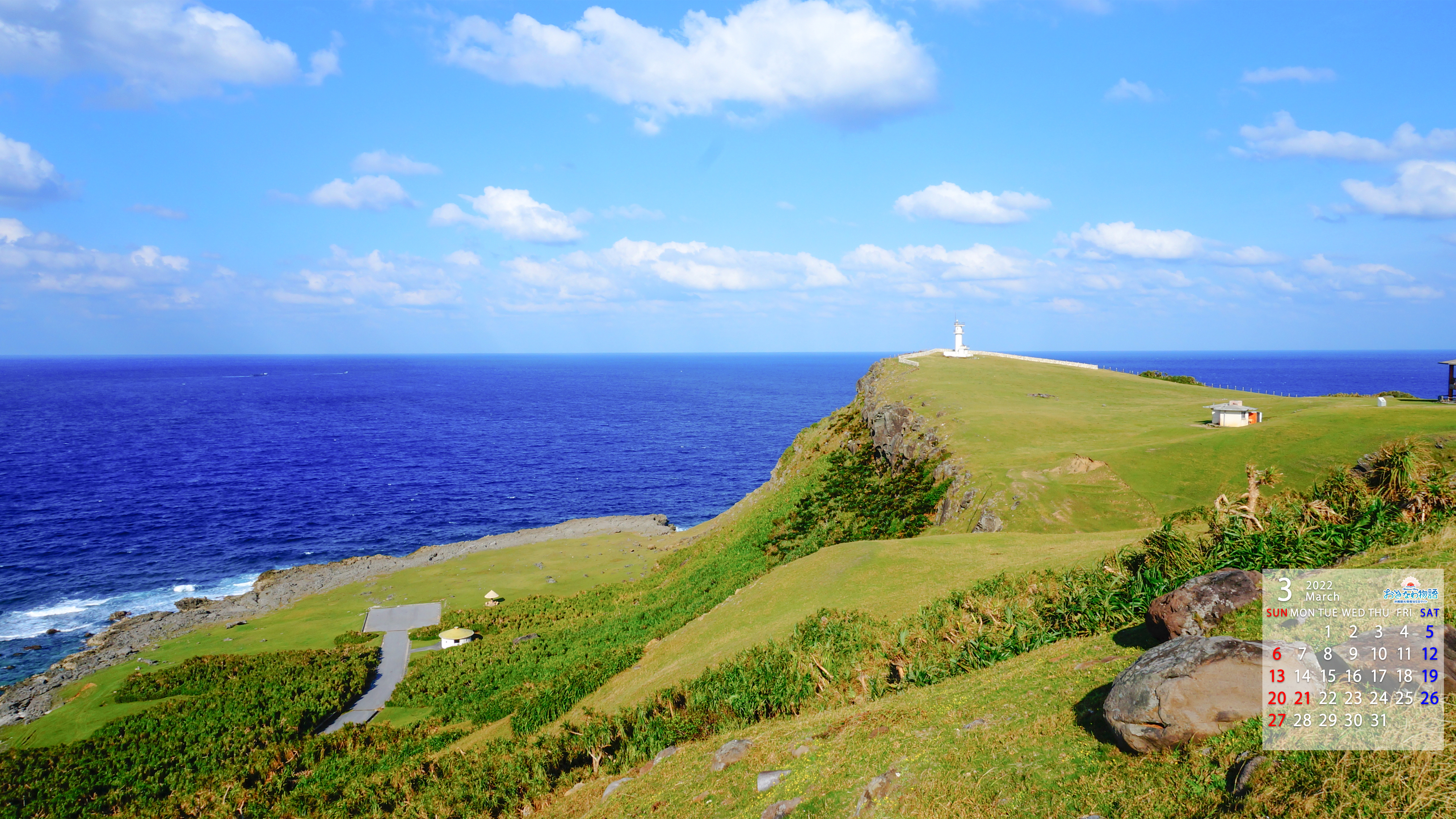 沖縄の風景にカレンダーをプラスしたデスクトップ壁紙を配布しています。