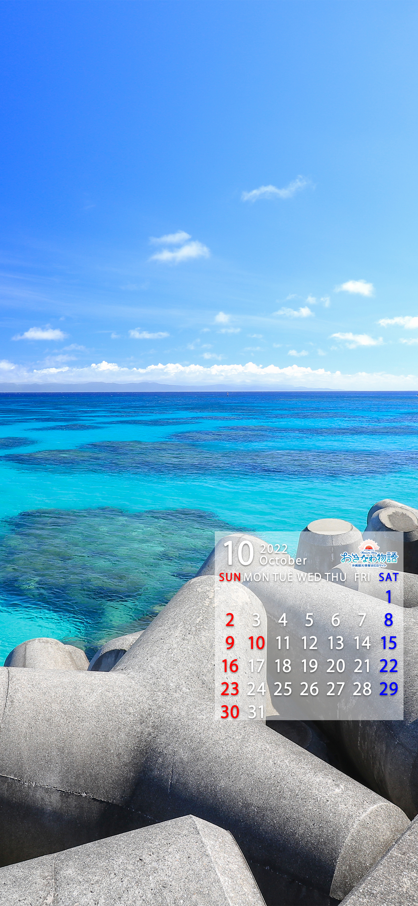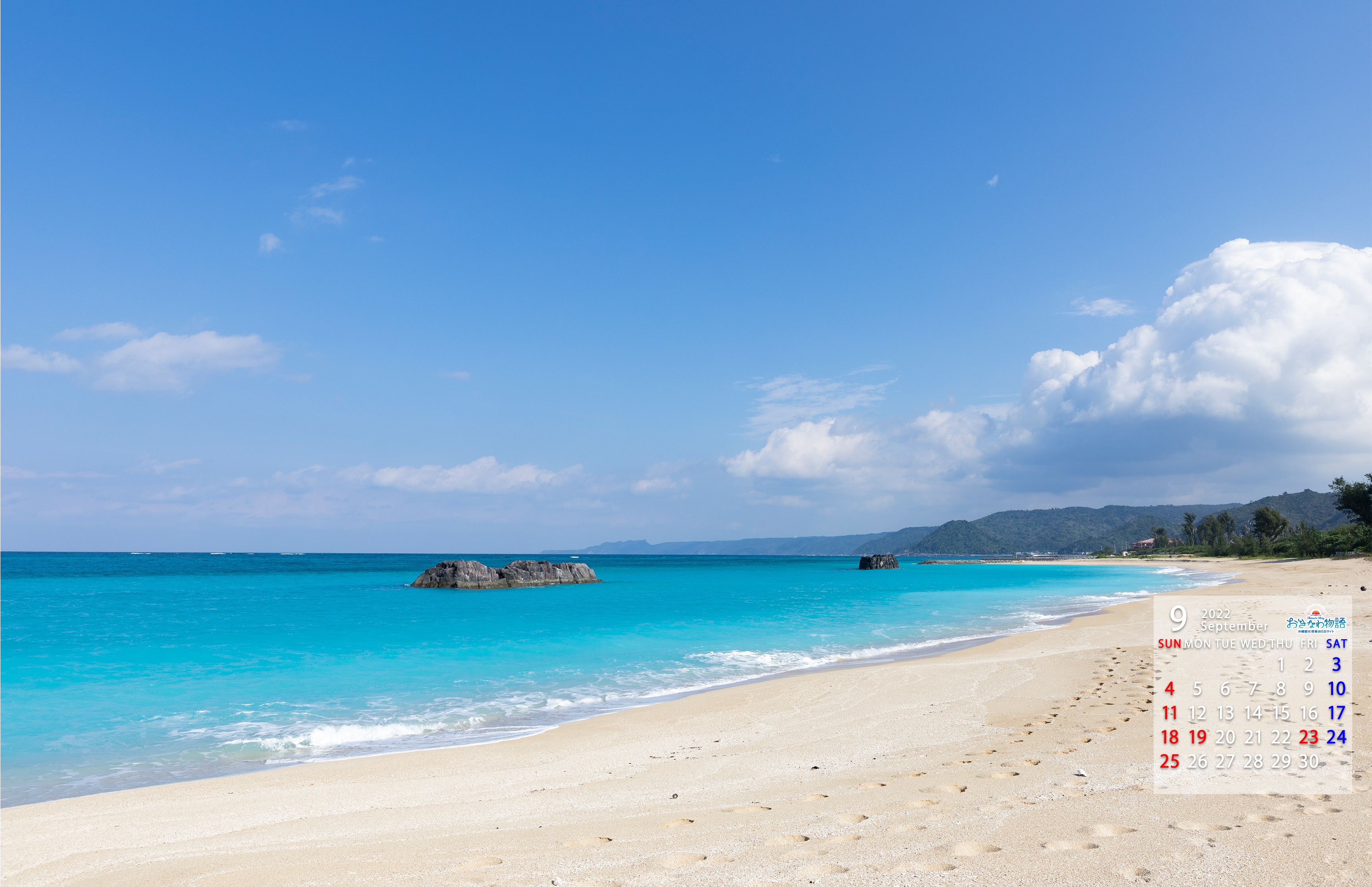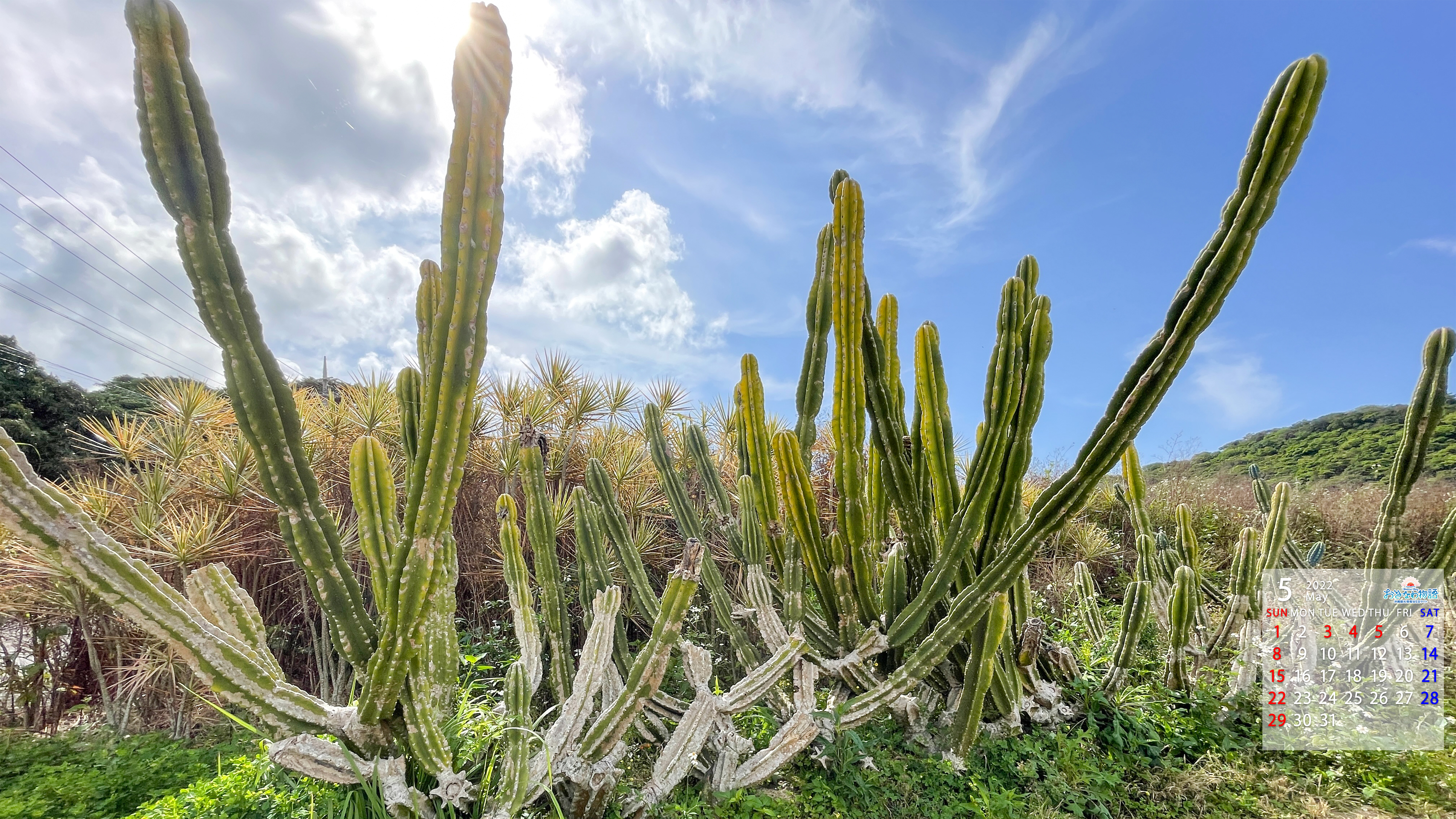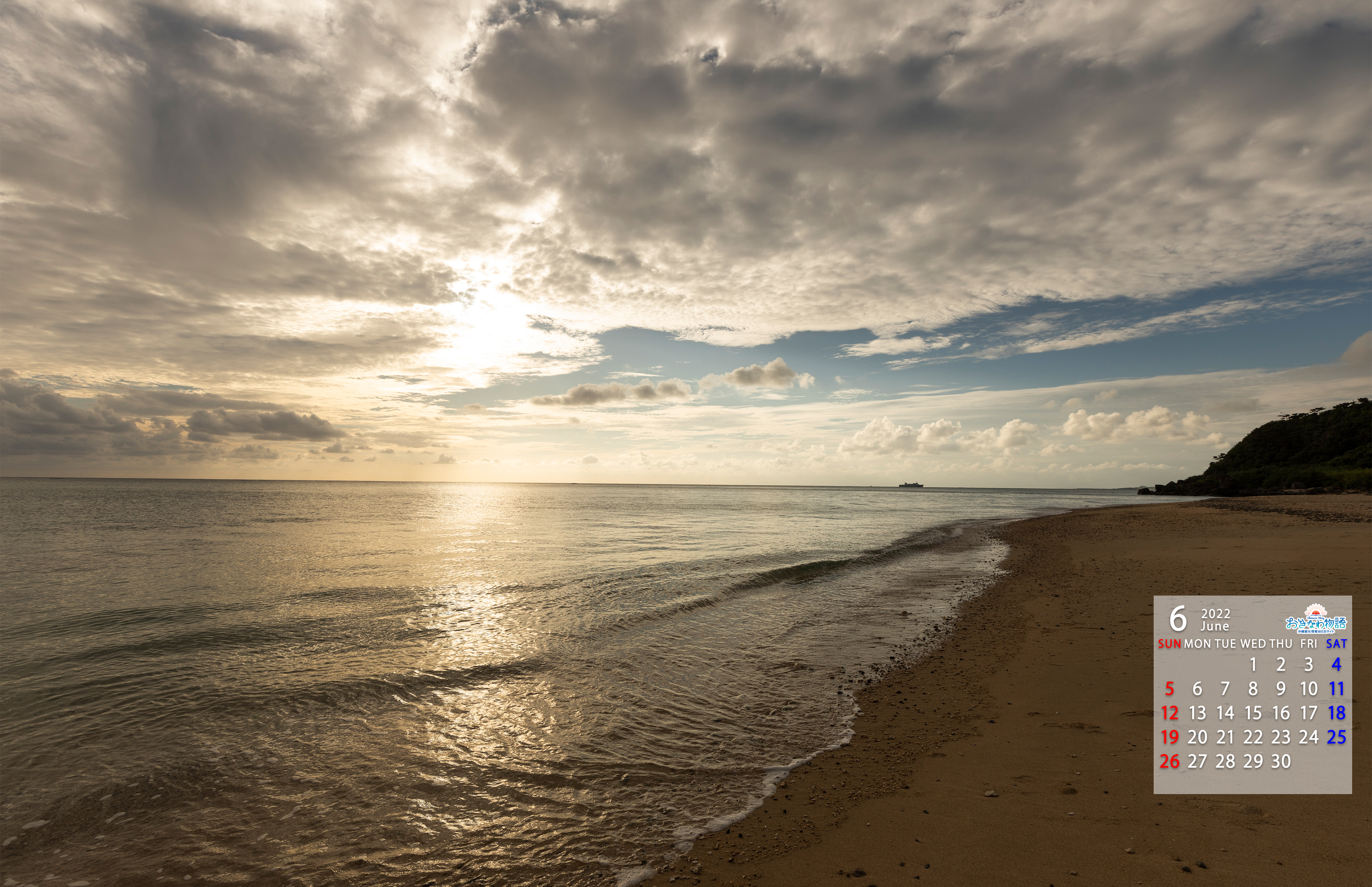 沖縄の風景にカレンダーをプラスしたデスクトップ壁紙を配布しています。