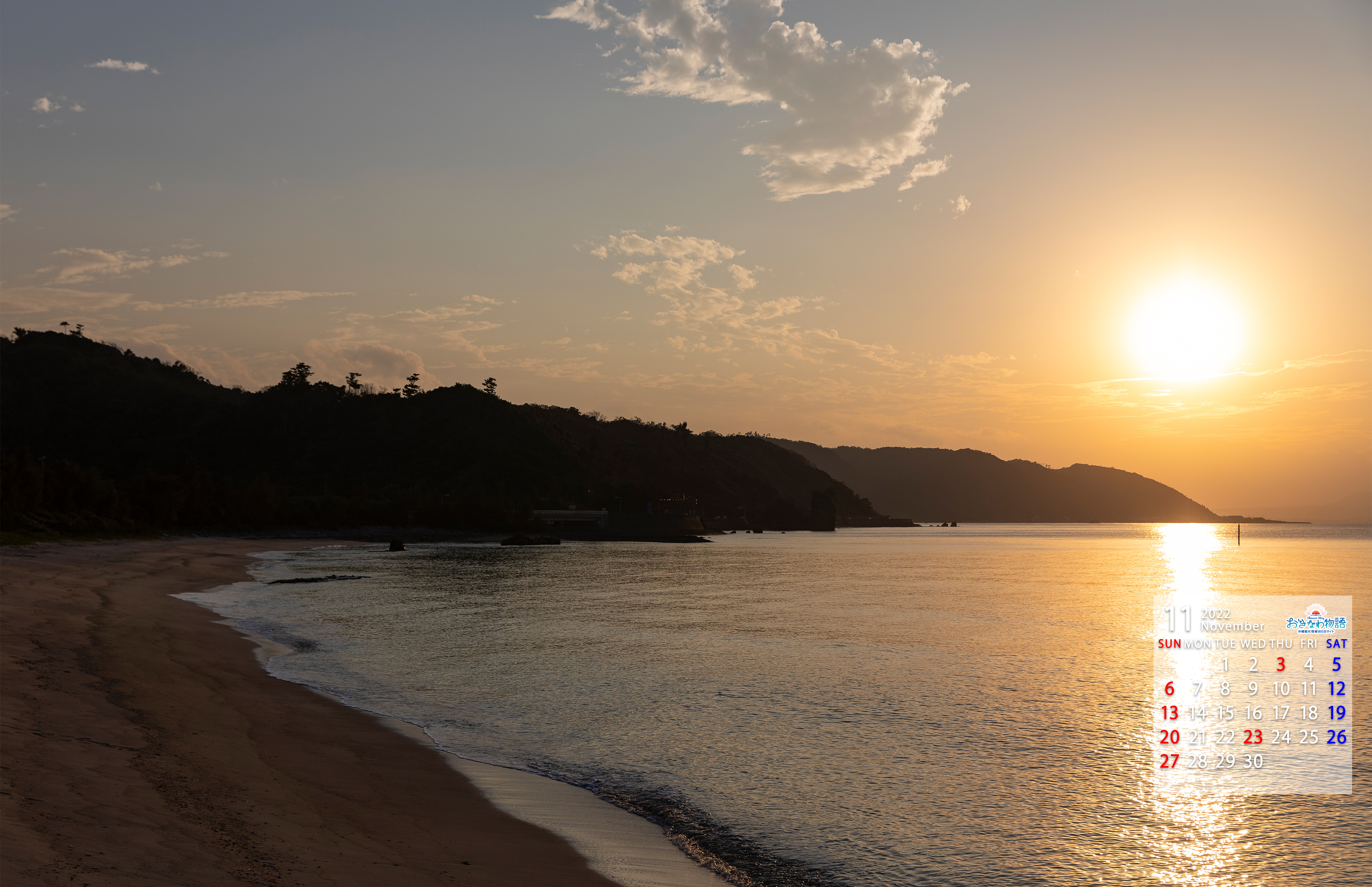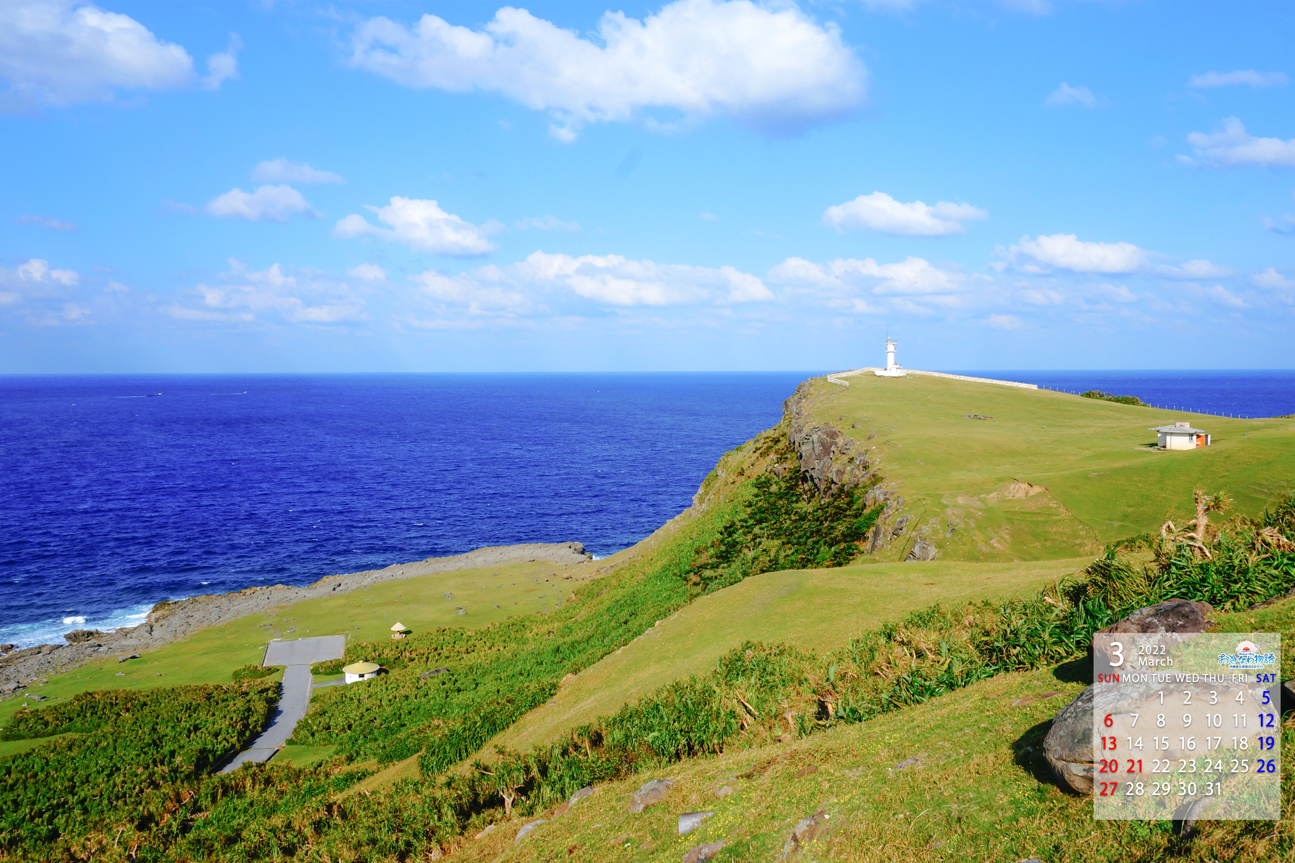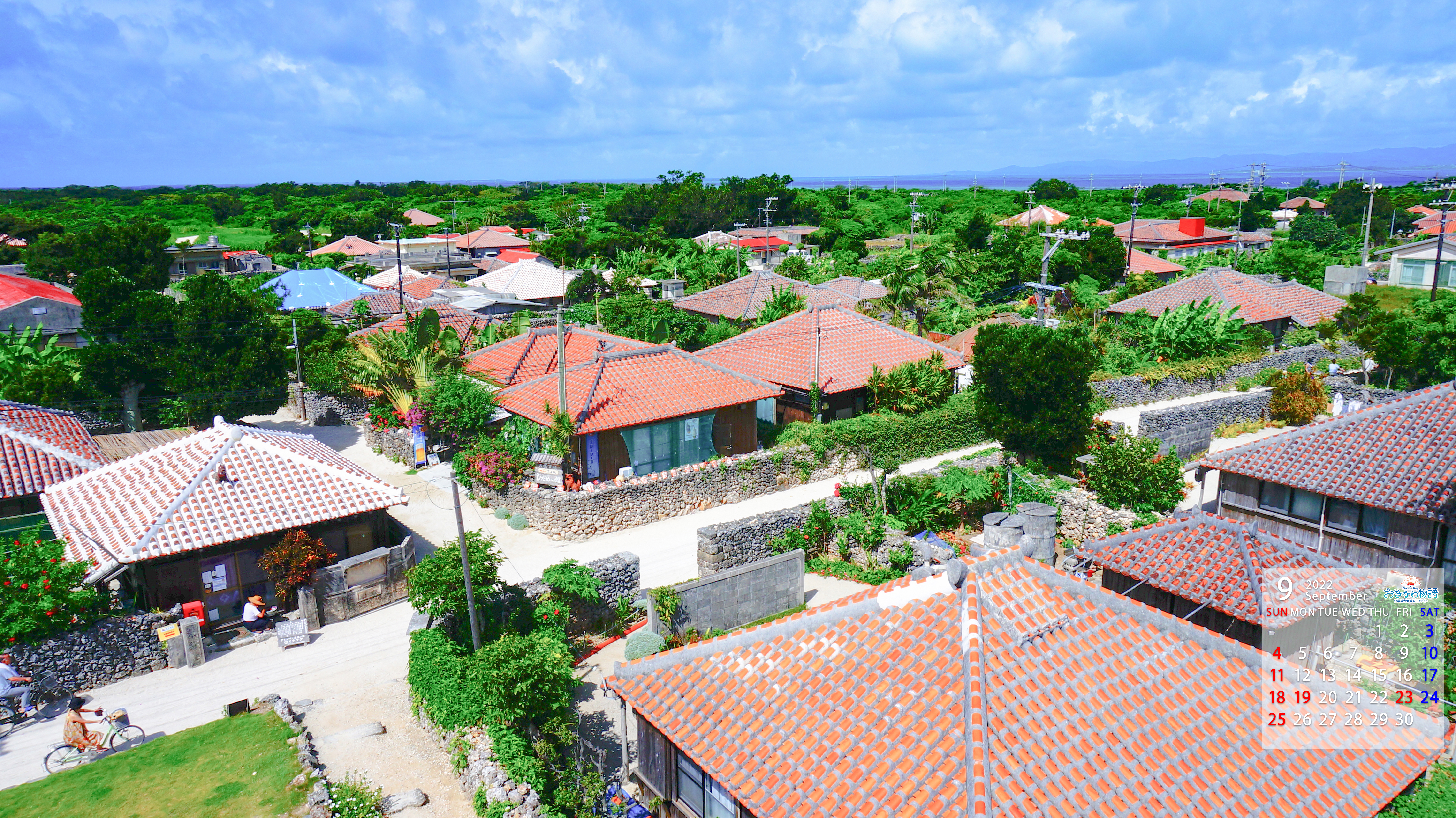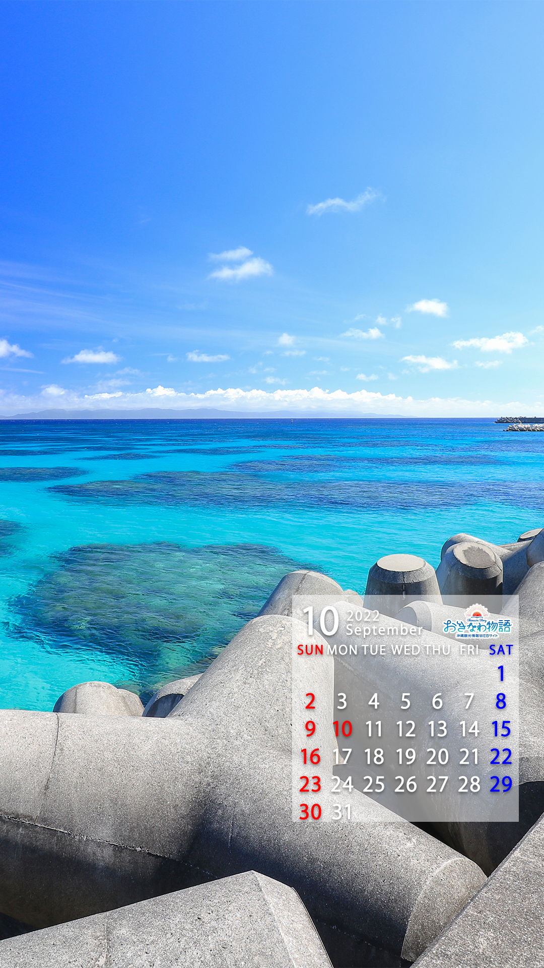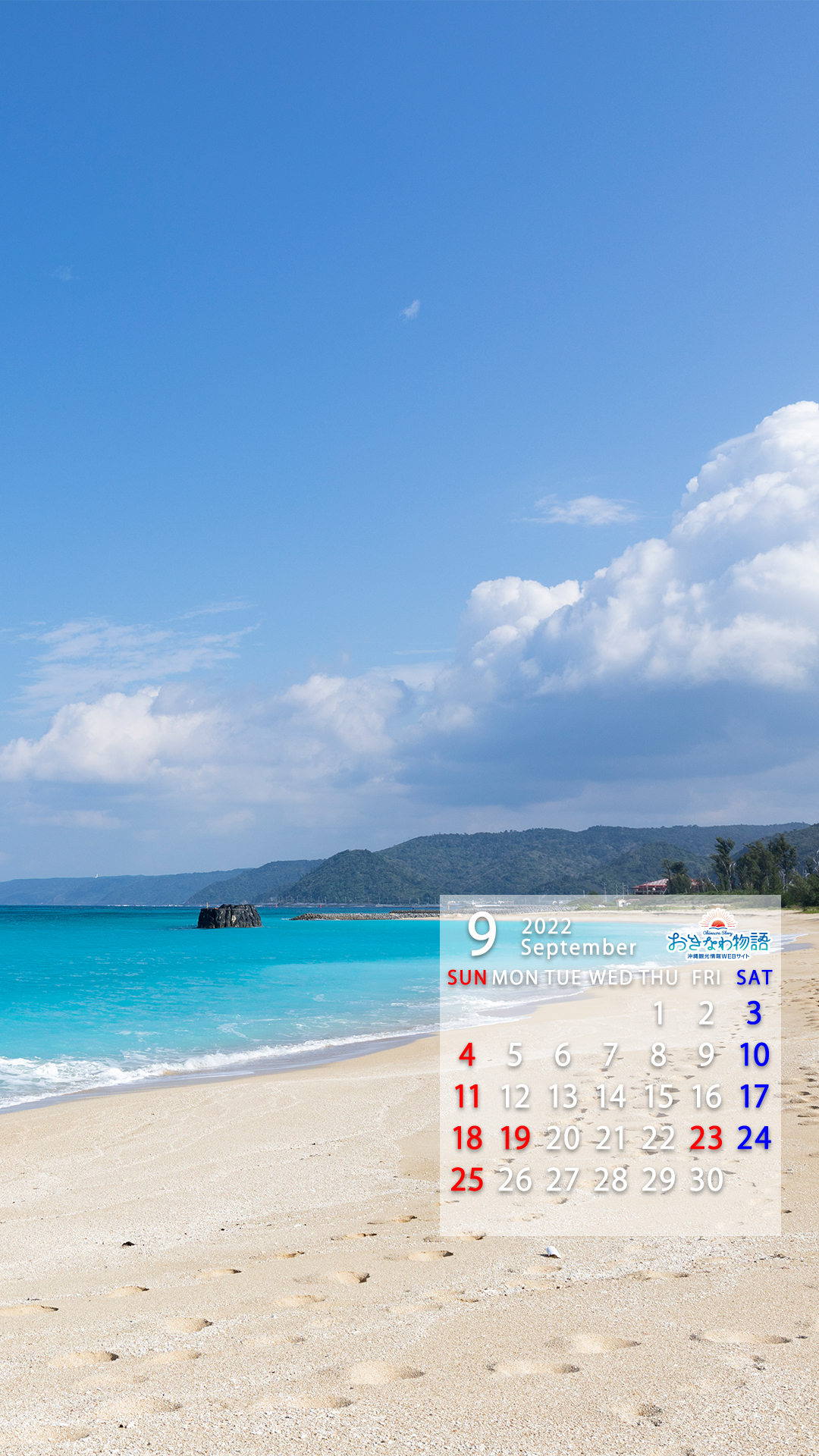 沖縄の風景にカレンダーをプラスしたデスクトップ壁紙を配布しています。