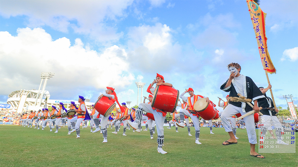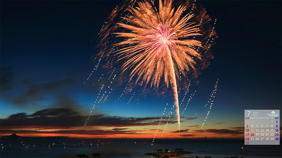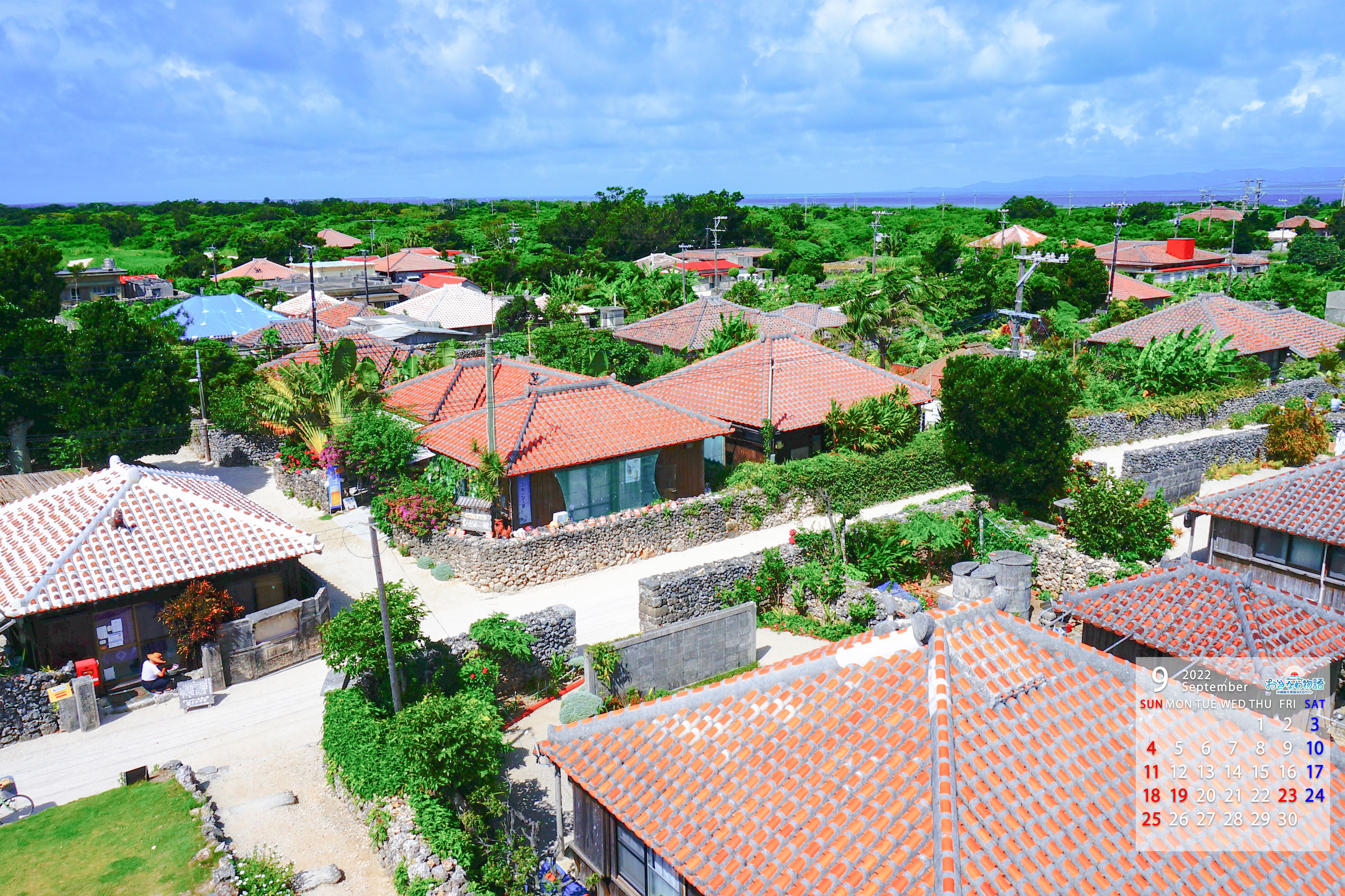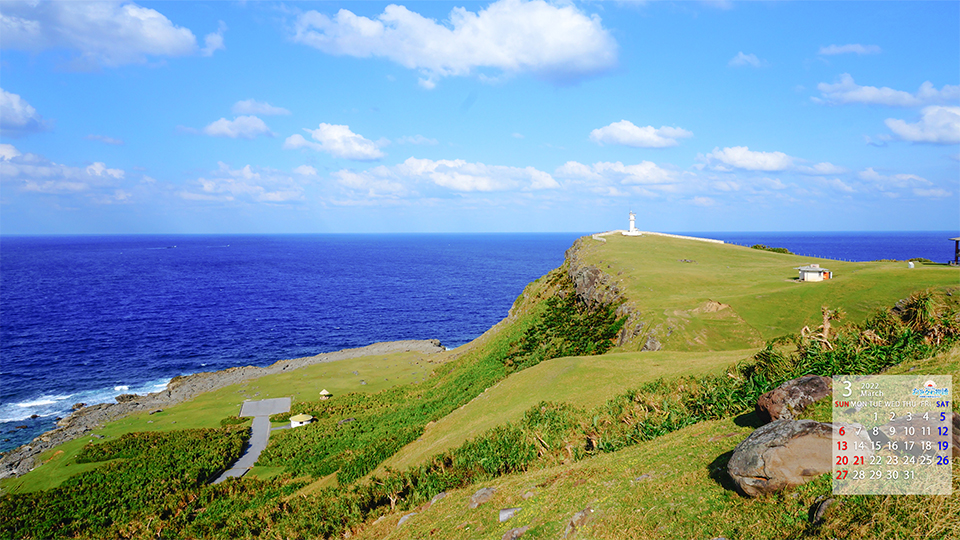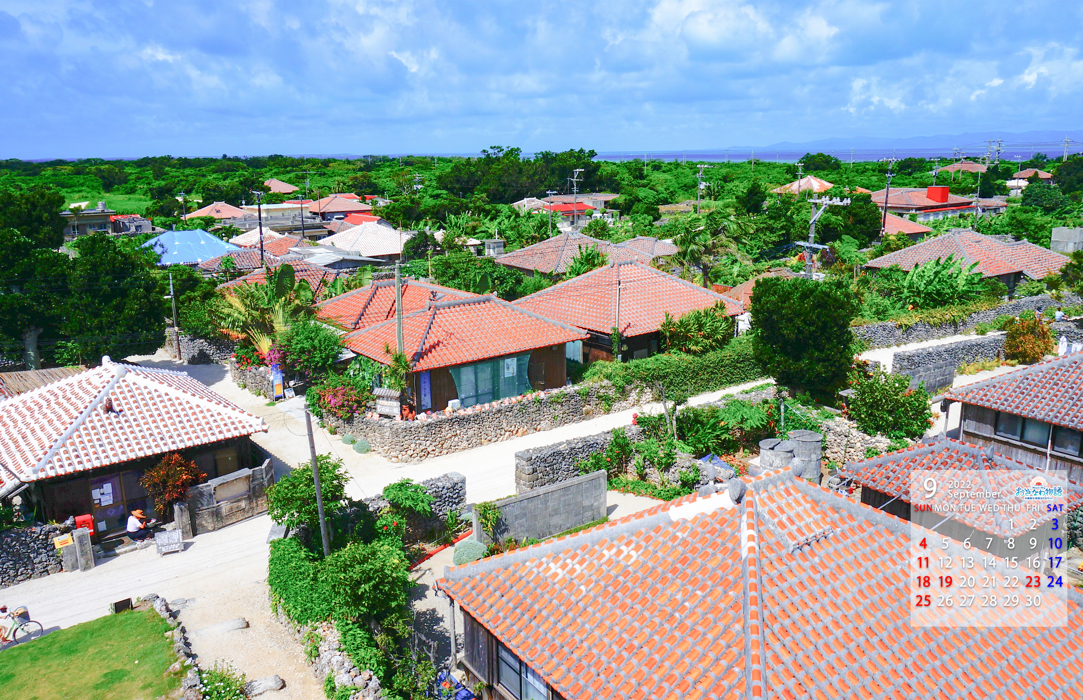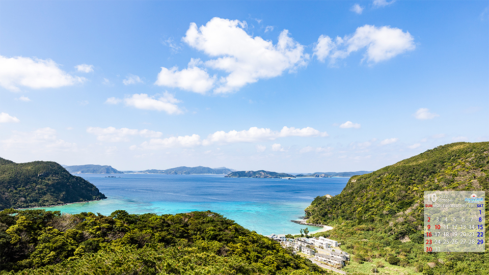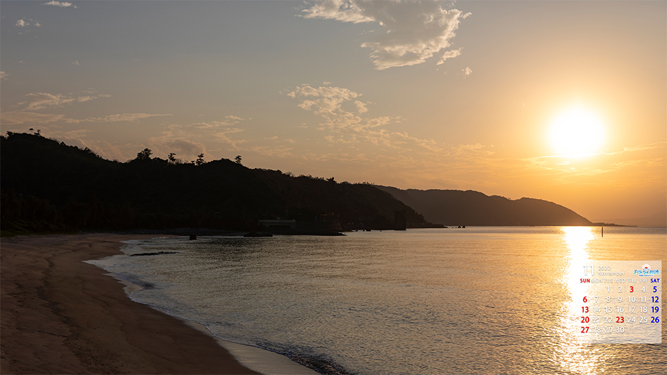 沖縄の風景にカレンダーをプラスしたデスクトップ壁紙を配布しています。
