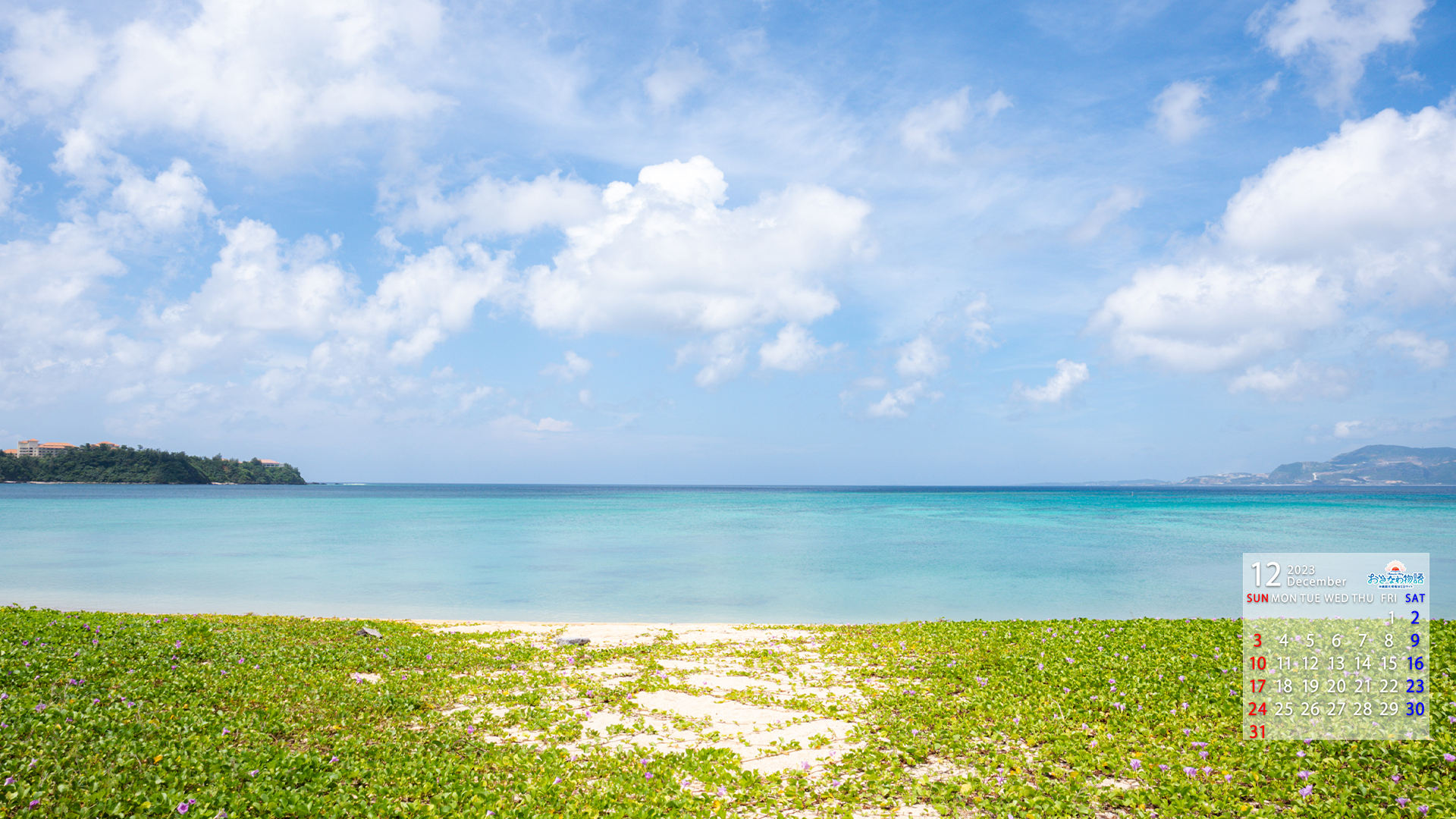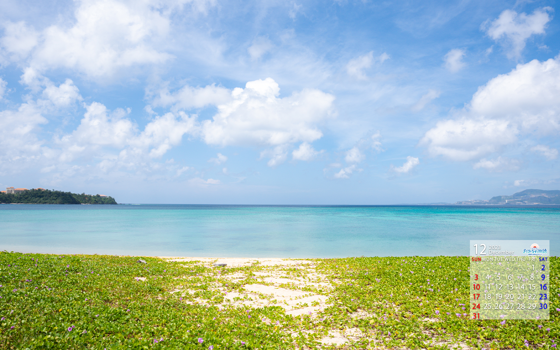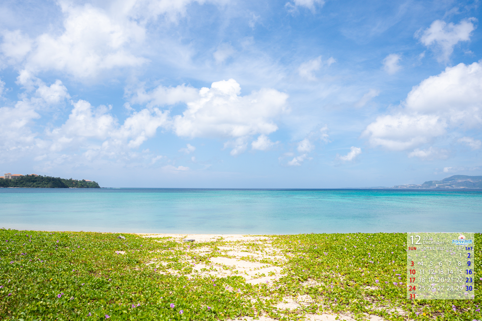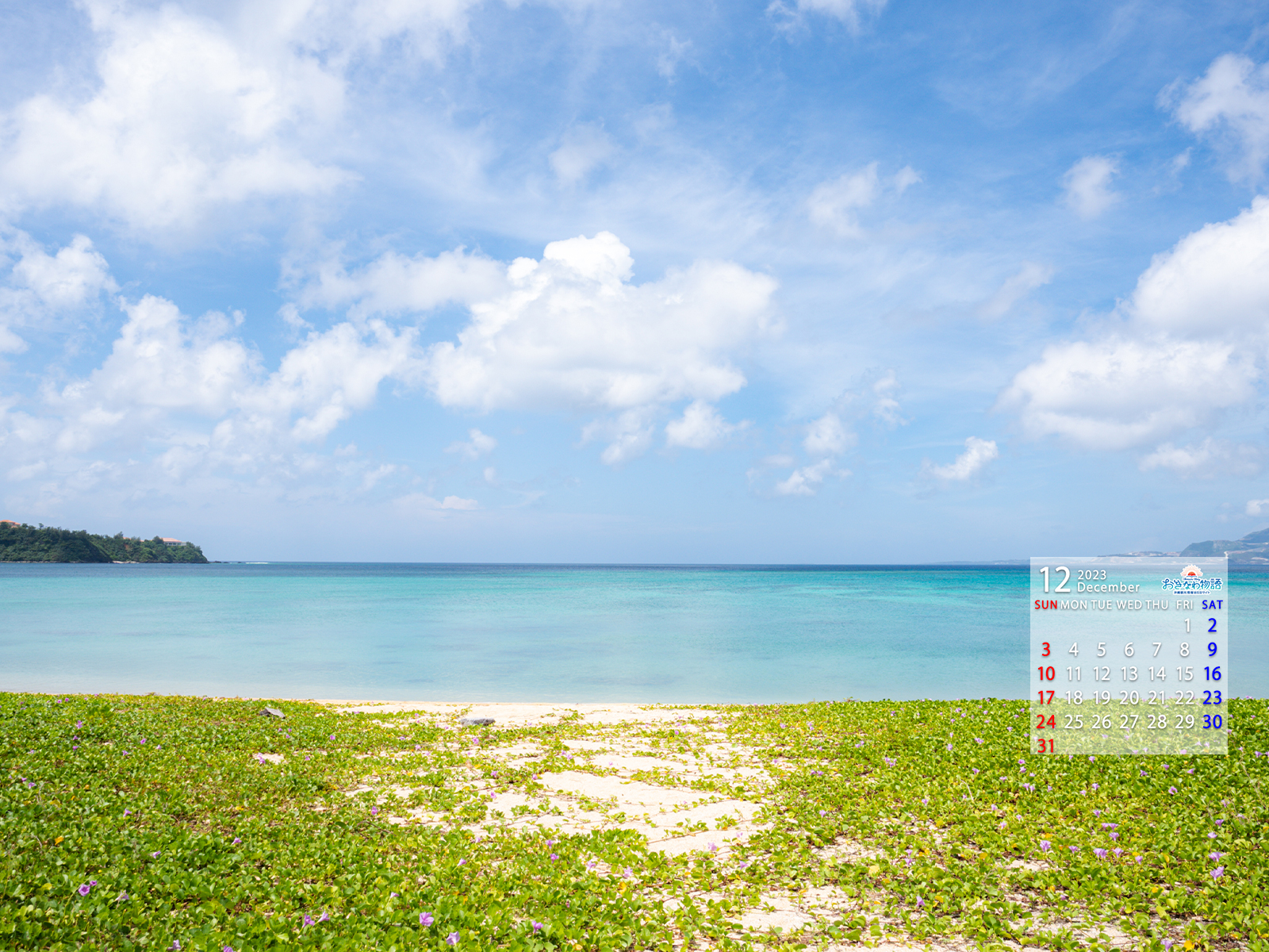 沖縄の風景にカレンダーをプラスしたデスクトップ壁紙を配布しています。