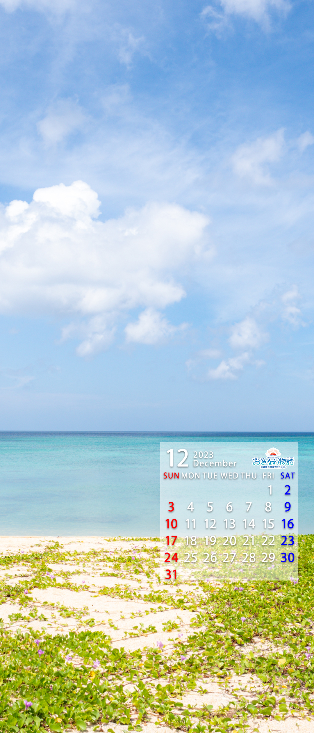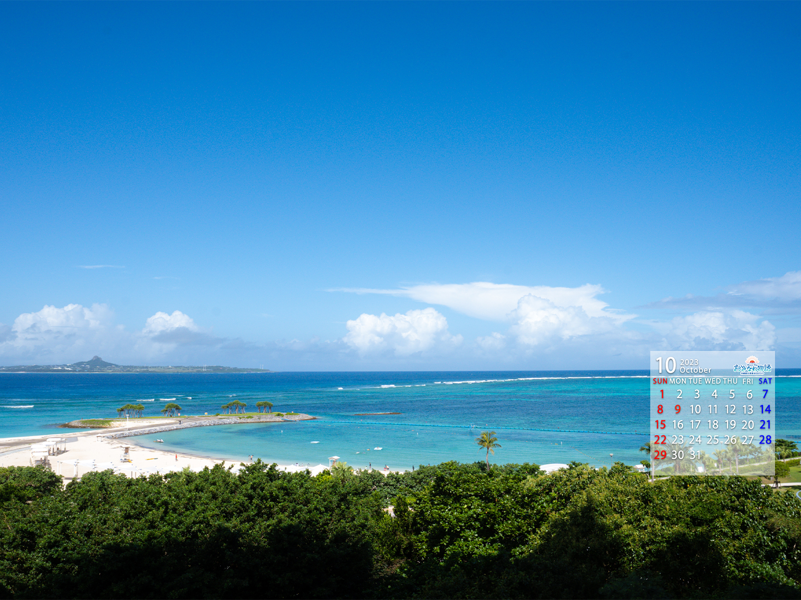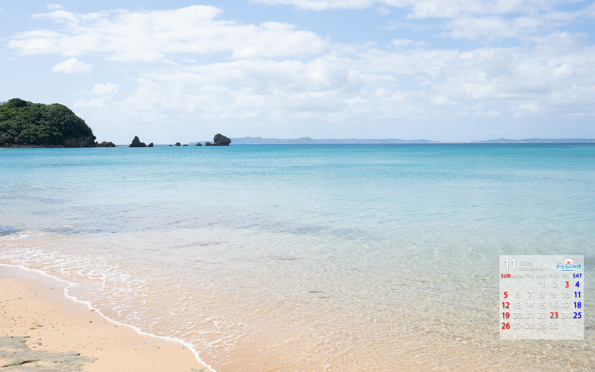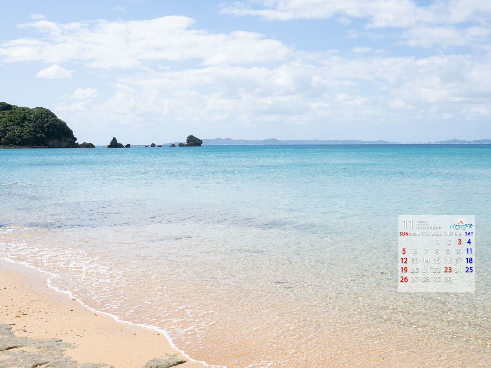 沖縄の風景にカレンダーをプラスしたデスクトップ壁紙を配布しています。