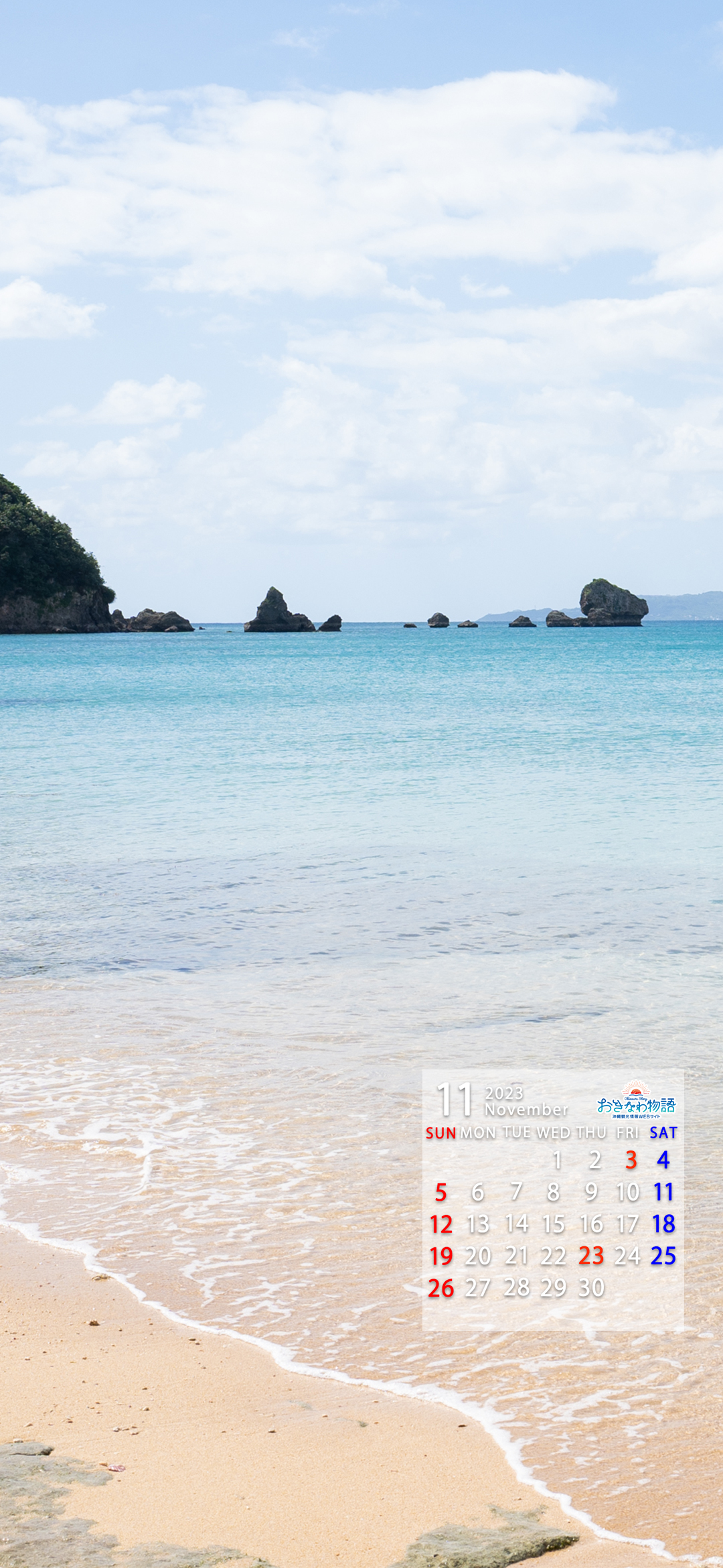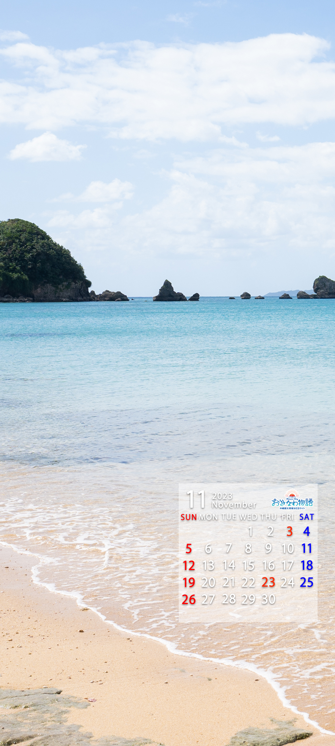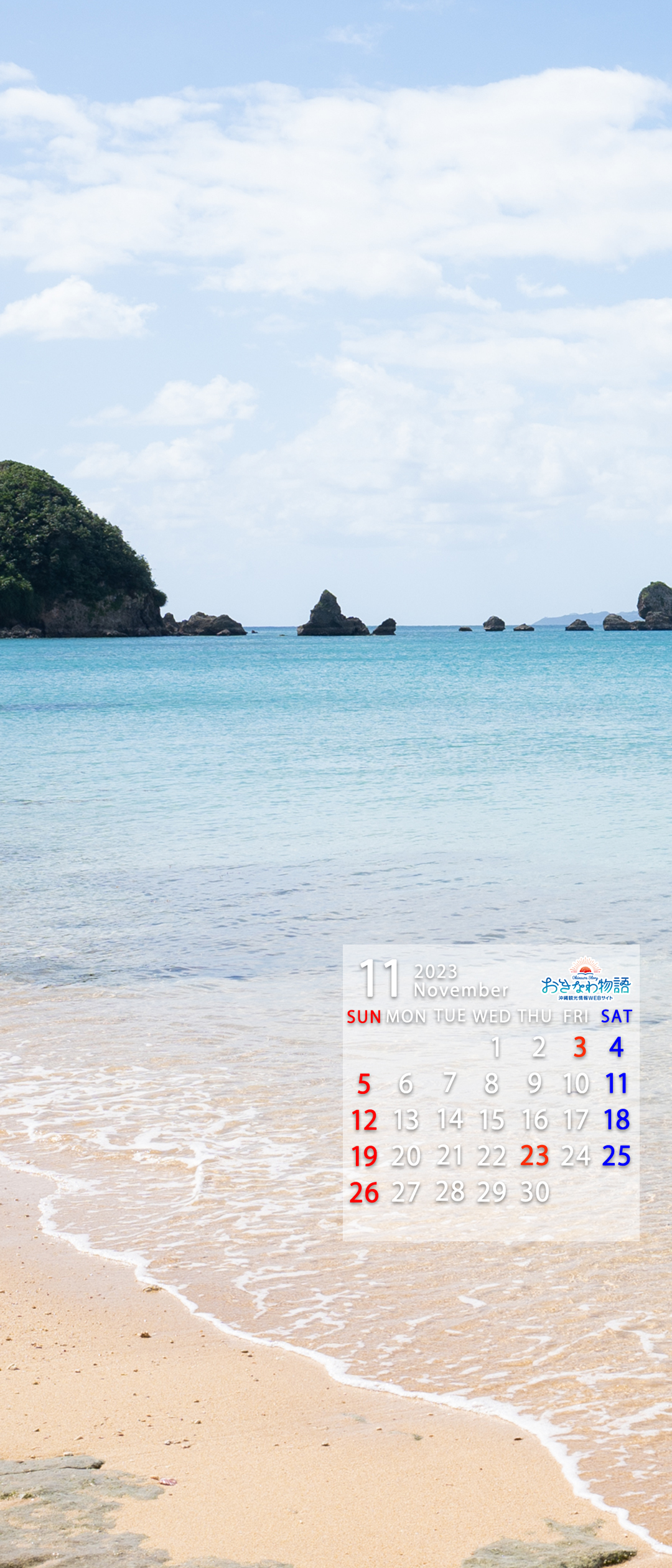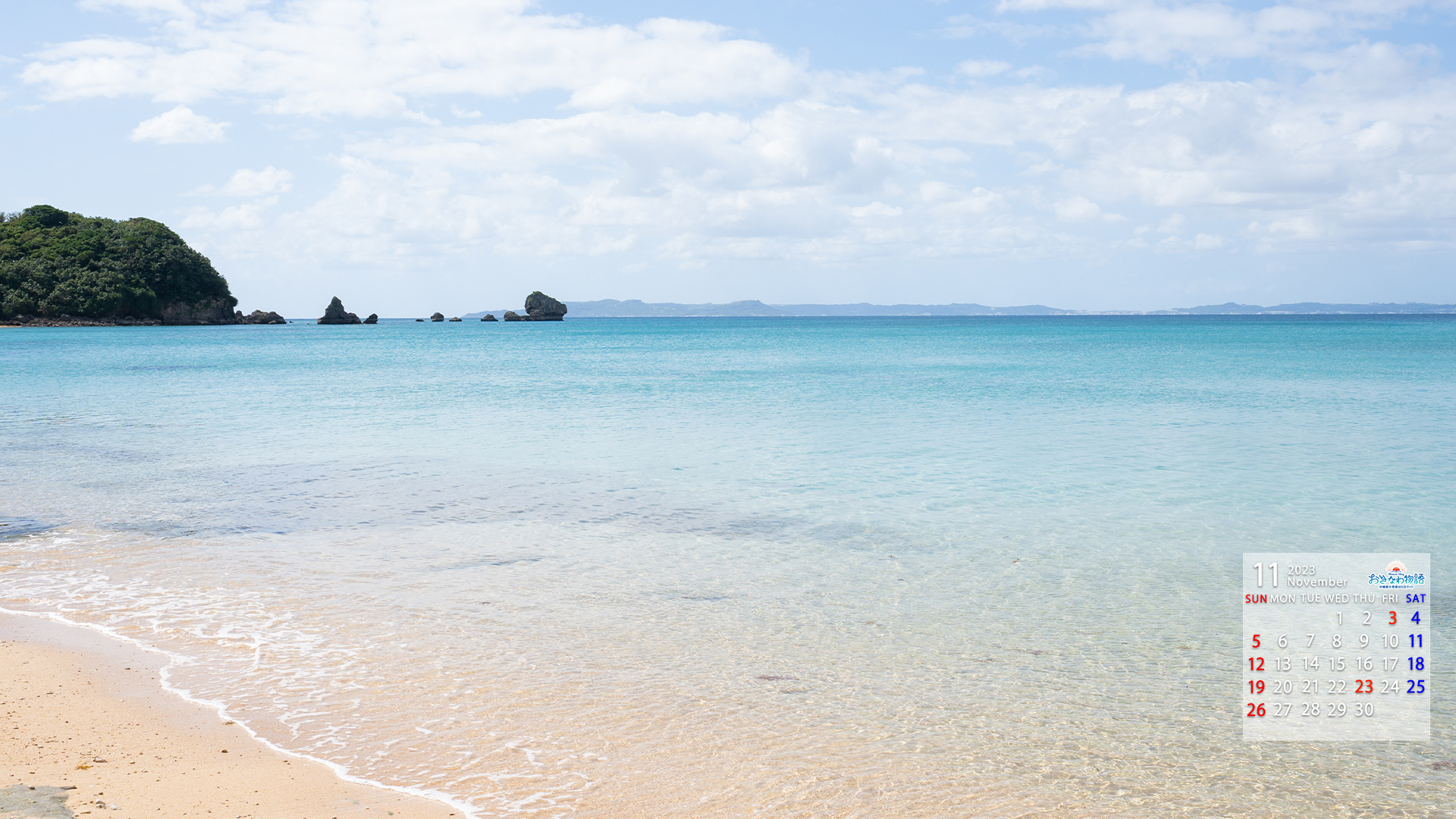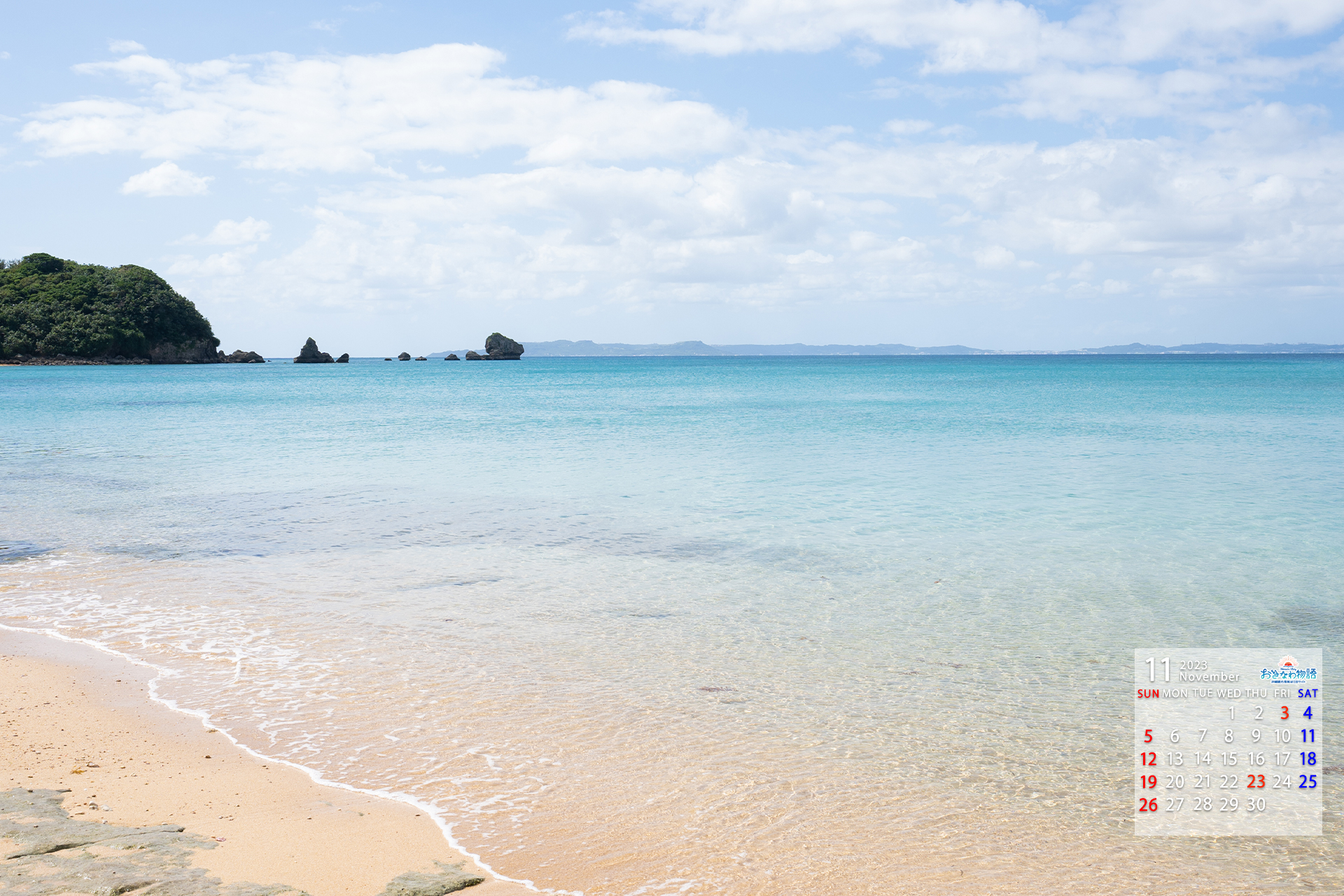 沖縄の風景にカレンダーをプラスしたデスクトップ壁紙を配布しています。
