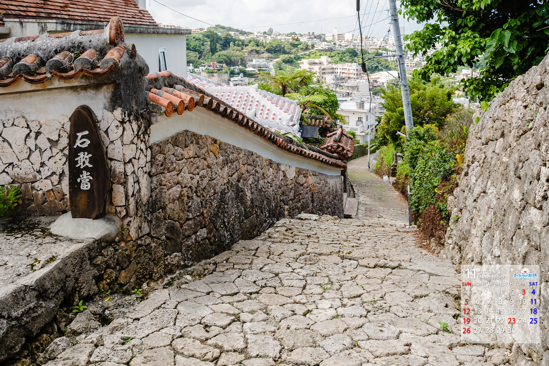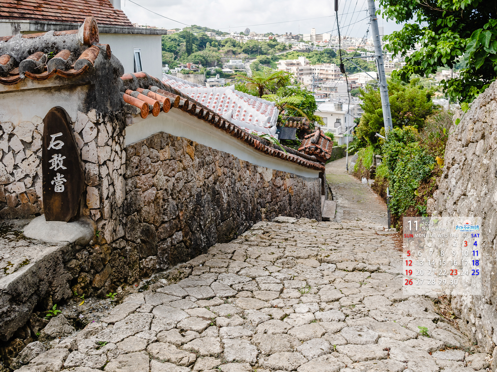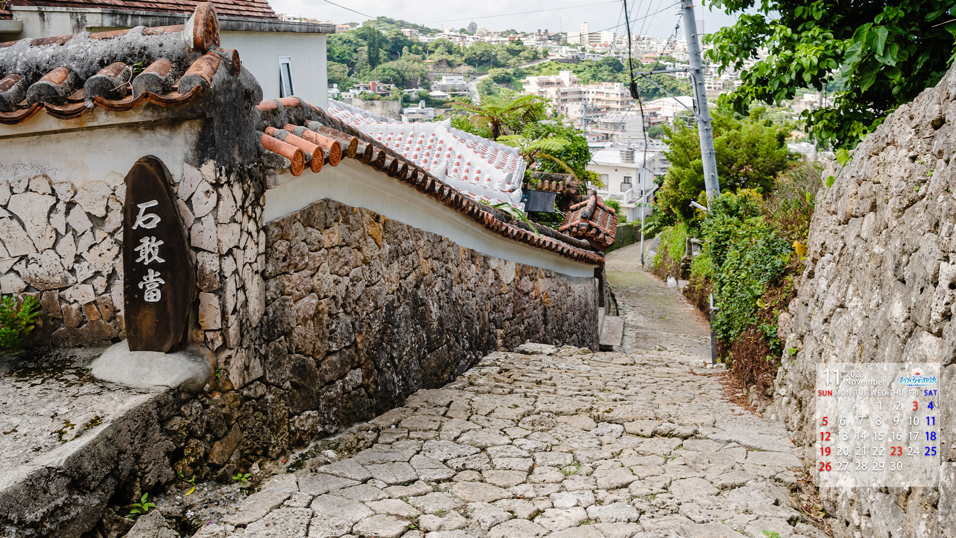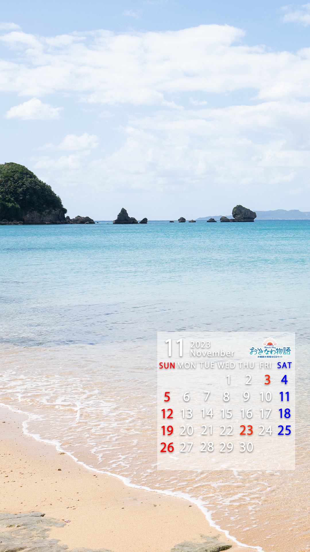 沖縄の風景にカレンダーをプラスしたデスクトップ壁紙を配布しています。