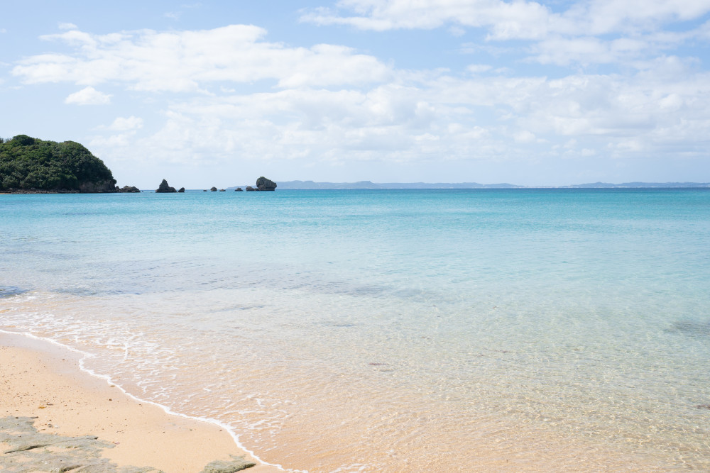 与那国島にある絶景のフォトスポット。ビーチが丸く切り取られる撮影スポットでアーチの向こうは瑠璃色の海、ビーチコーミングも楽しめます。