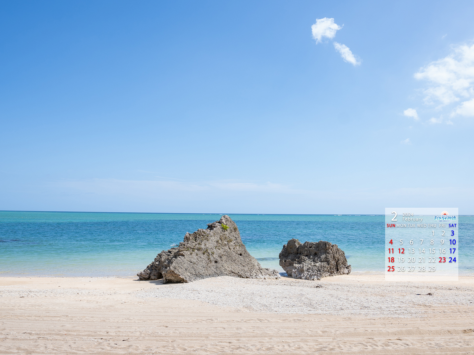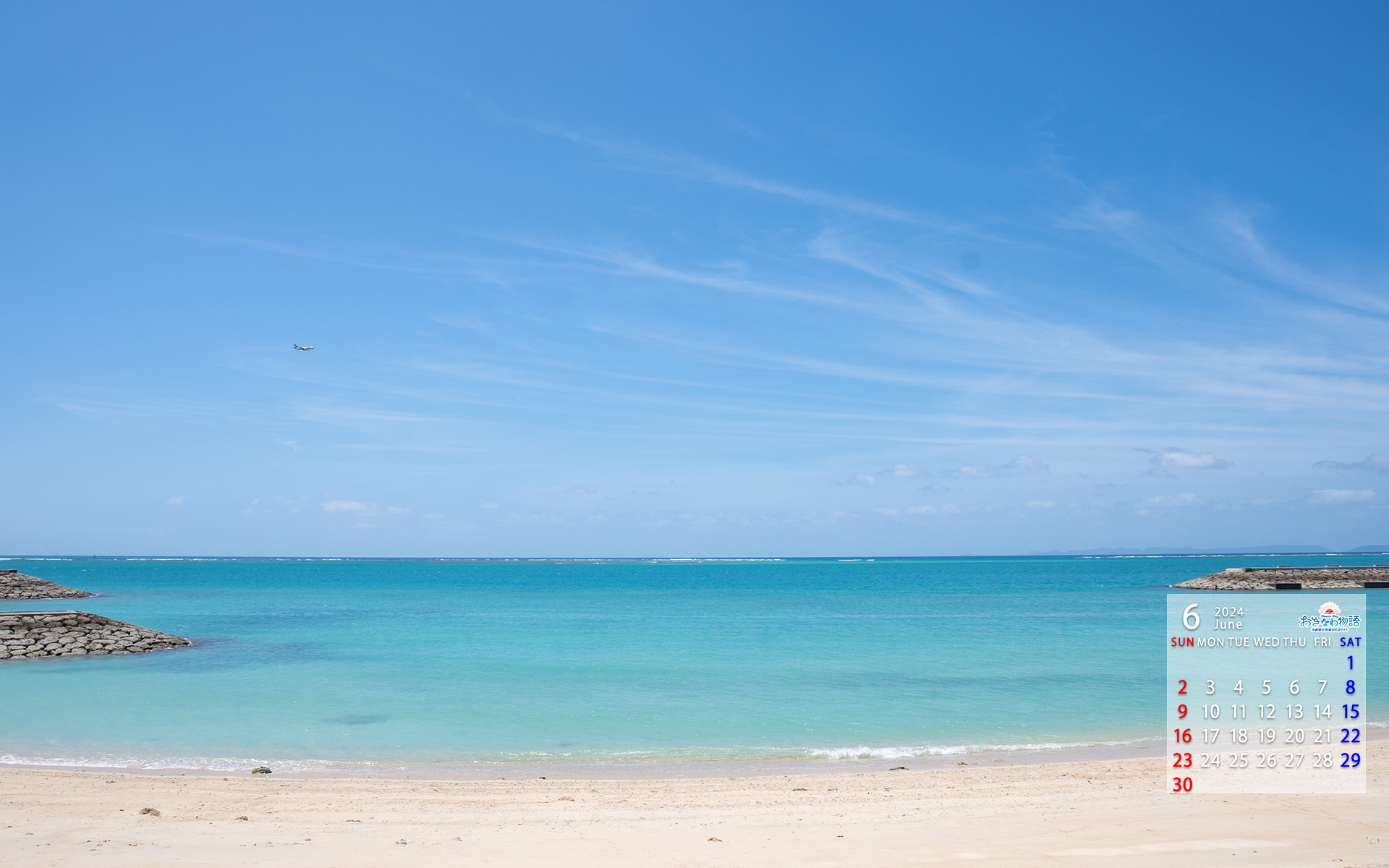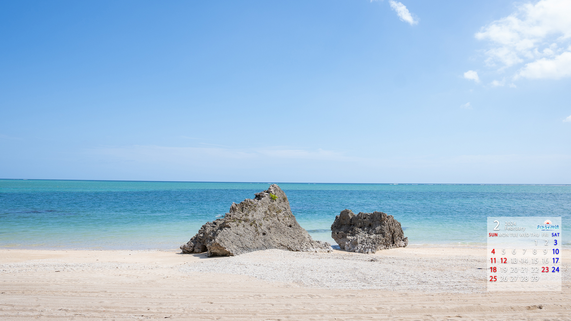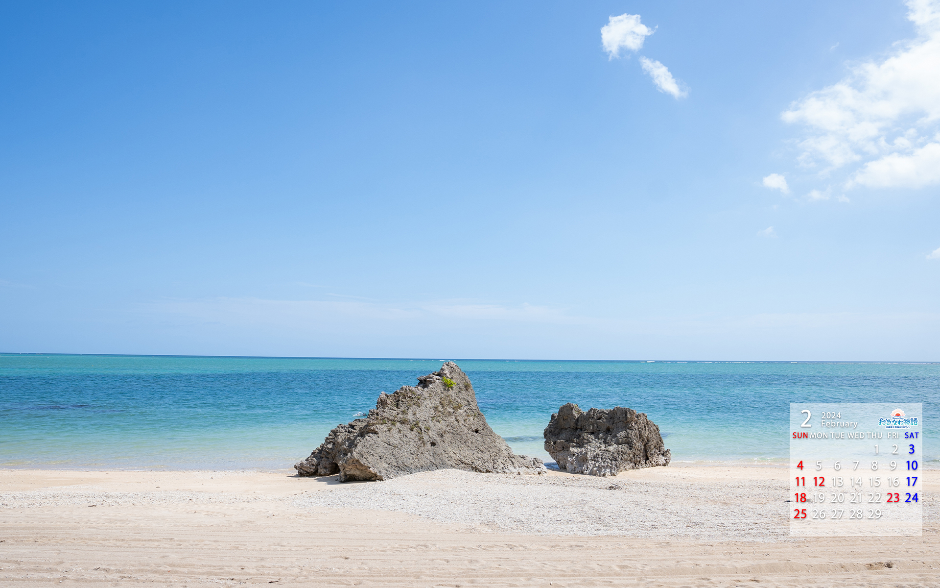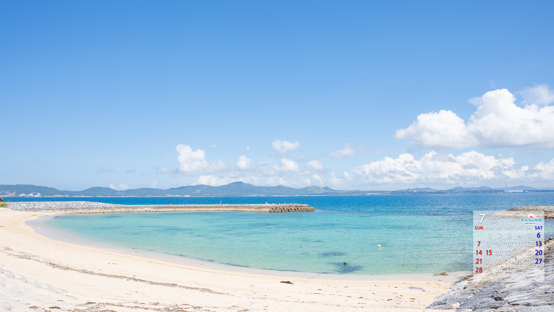 沖縄の風景にカレンダーをプラスしたデスクトップ壁紙を配布しています。