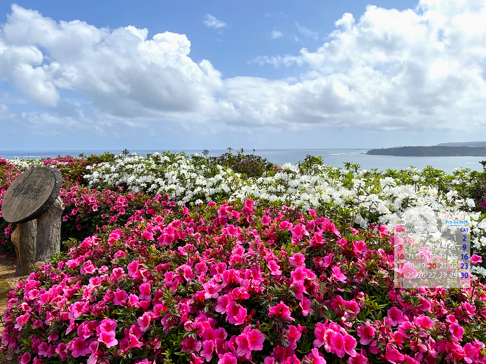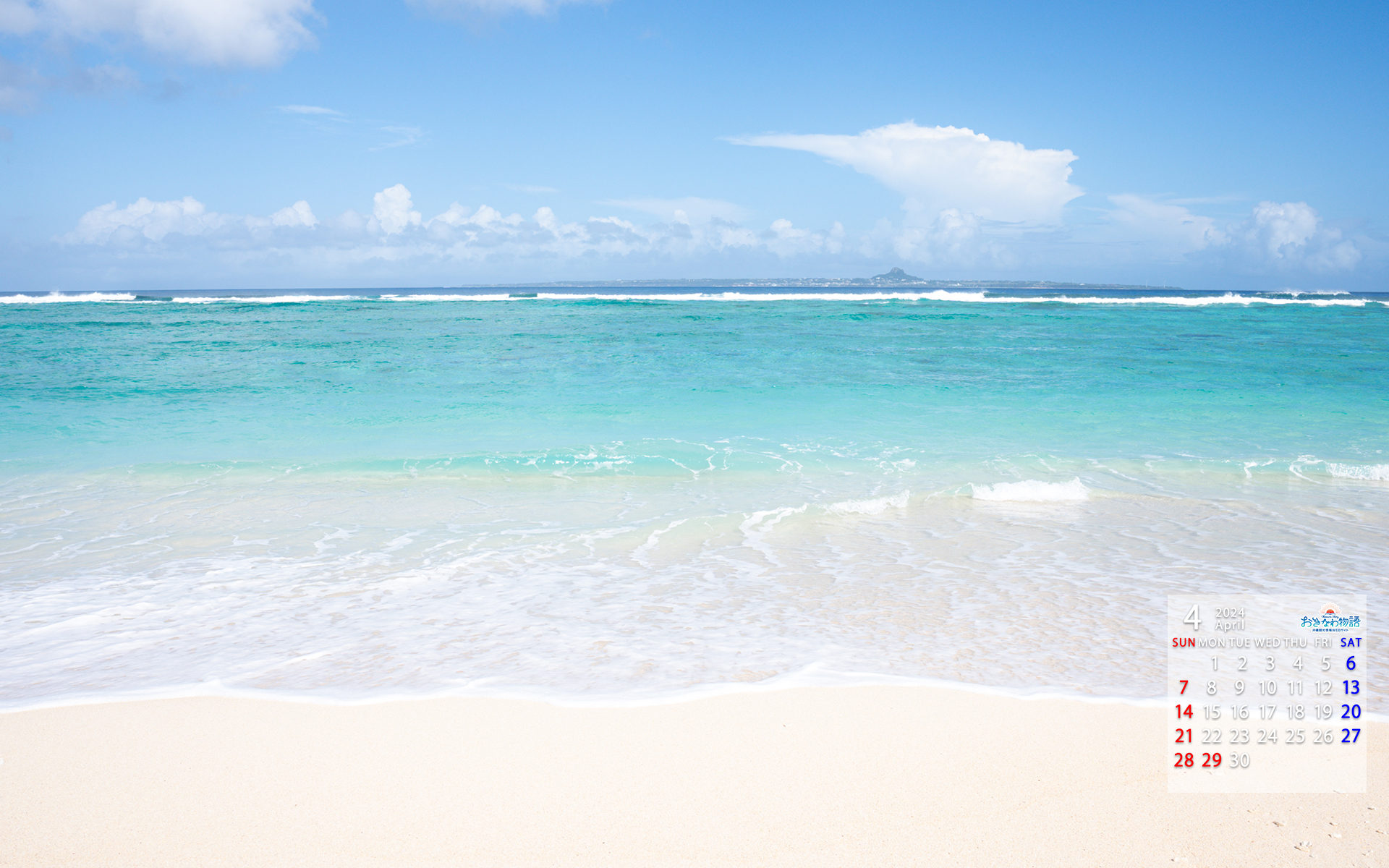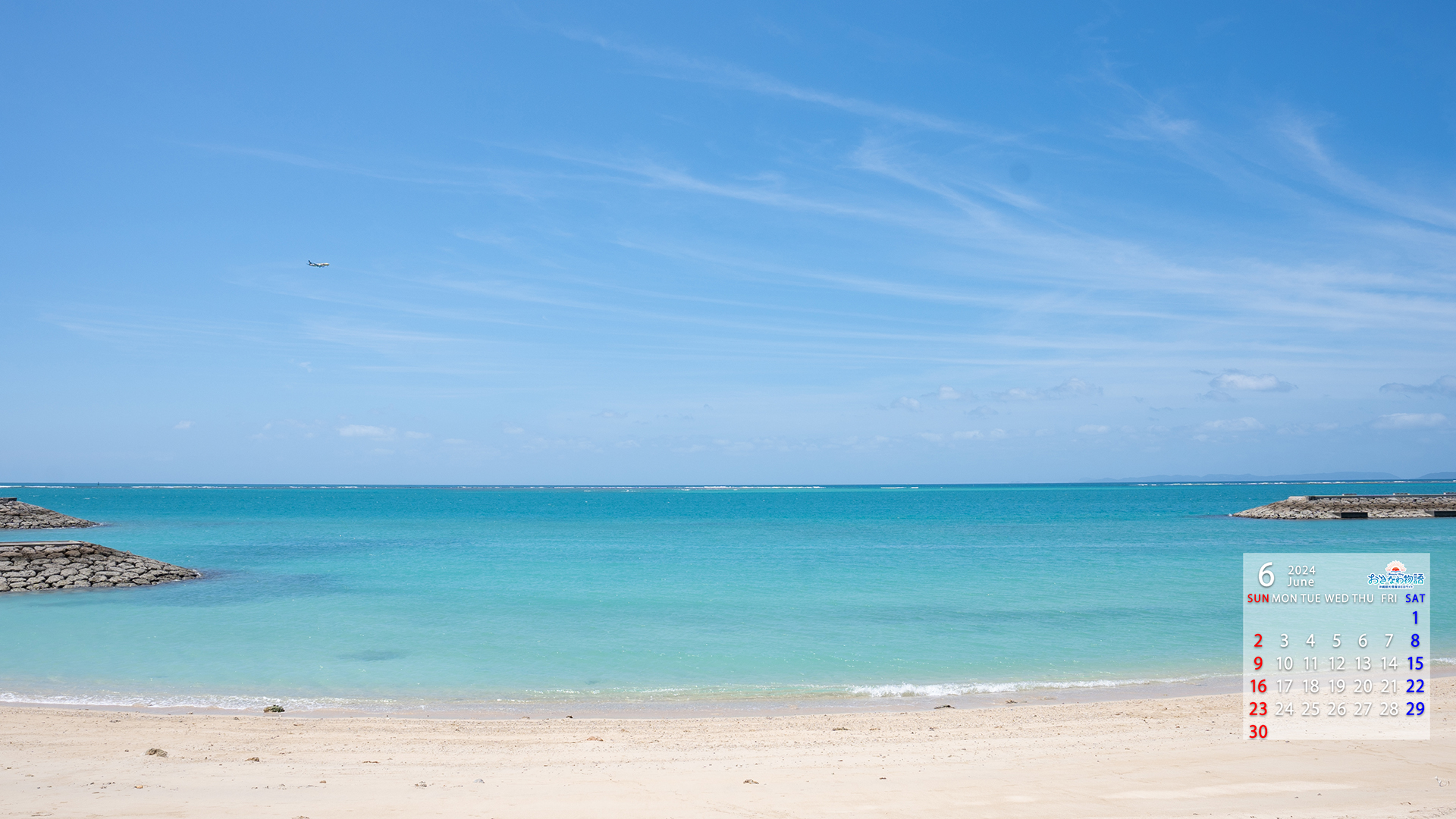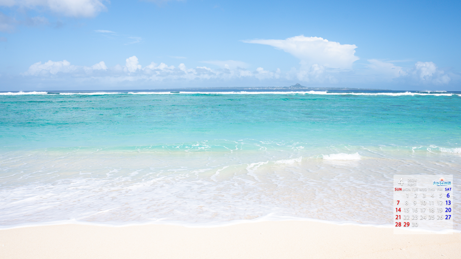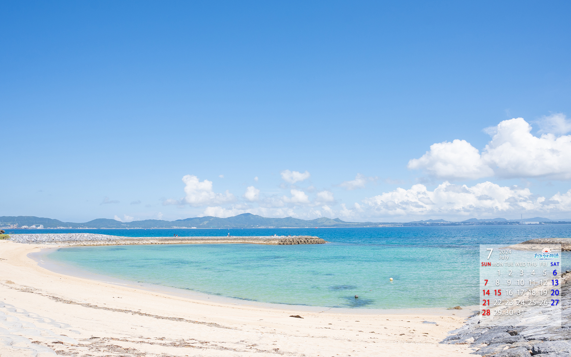 沖縄の風景にカレンダーをプラスしたデスクトップ壁紙を配布しています。