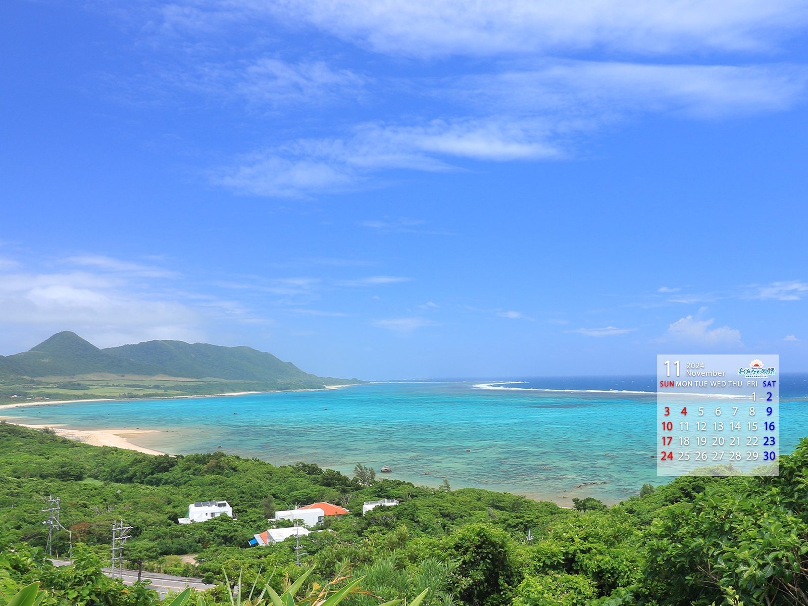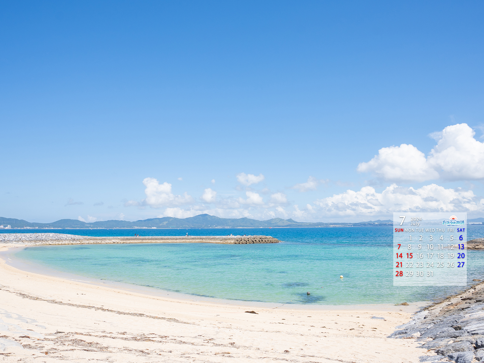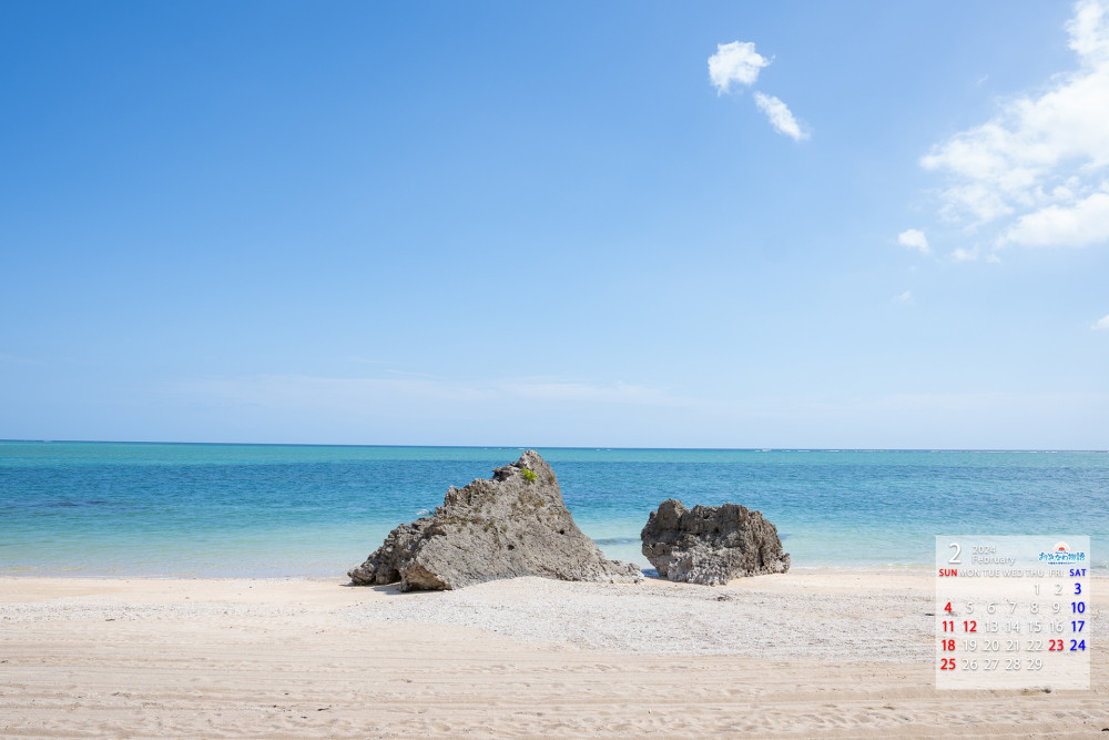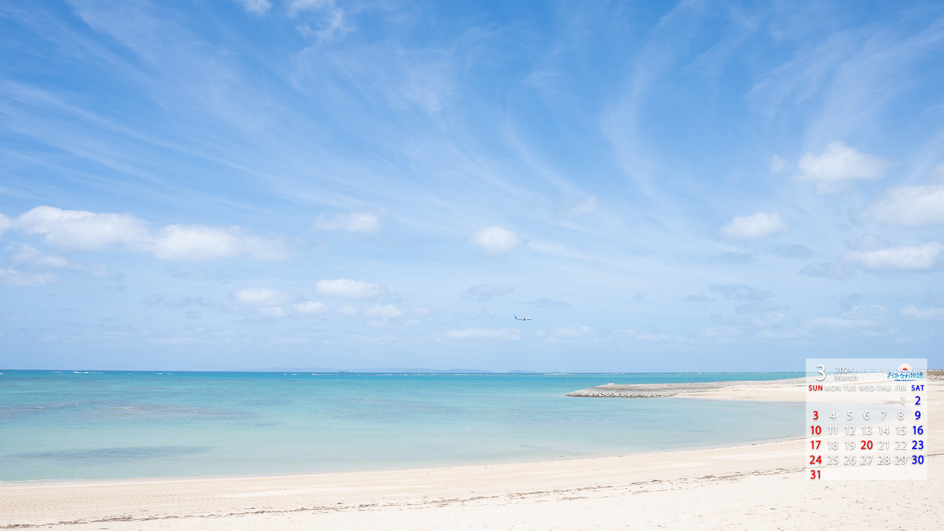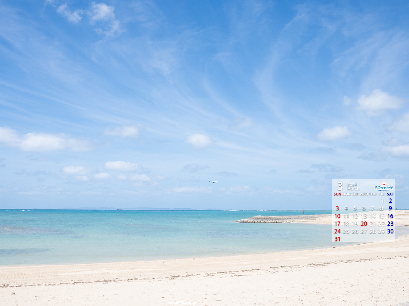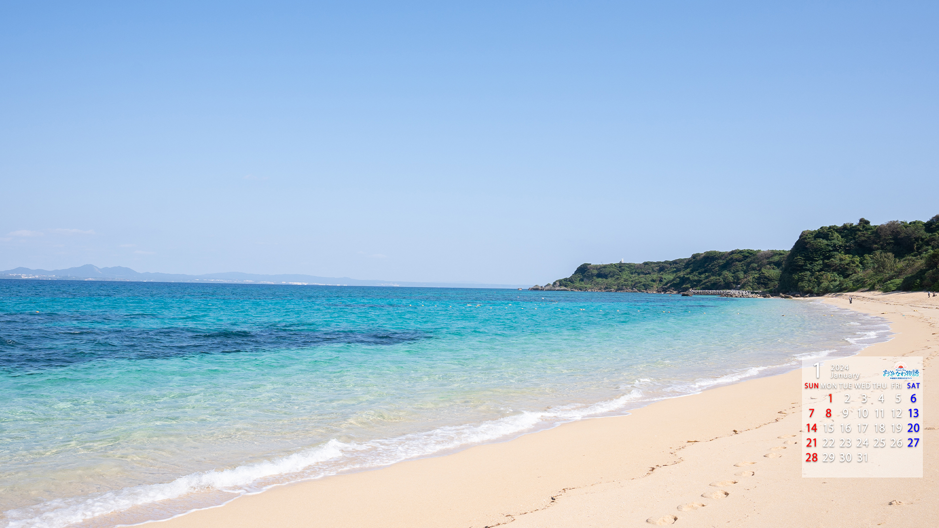 沖縄の風景にカレンダーをプラスしたデスクトップ壁紙を配布しています。