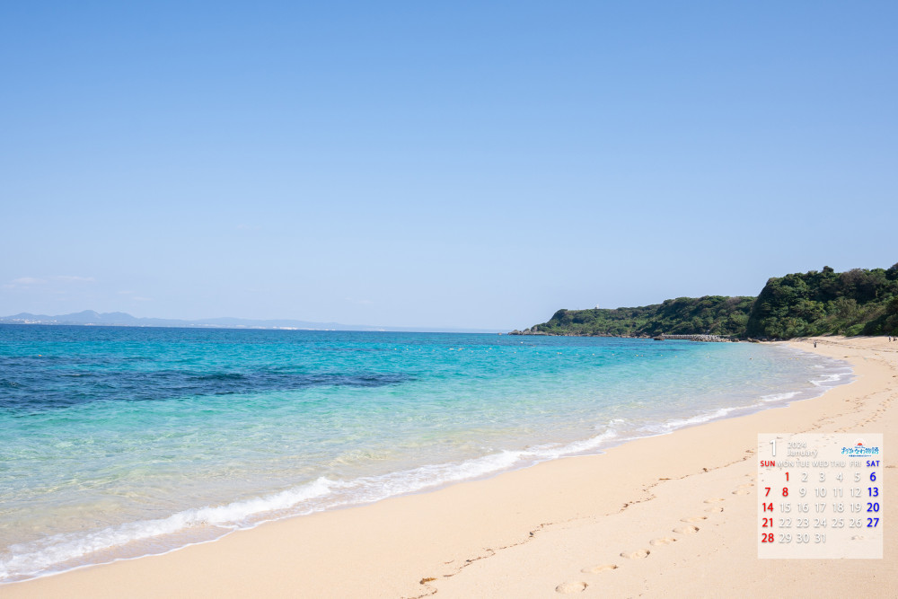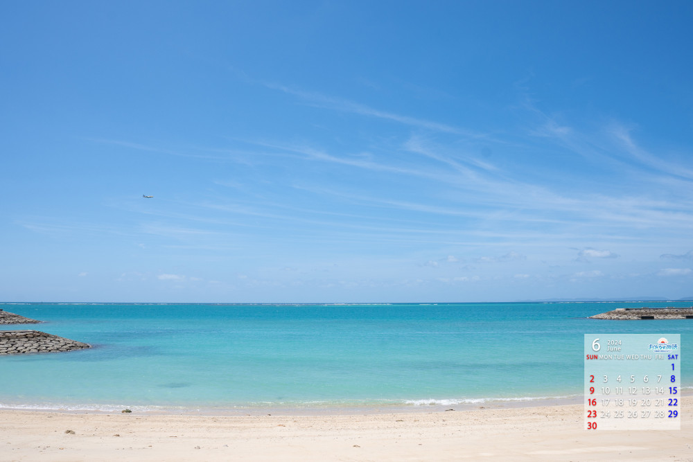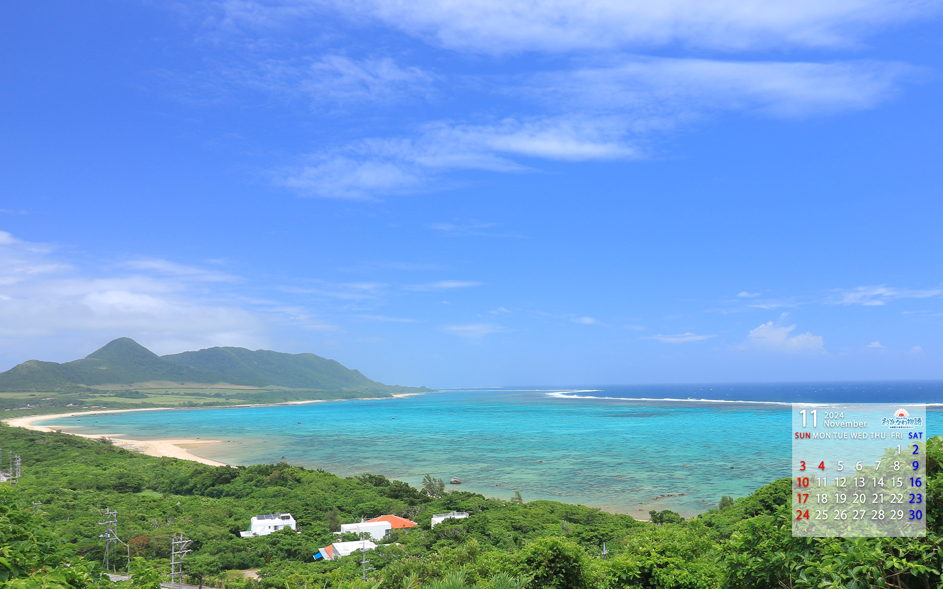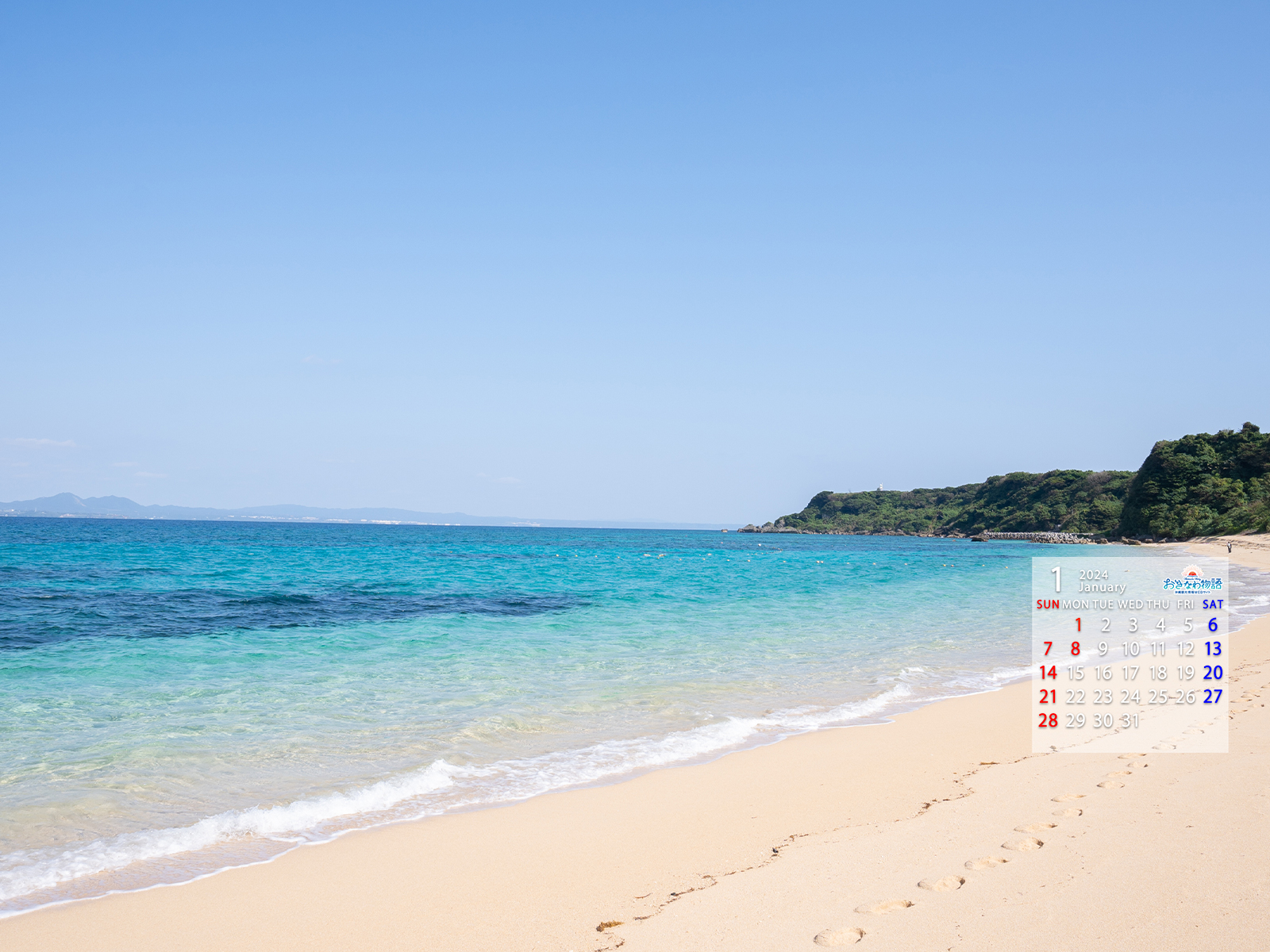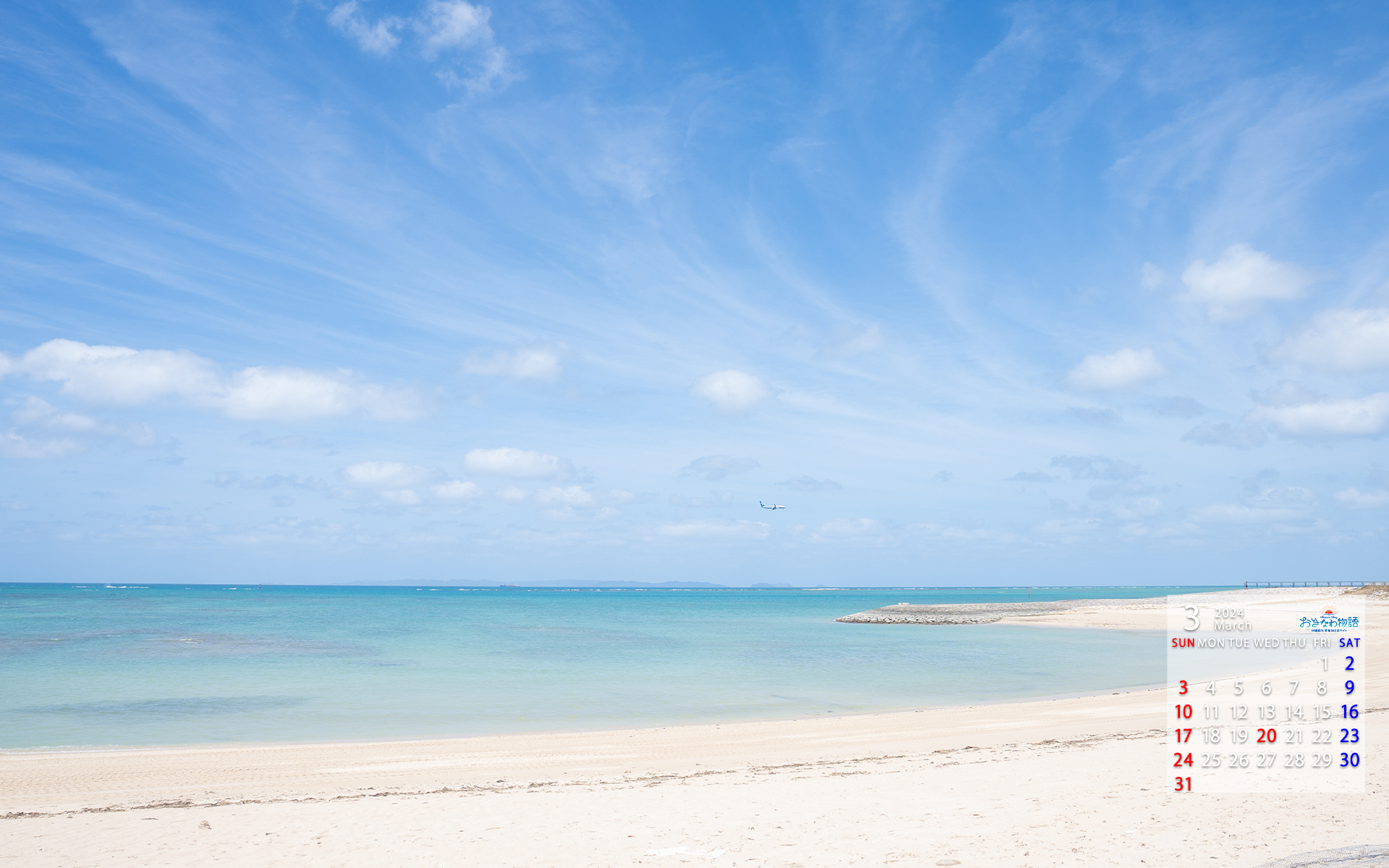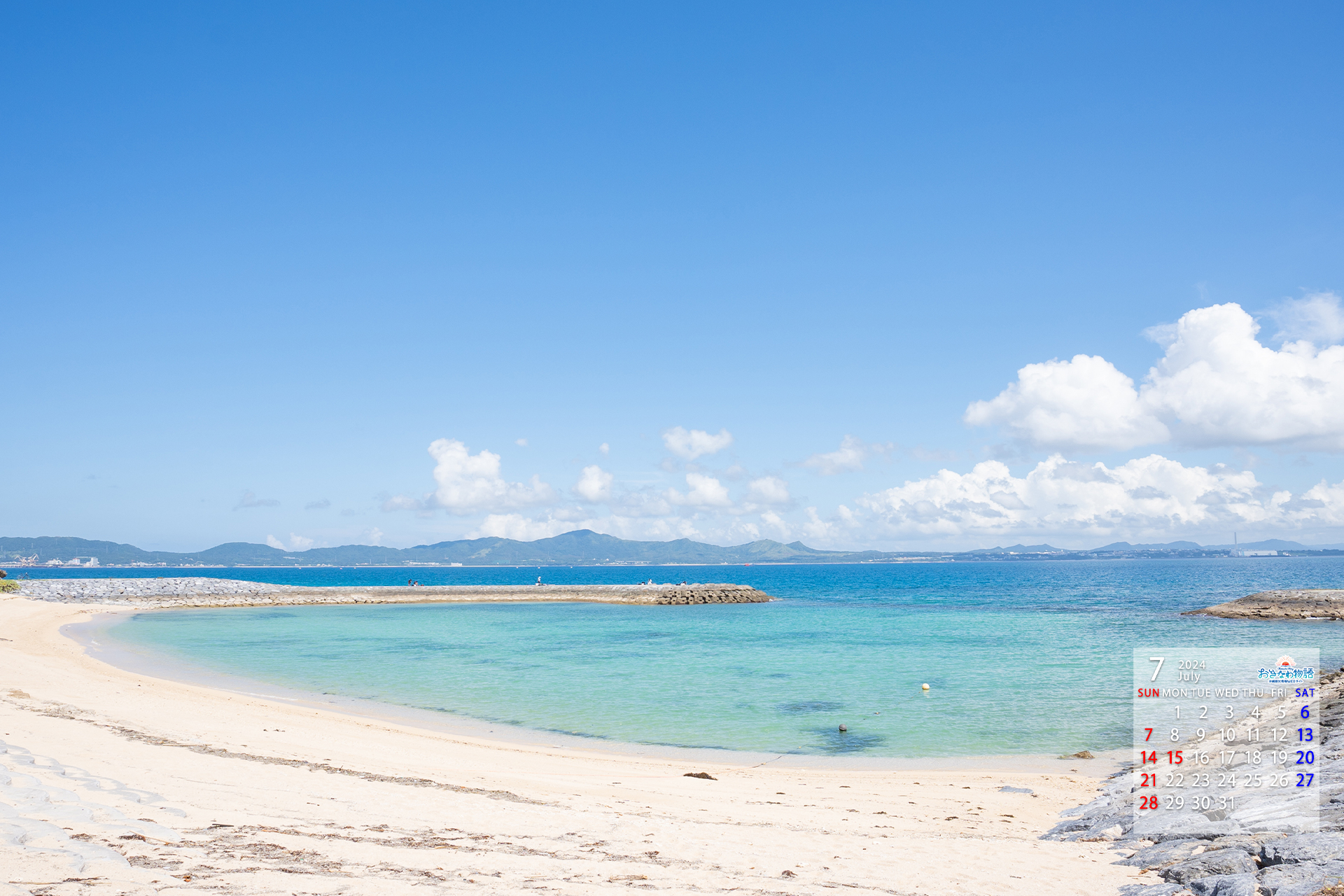 沖縄の風景にカレンダーをプラスしたデスクトップ壁紙を配布しています。