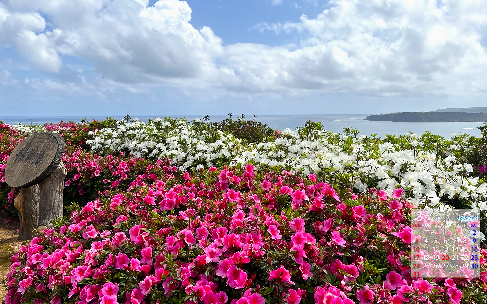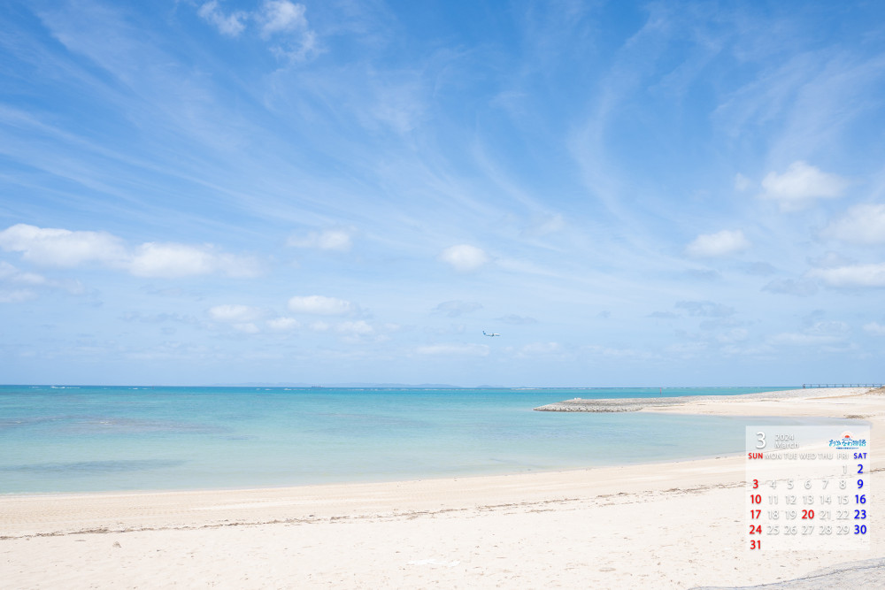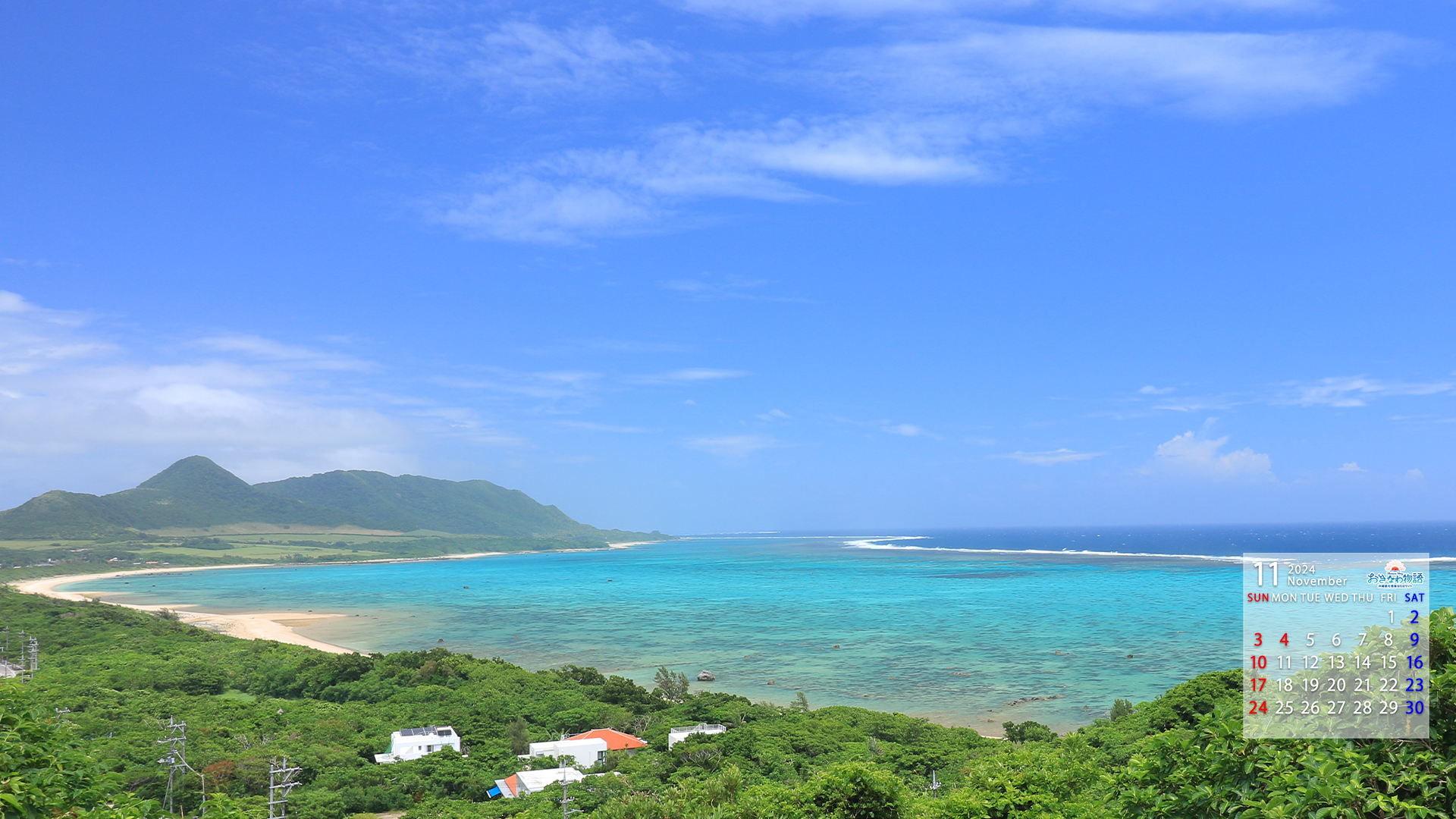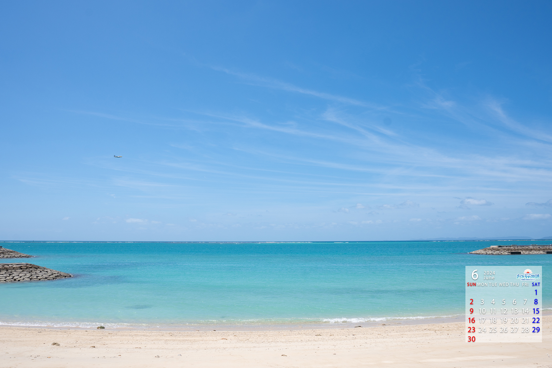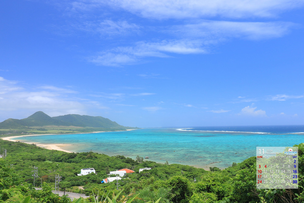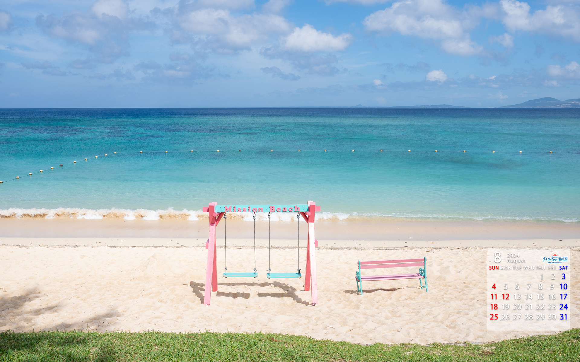 沖縄の風景にカレンダーをプラスしたデスクトップ壁紙を配布しています。
