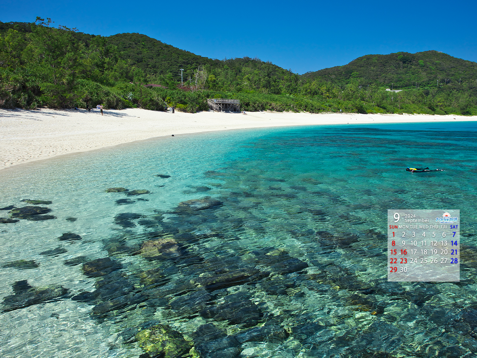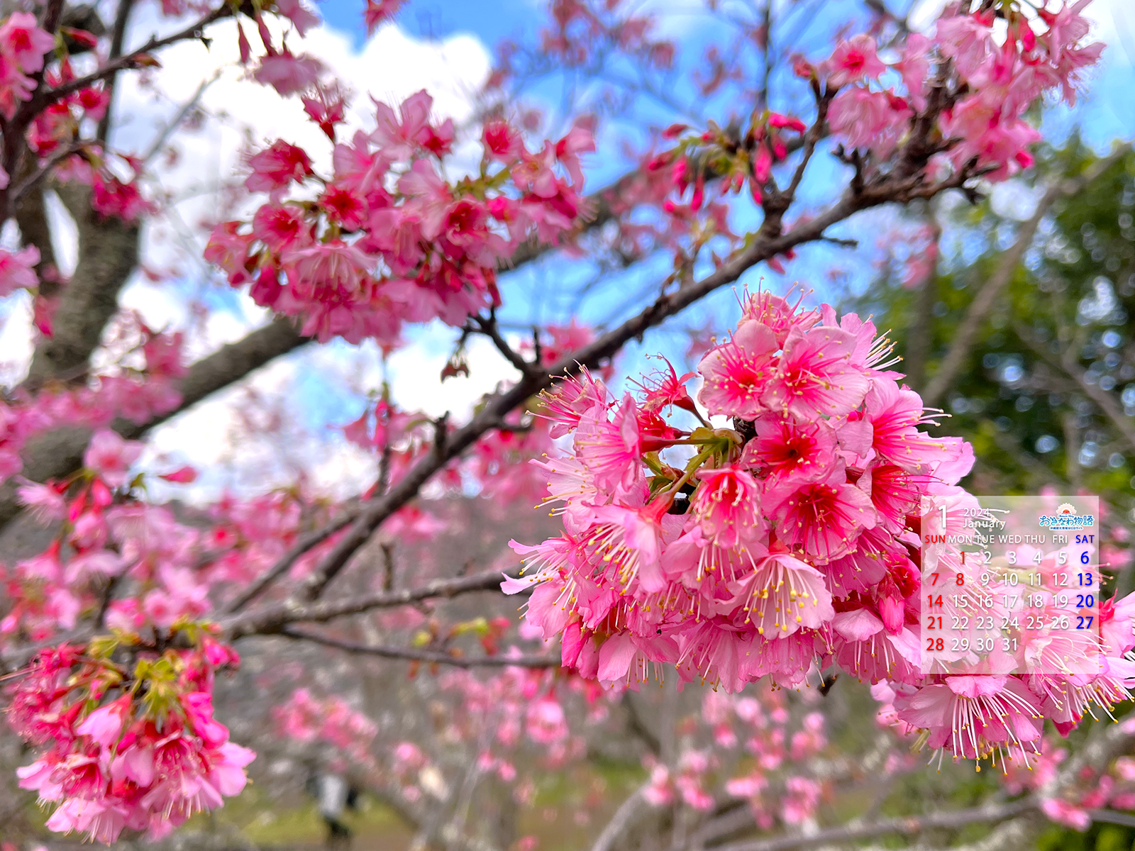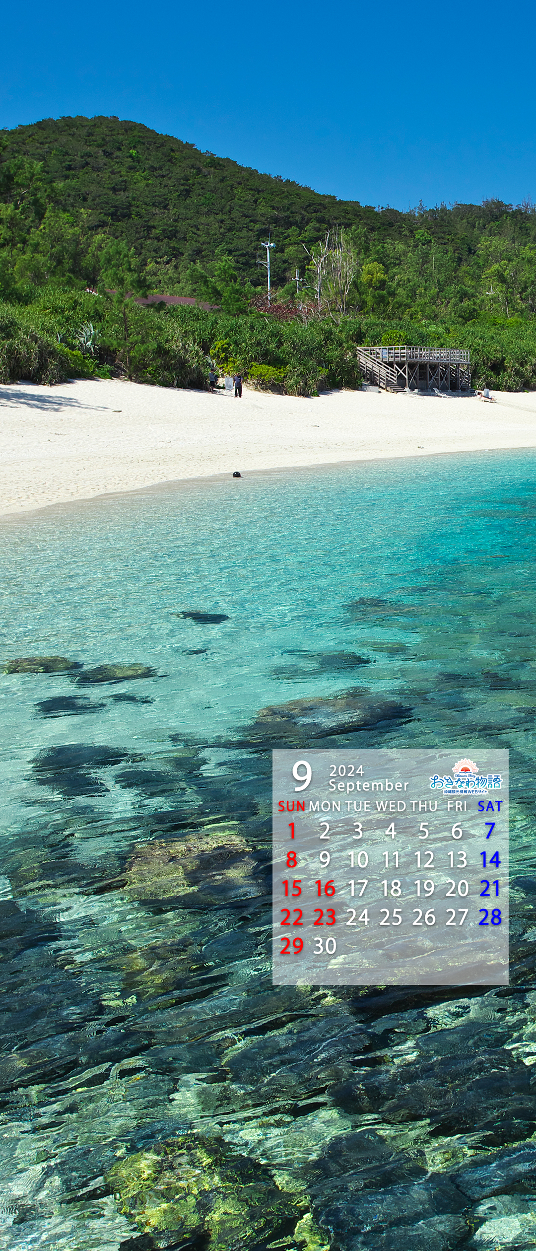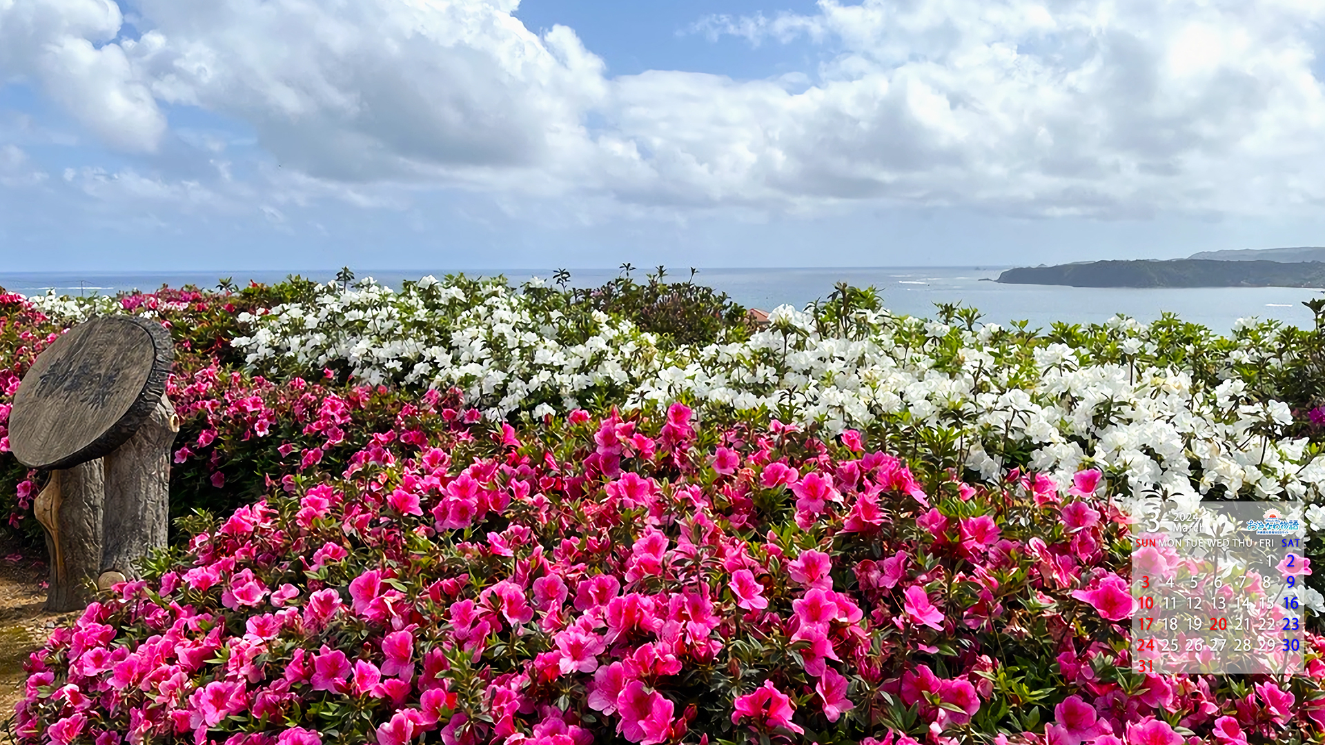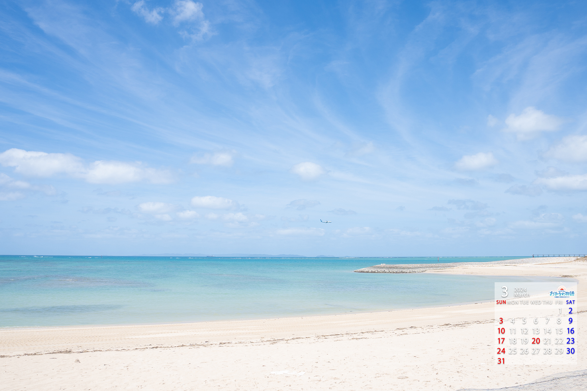 沖縄の風景にカレンダーをプラスしたデスクトップ壁紙を配布しています。