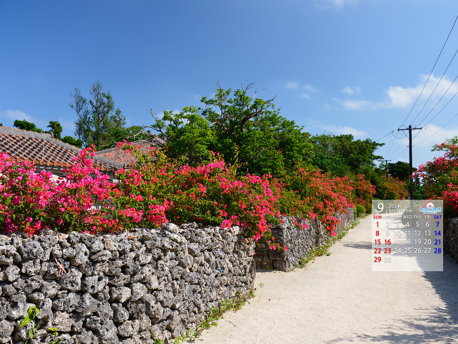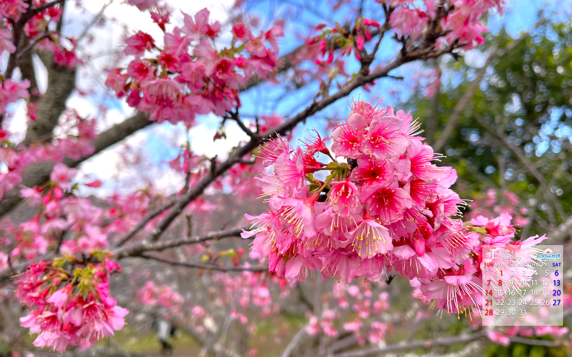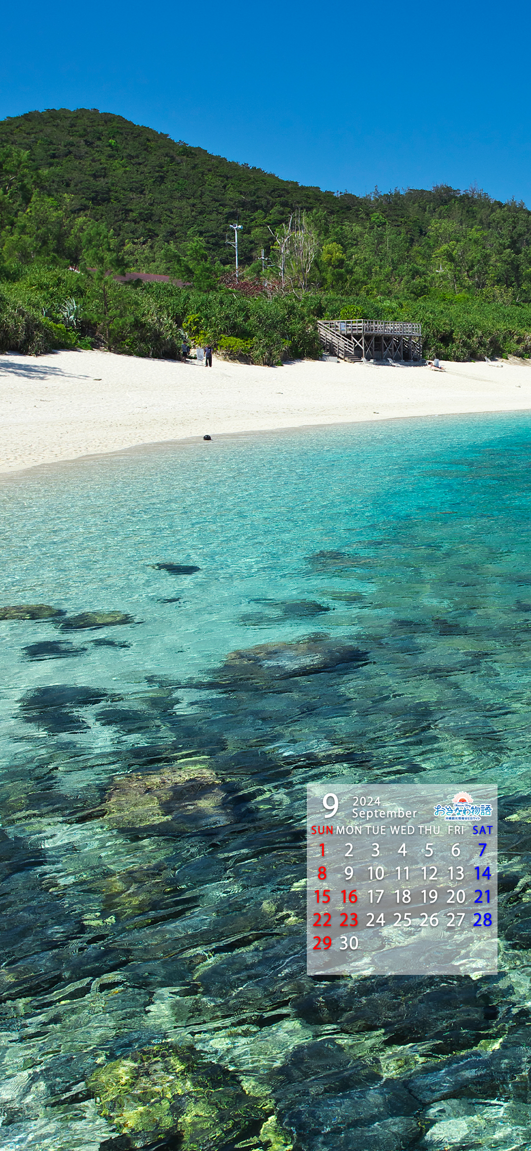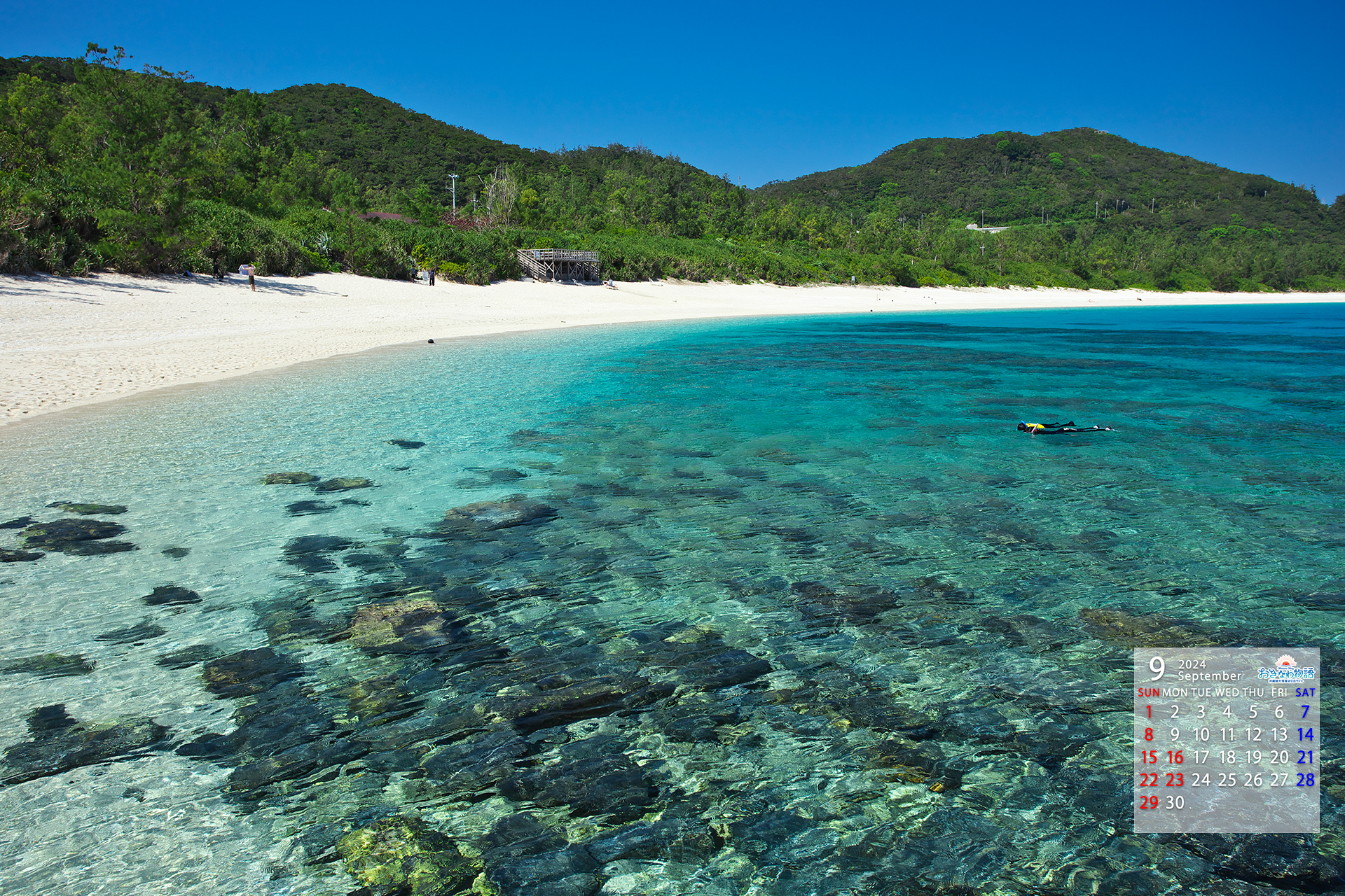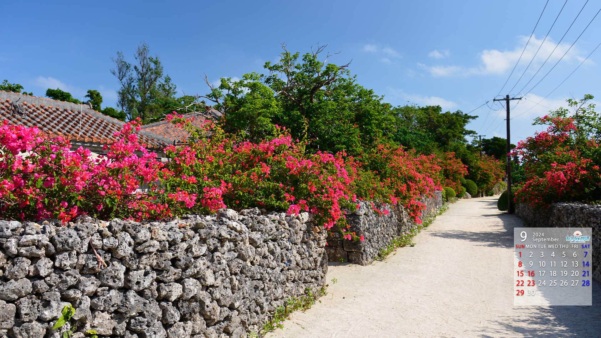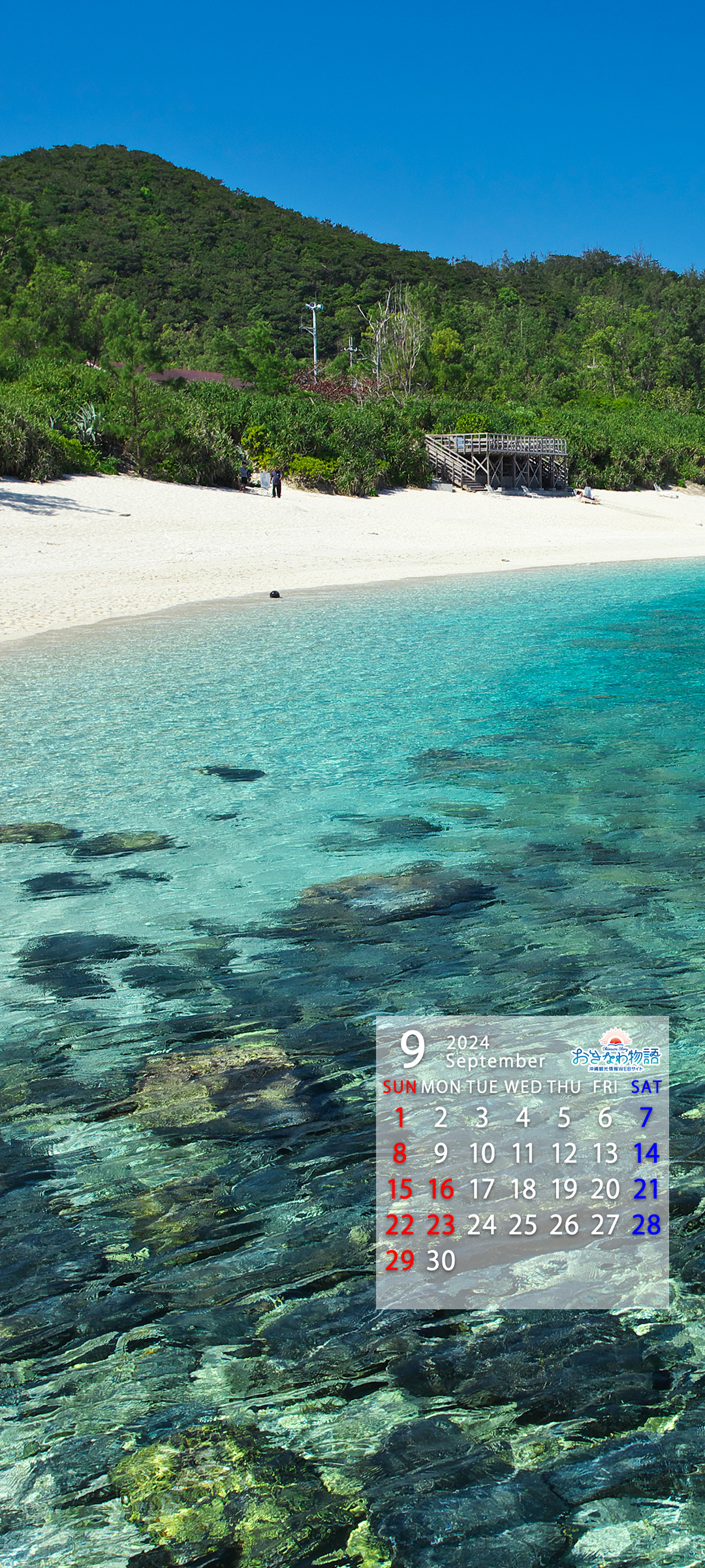 沖縄の風景にカレンダーをプラスしたデスクトップ壁紙を配布しています。