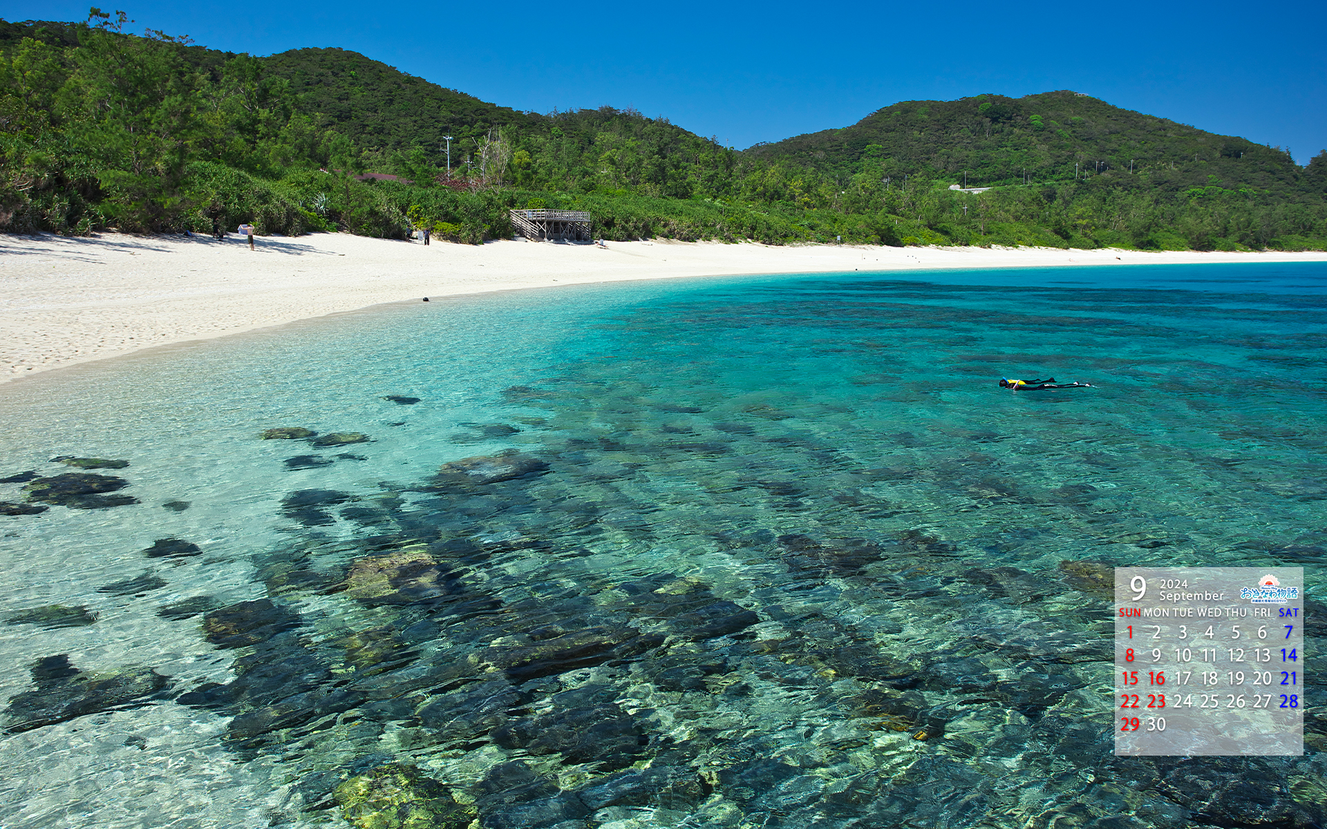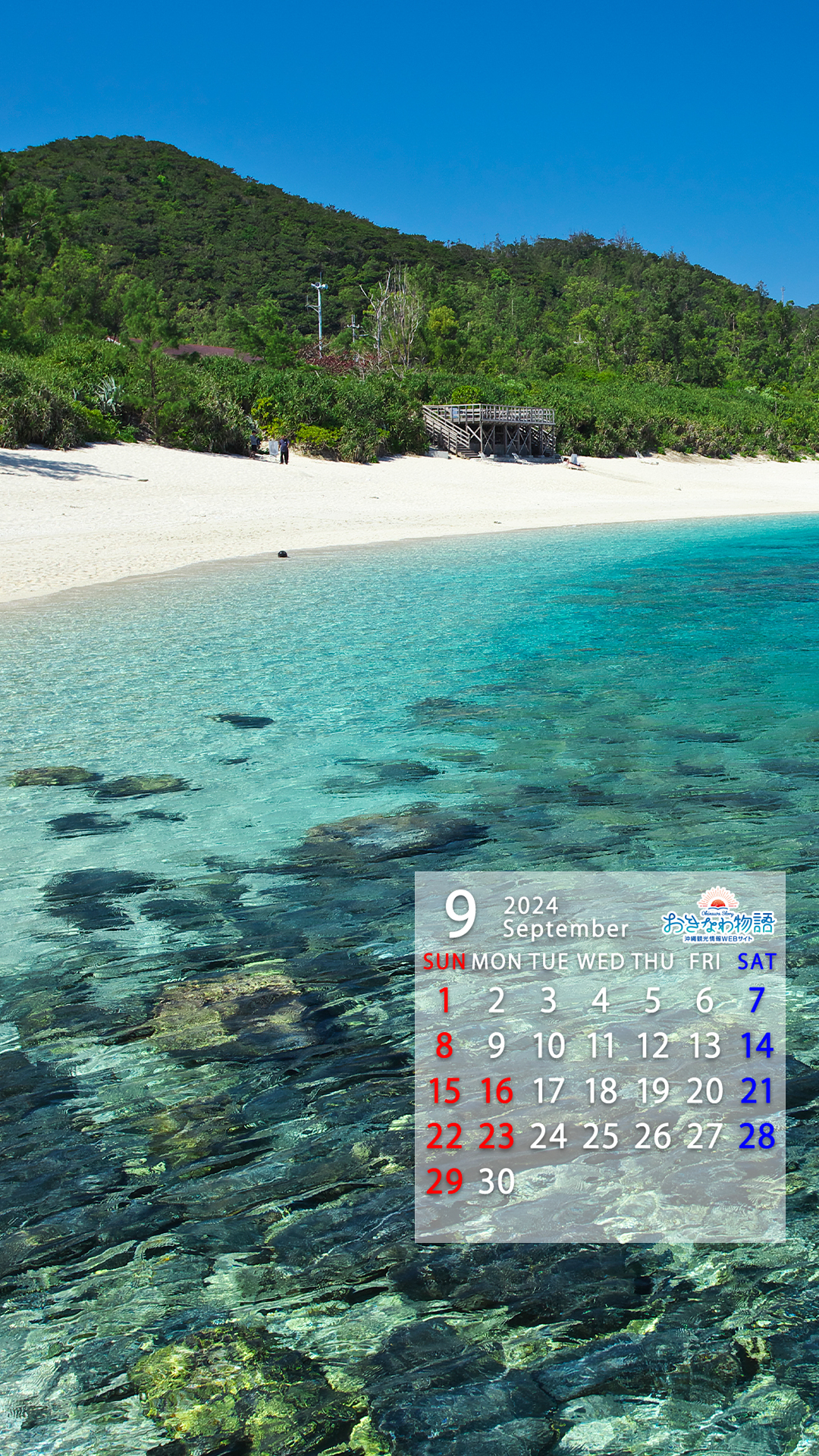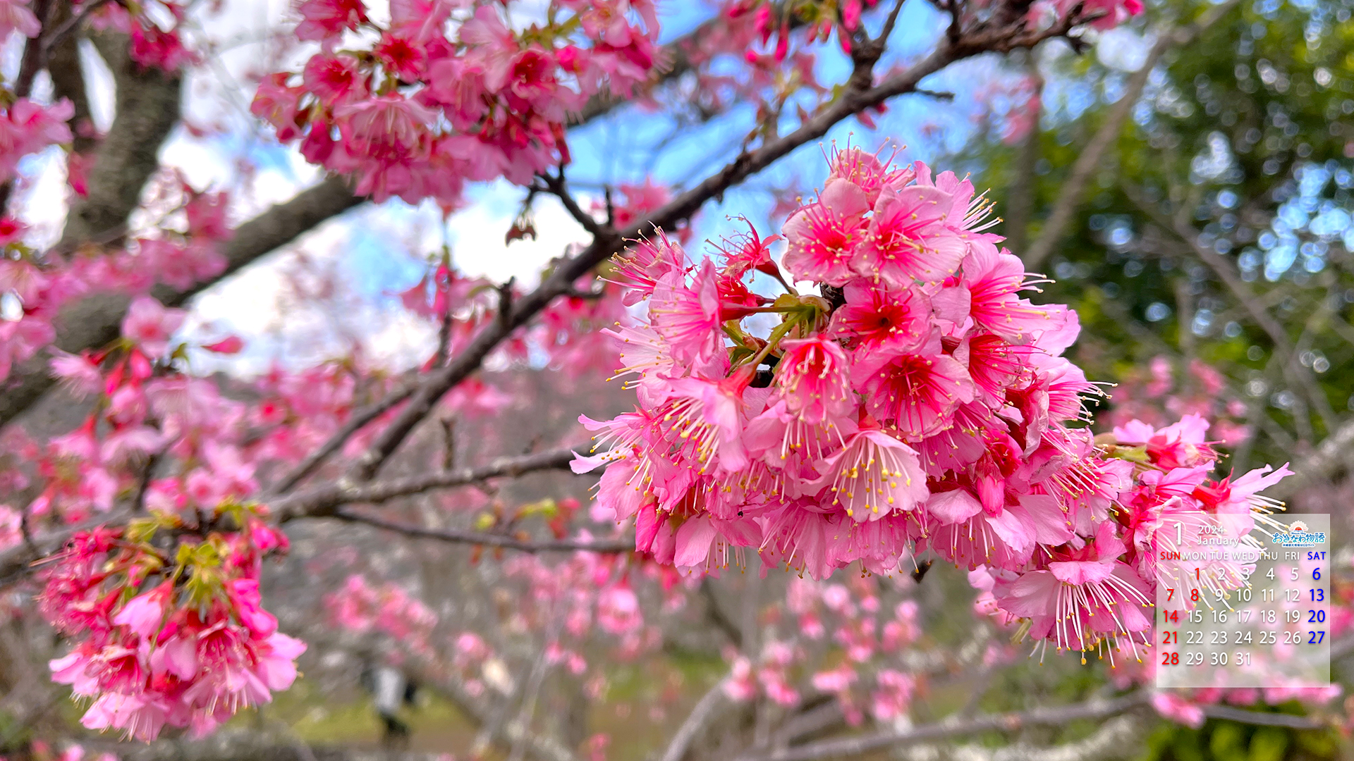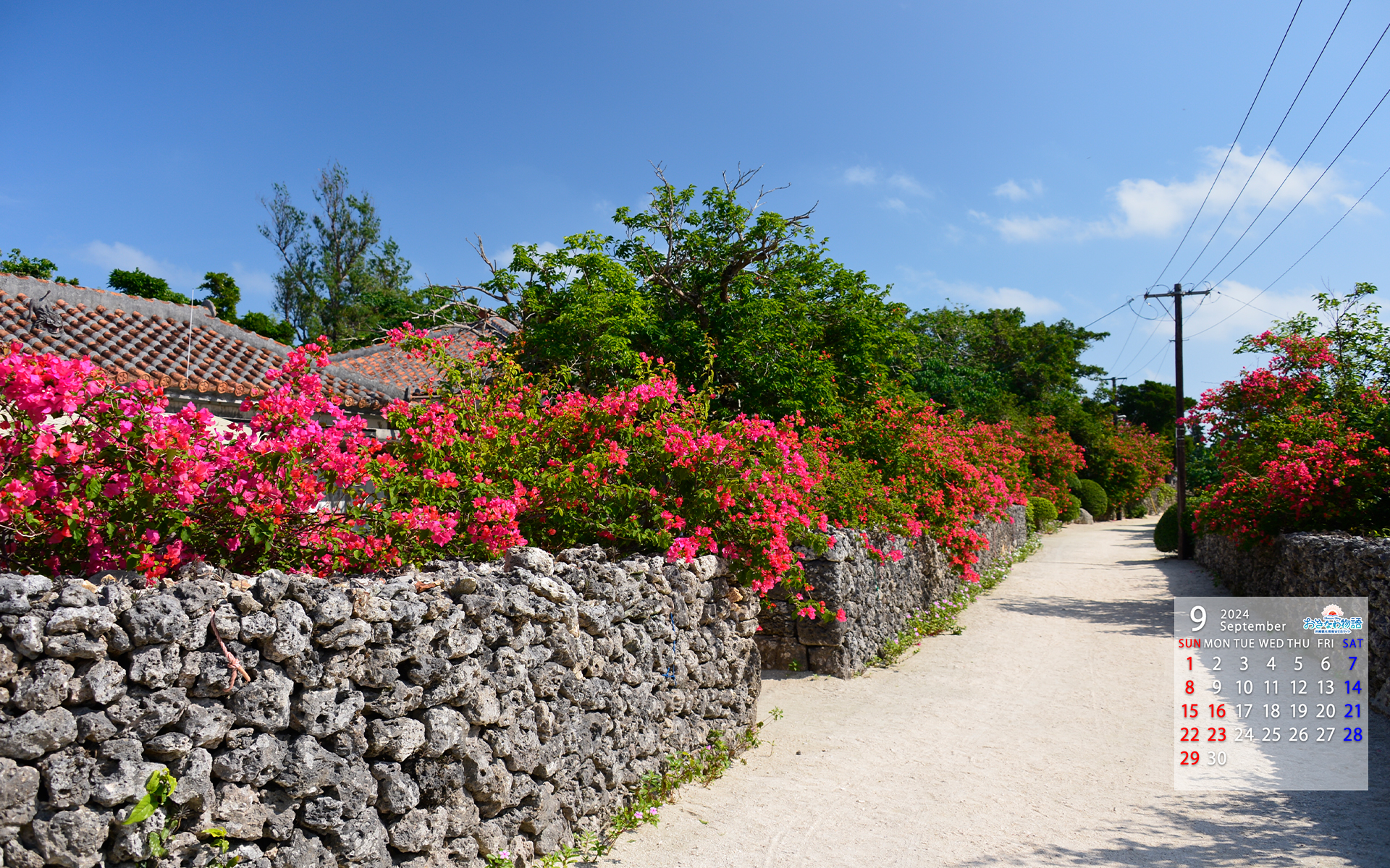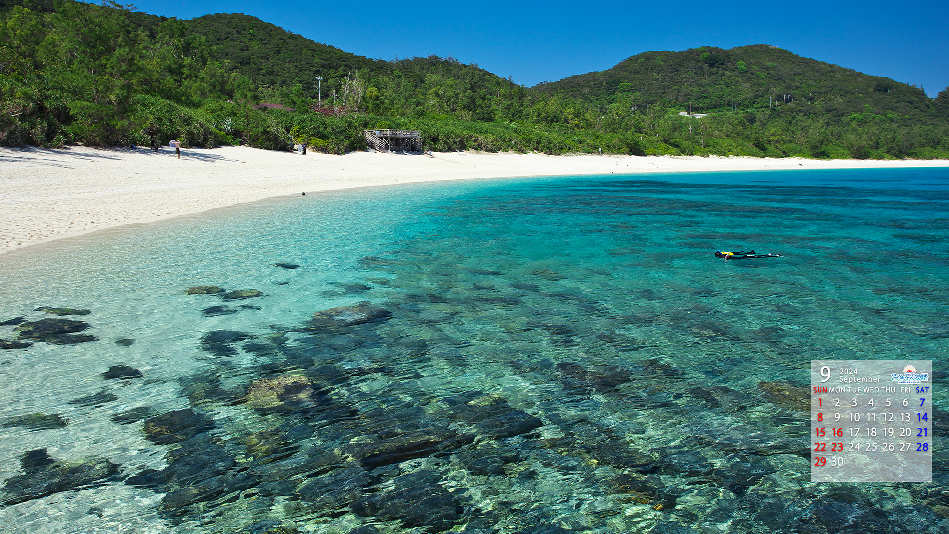 沖縄の風景にカレンダーをプラスしたデスクトップ壁紙を配布しています。
