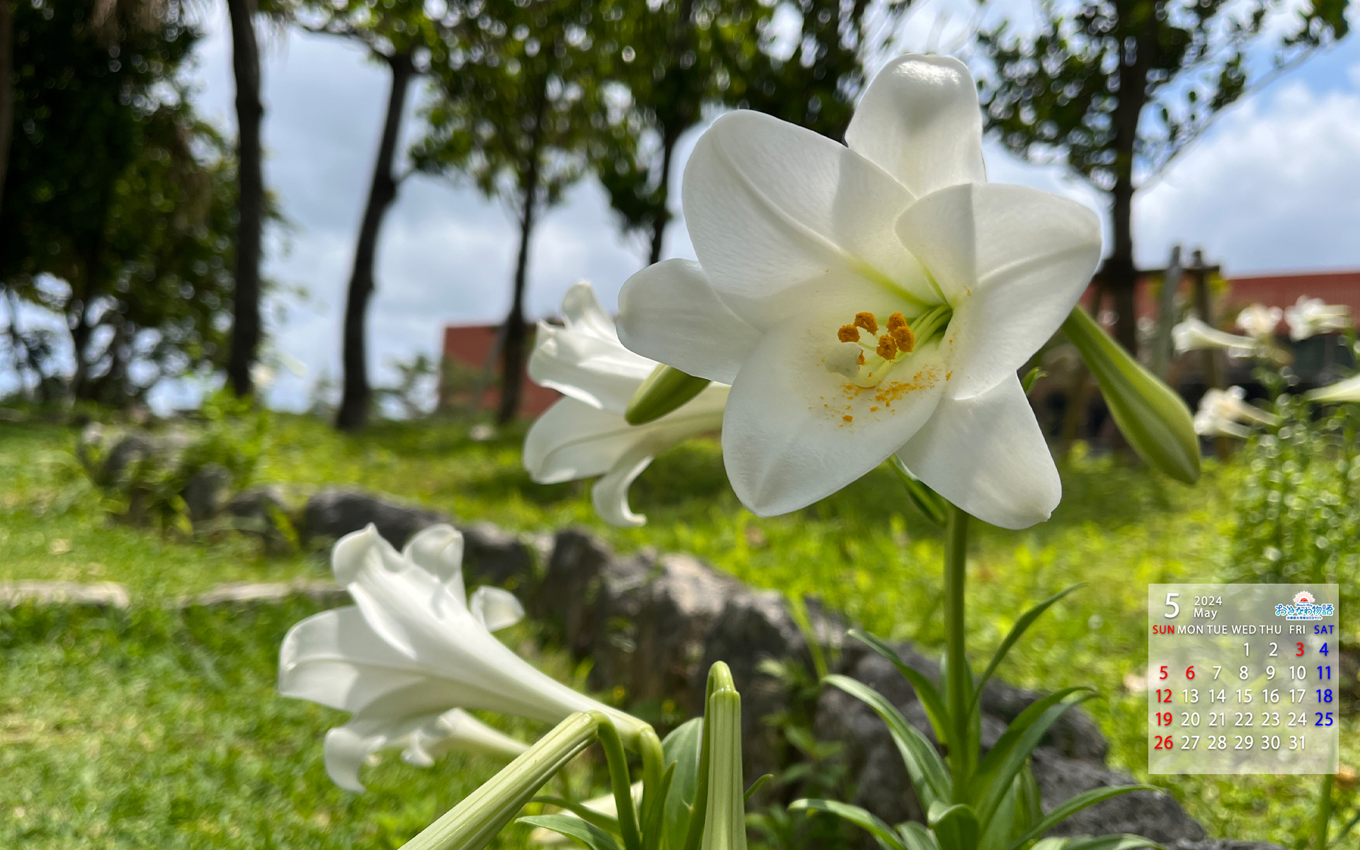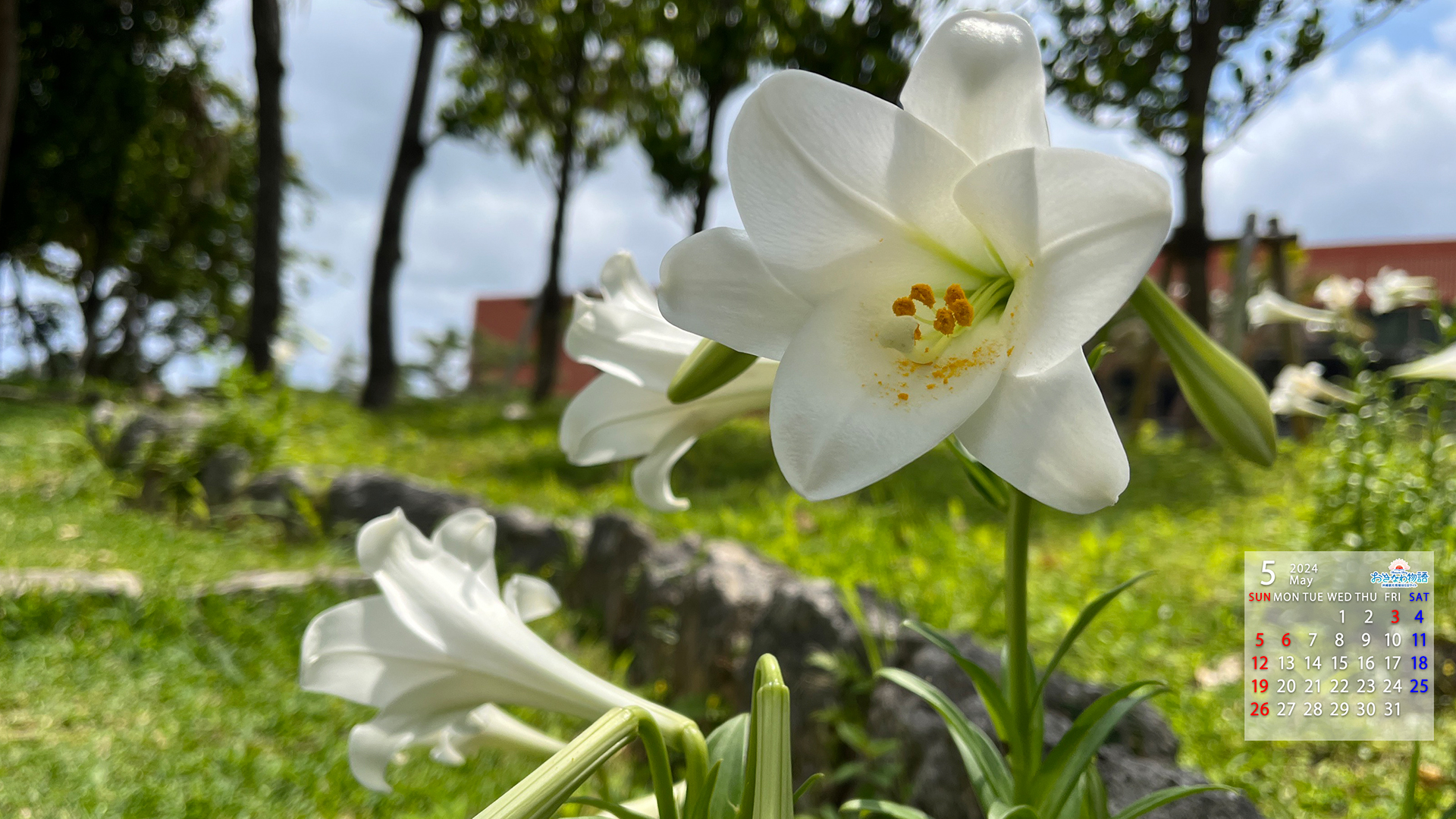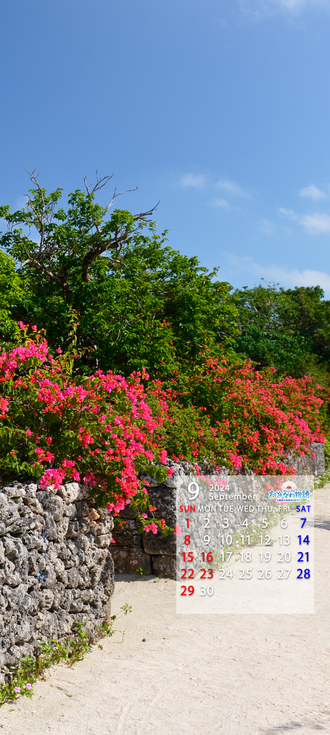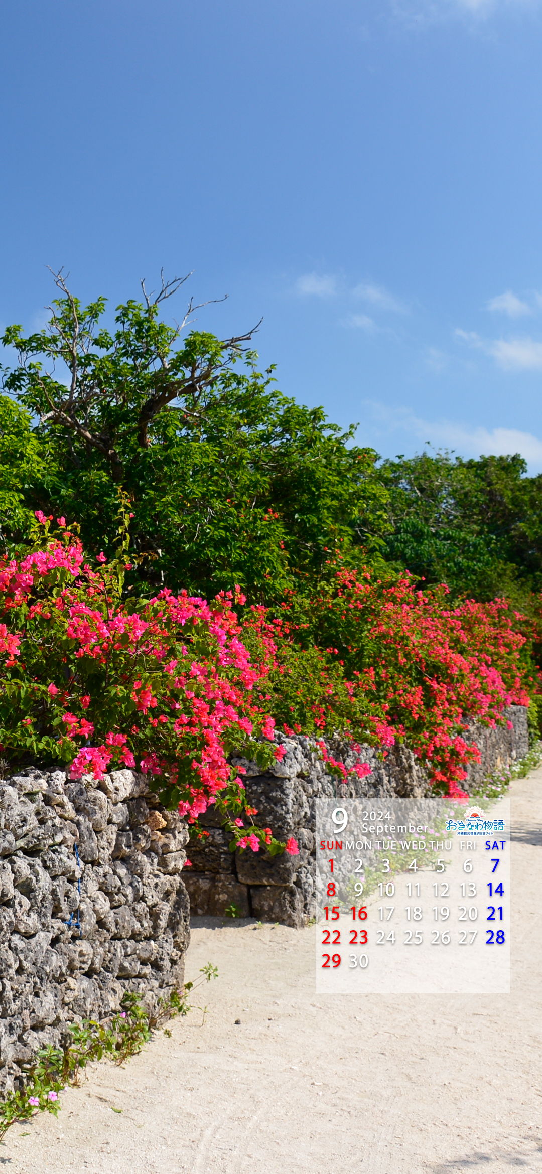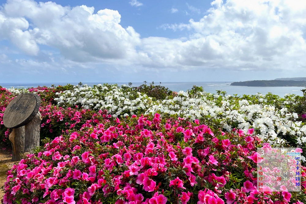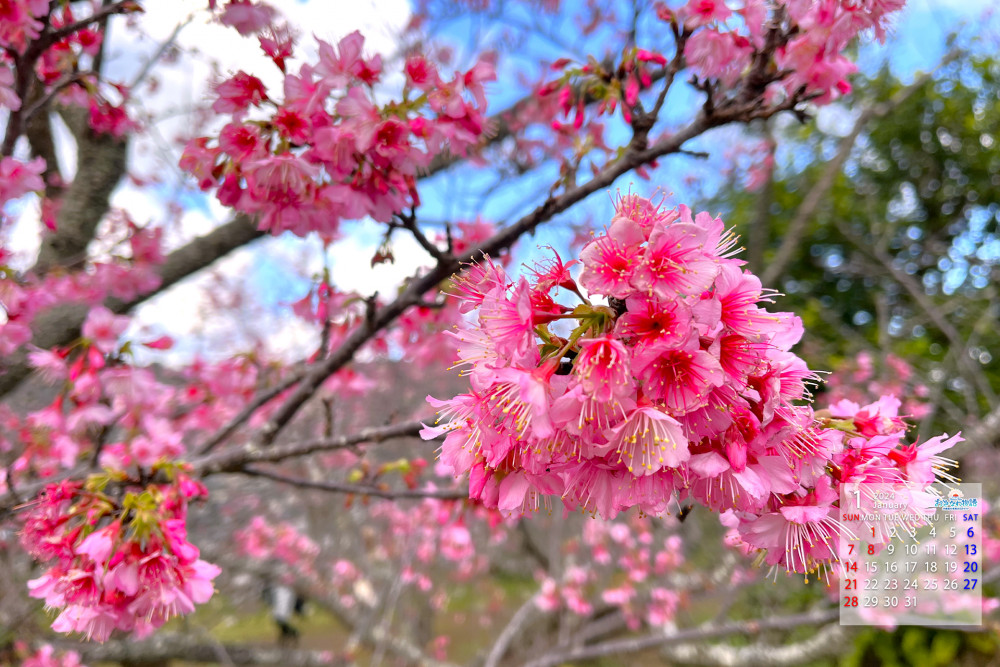 沖縄の風景にカレンダーをプラスしたデスクトップ壁紙を配布しています。
