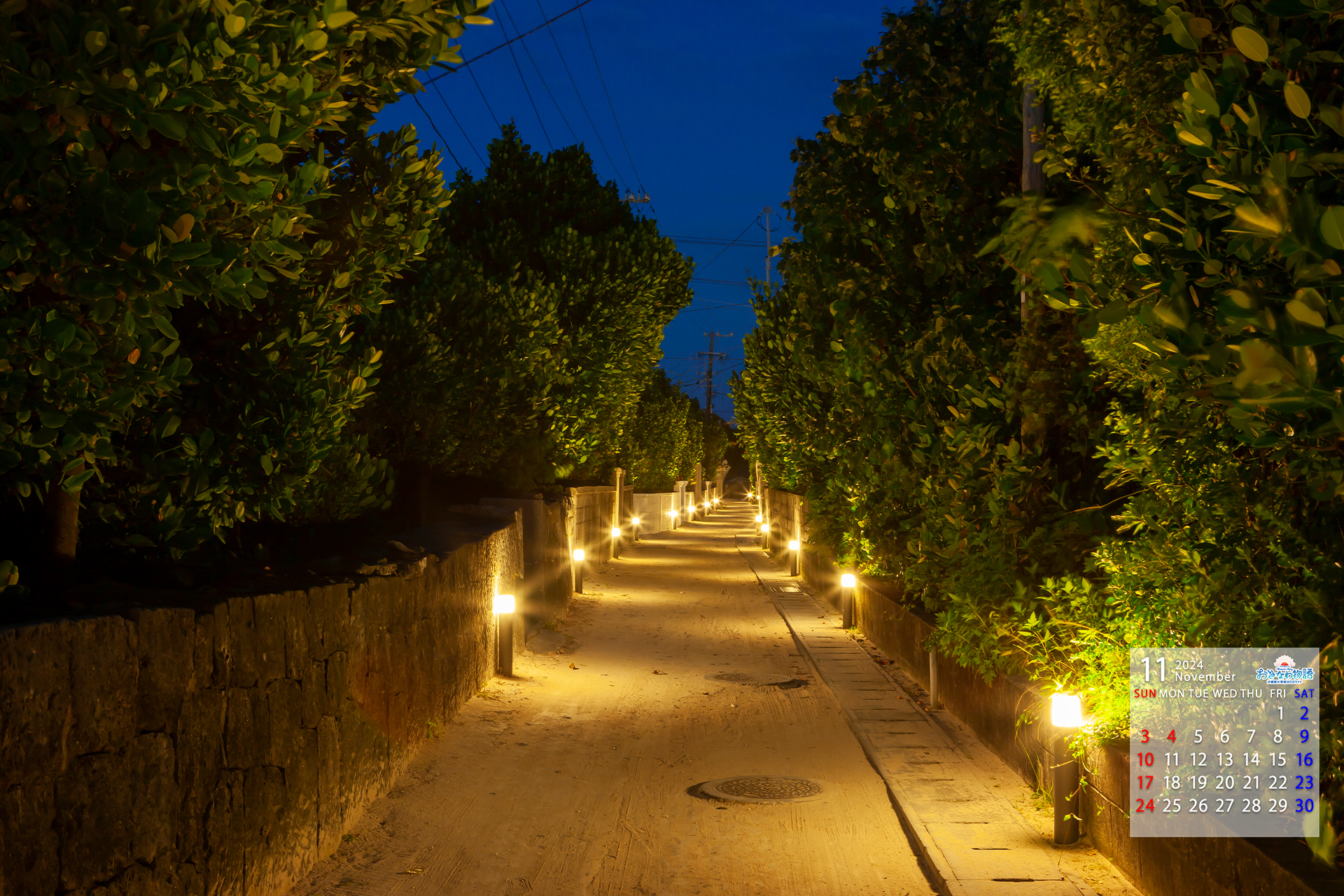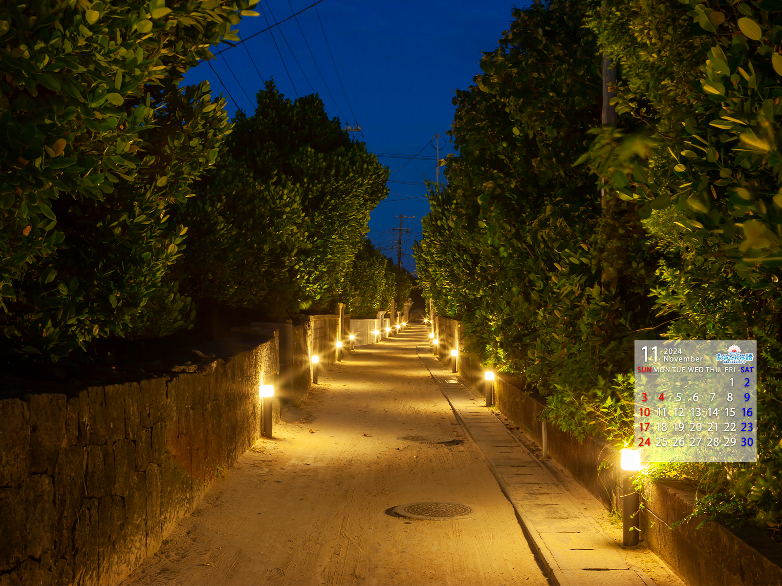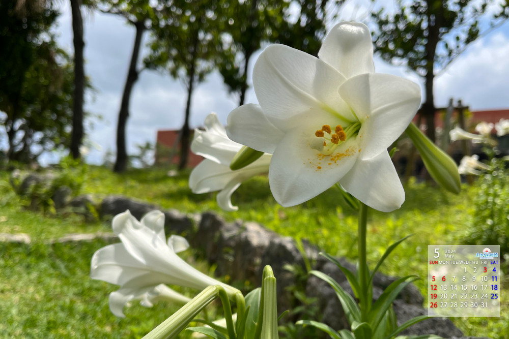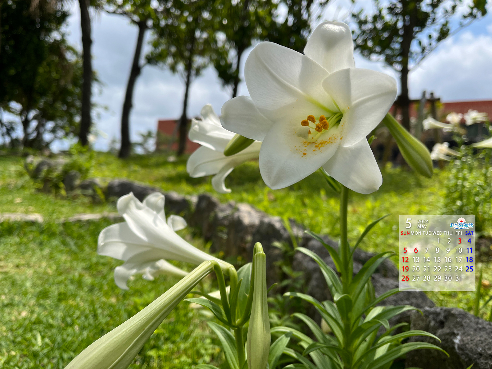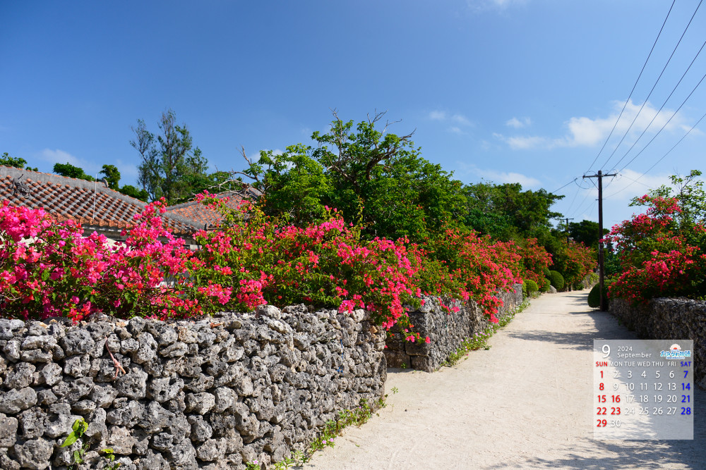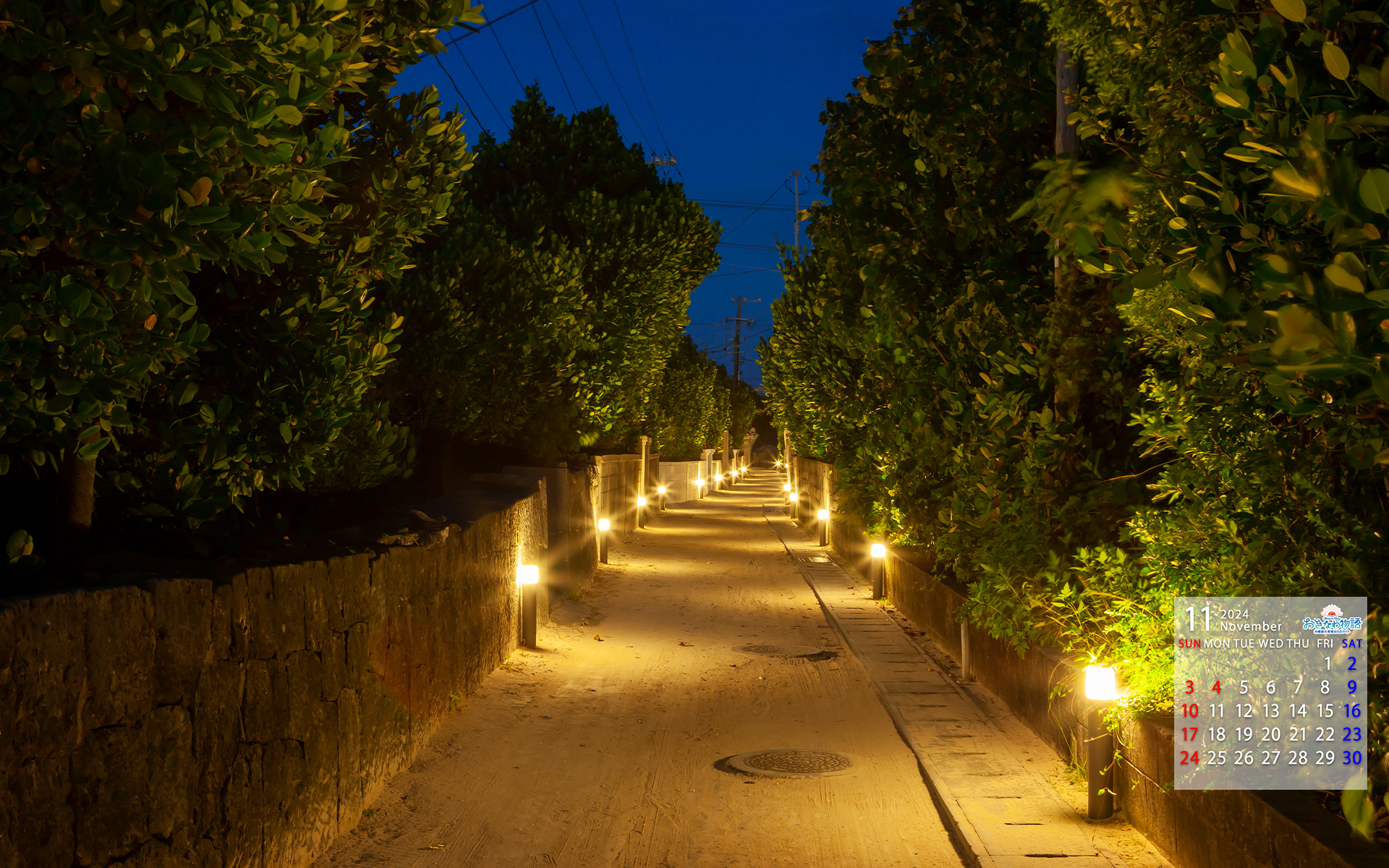 沖縄の風景にカレンダーをプラスしたデスクトップ壁紙を配布しています。