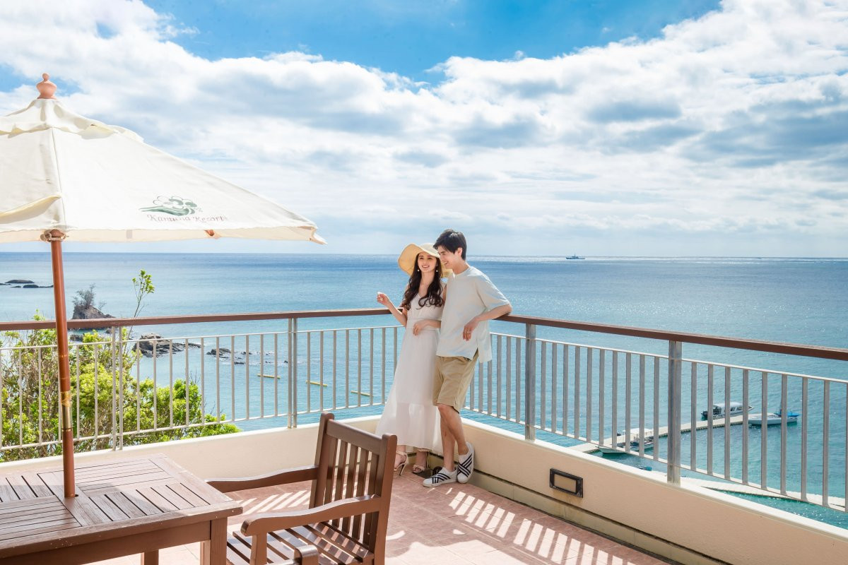 チャペルに隣接した「プルミエ・ガーデンテラス」では、素晴らしいパノラマビューを独占しながらの写真撮影やトロピカルなカクテルパーティーを。